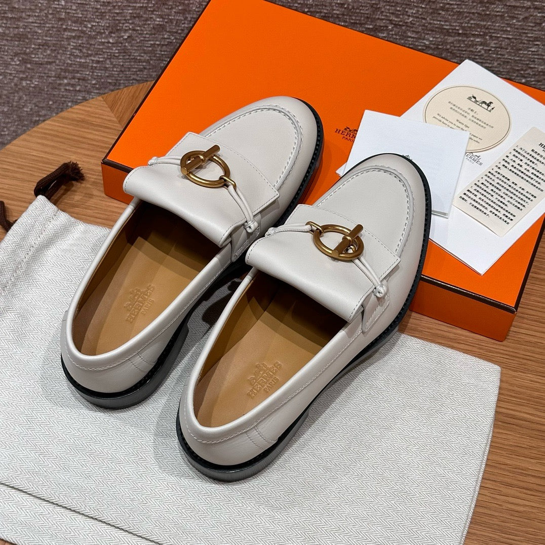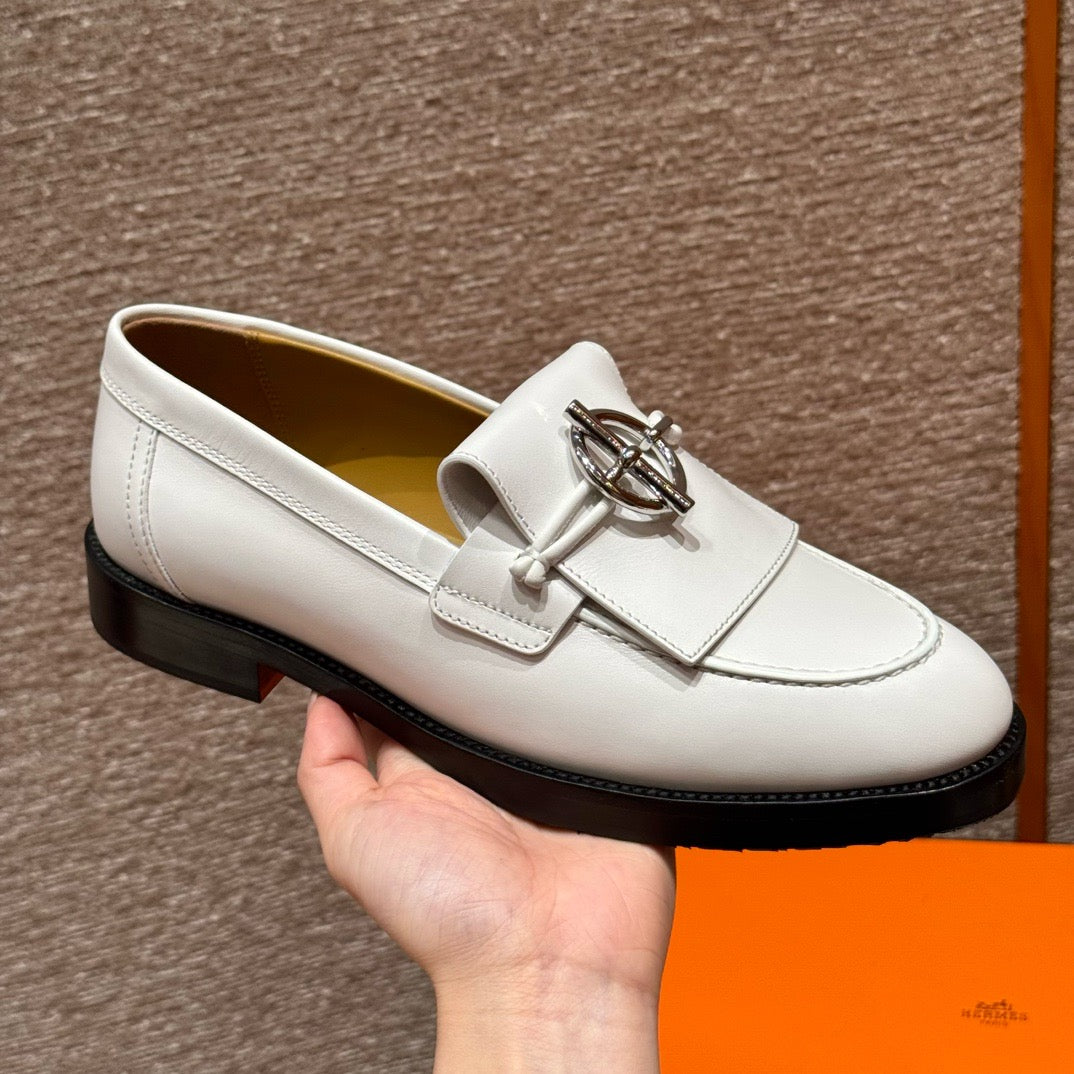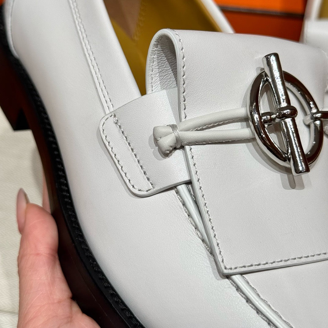 볼륨감 있는 러버 아웃솔과 절제된 송아지 가죽이 조화를 이루며, 에르메스 특유의 감성으로 재해석된 클래식 로퍼입니다. 심플한 구조에 브랜드 특유의 메탈 디테일이나 음각 로고가 더해져 감각적인 디테일을 살렸습니다.
