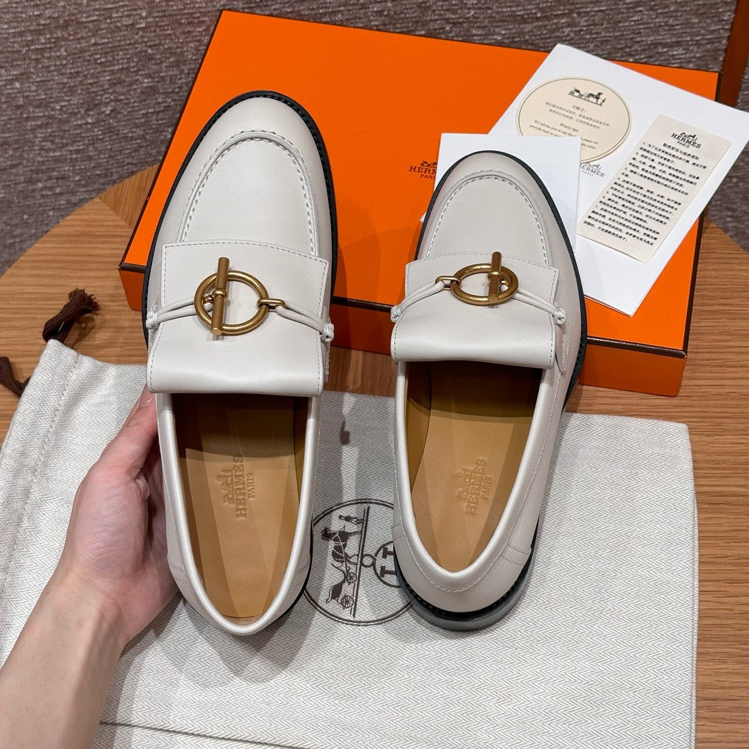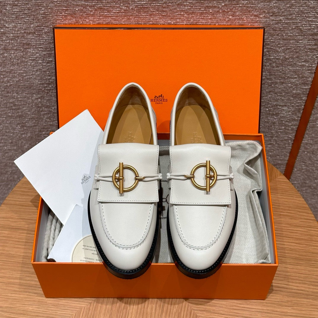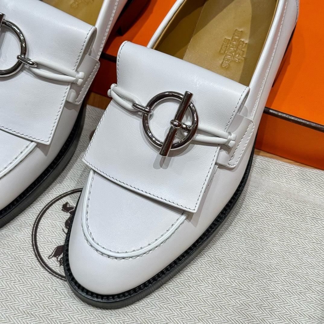 볼륨감 있는 러버 아웃솔과 절제된 송아지 가죽이 조화를 이루며, 에르메스 특유의 감성으로 재해석된 클래식 로퍼입니다. 심플한 구조에 브랜드 특유의 메탈 디테일이나 음각 로고가 더해져 감각적인 디테일을 살렸습니다.