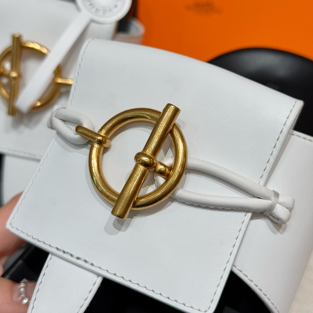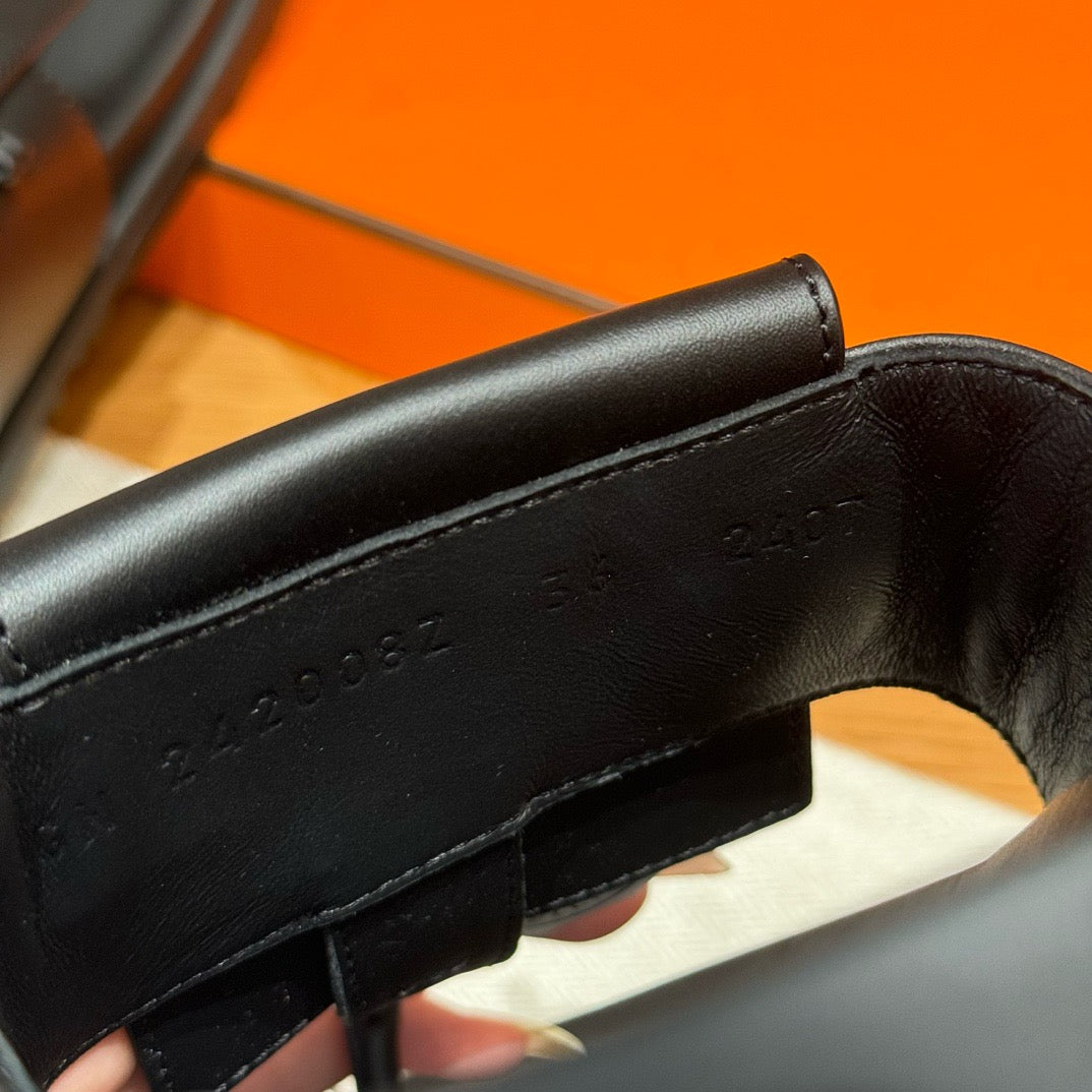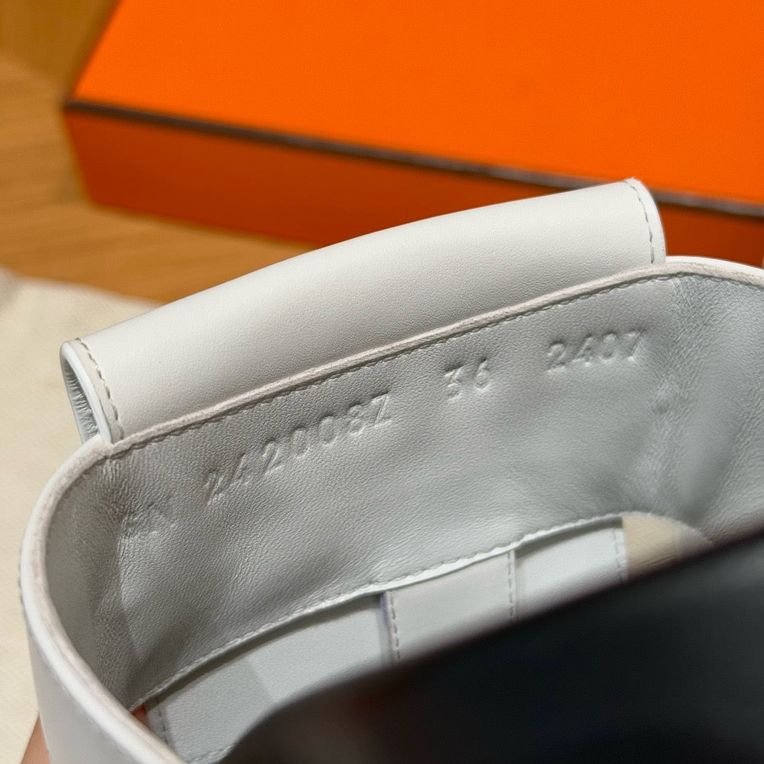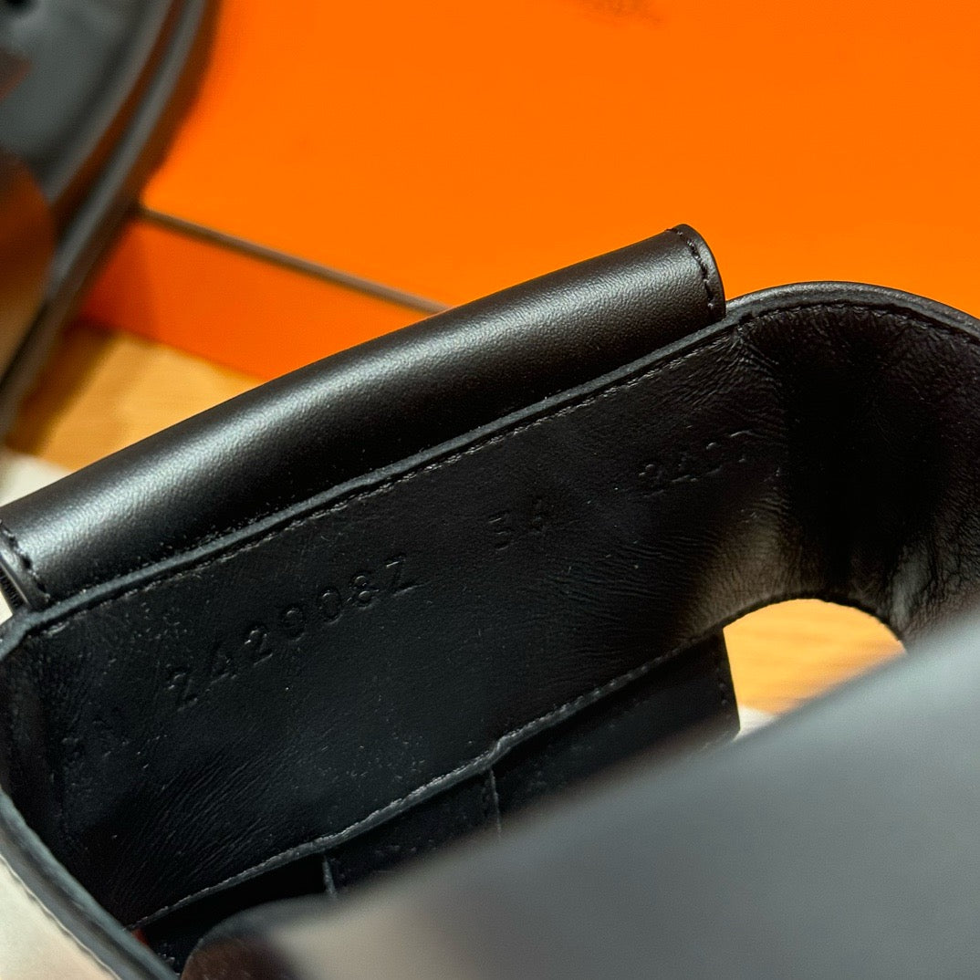 발등을 감싸는 슬림한 가죽 스트랩과 발목 스트랩이 안정적인 착화를 제공하며, 에르메스 특유의 절제된 디자인이 세련된 분위기를 연출합니다. 오픈 토 디자인으로 시원하고 여름에 적합합니다.