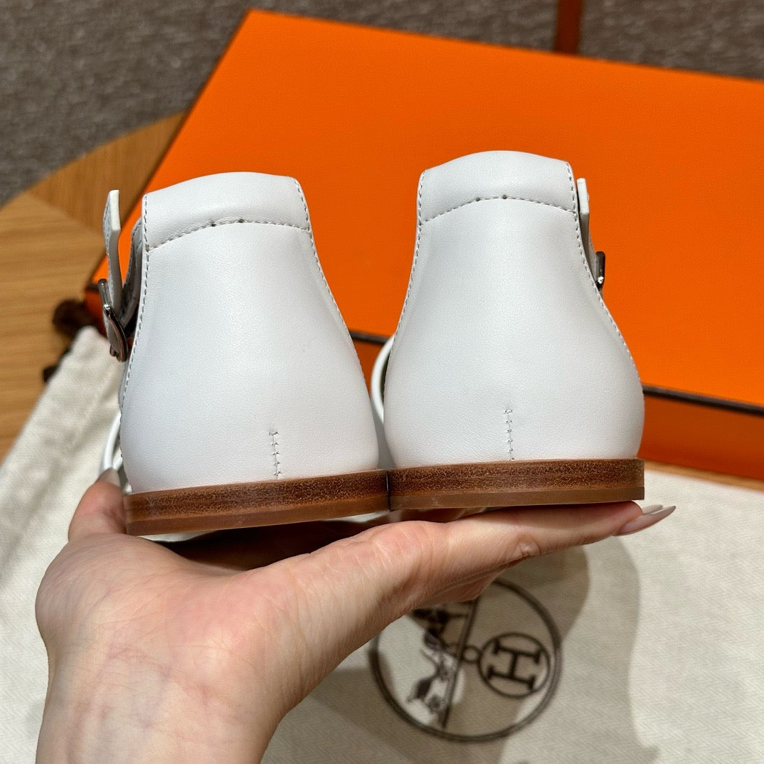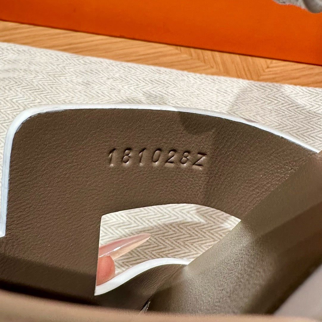 발등을 감싸는 슬림한 가죽 스트랩이 발을 안정적으로 잡아주며, 부드러운 스위프트 가죽이 편안한 착화감을 제공합니다. 절제된 디자인 속에 에르메스의 고급스러운 감각이 담겨 있습니다.