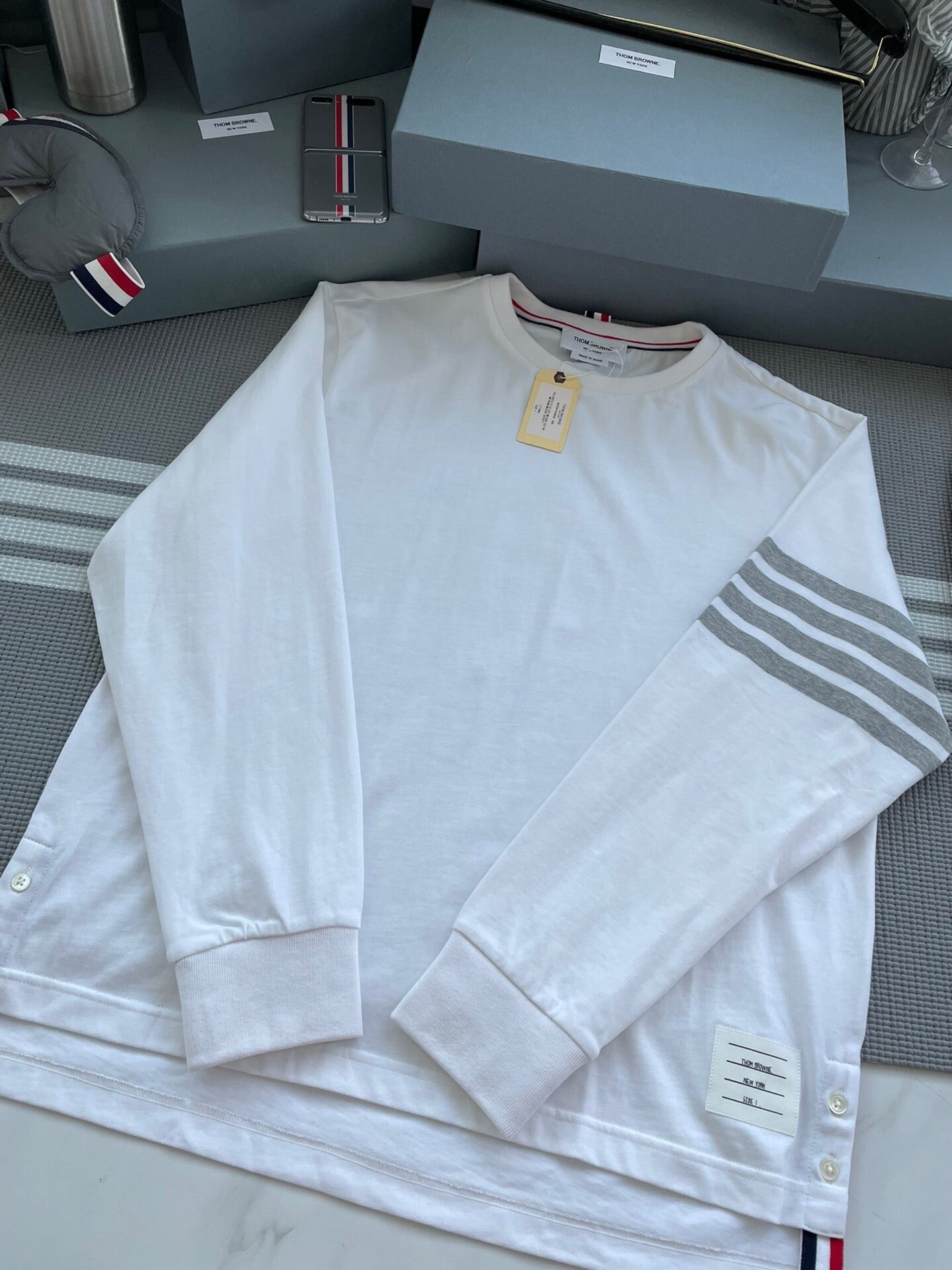 톰브라운 코튼 사선 롱슬리브 티셔츠