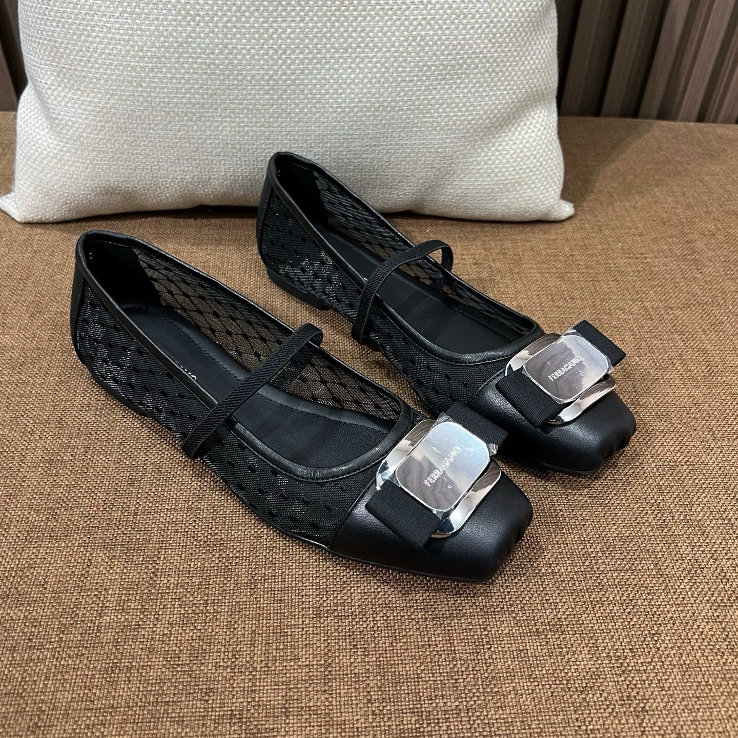페레가모 바라 플레이트 메쉬 발레리나 플랫(Ferragamo Vara Plate Mesh Ballerina Flats) - 산뜻하고 우아한 썸머 플랫