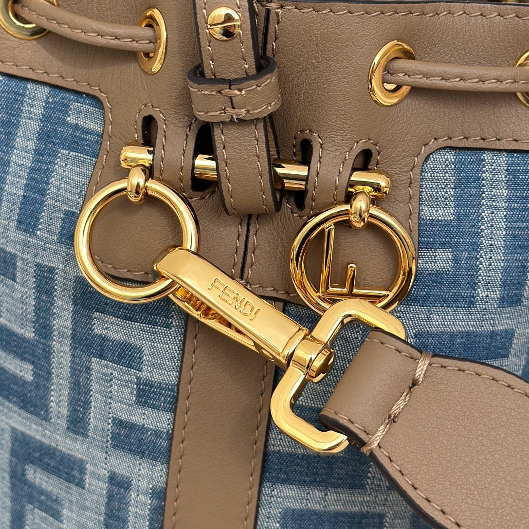 펜디 몬트레조 버킷백은 부드러운 곡선과 세련된 드로스트링 잠금 장치가 특징입니다. 특히 펜디의 대표적인 FF 로고가 프린트되거나 엠보싱된 가죽 소재로 제작되어 브랜드의 정체성을 한눈에 드러냅니다. 골드 또는 실버 메탈 디테일이 고급스러움을 더하며, 탈부착이 가능한 숄더 스트랩과 탑 핸들을 통해 다양한 스타일링이 가능합니다.