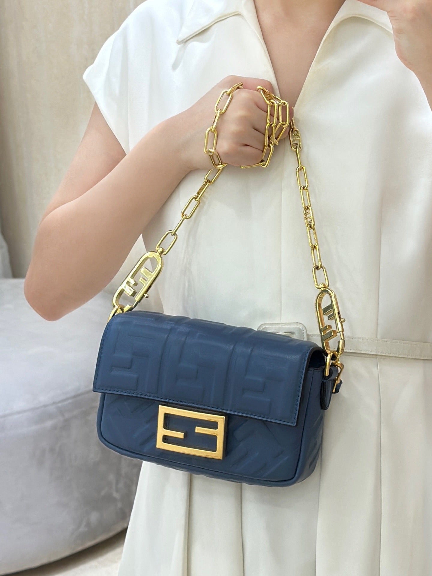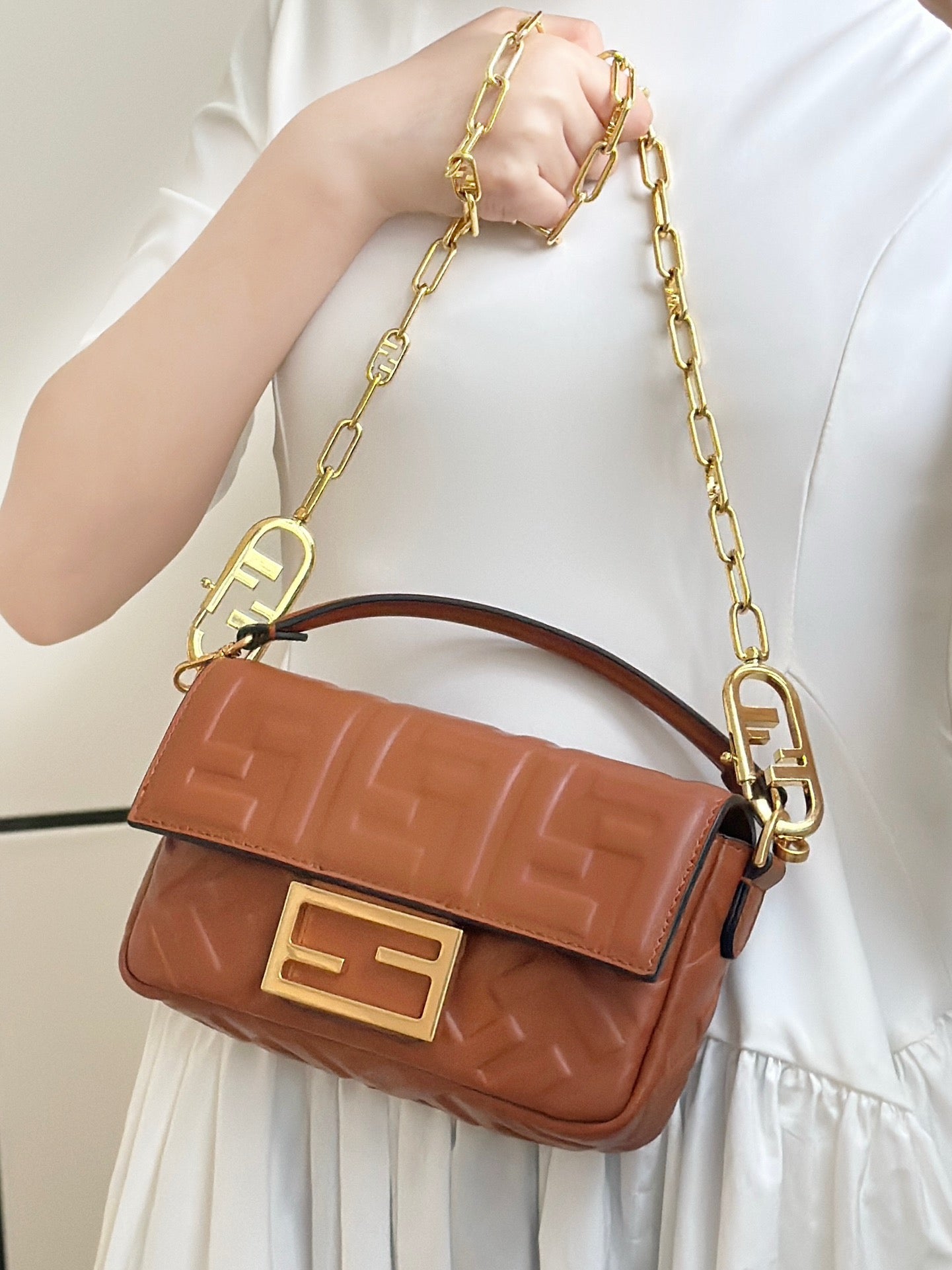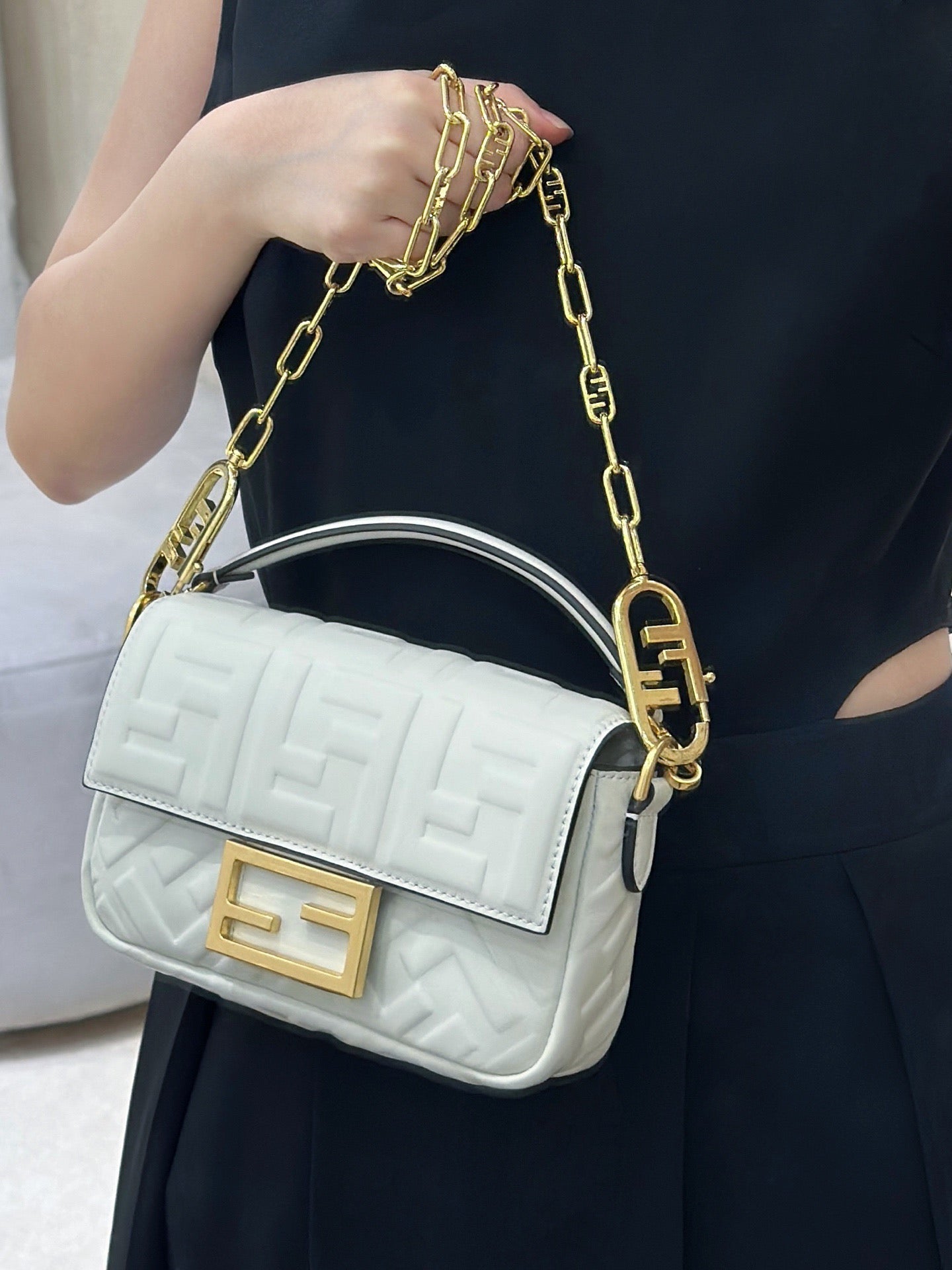 구성: FF 로고 메탈 버클, 퀼팅 디테일, 체인 및 가죽 스트랩 포함