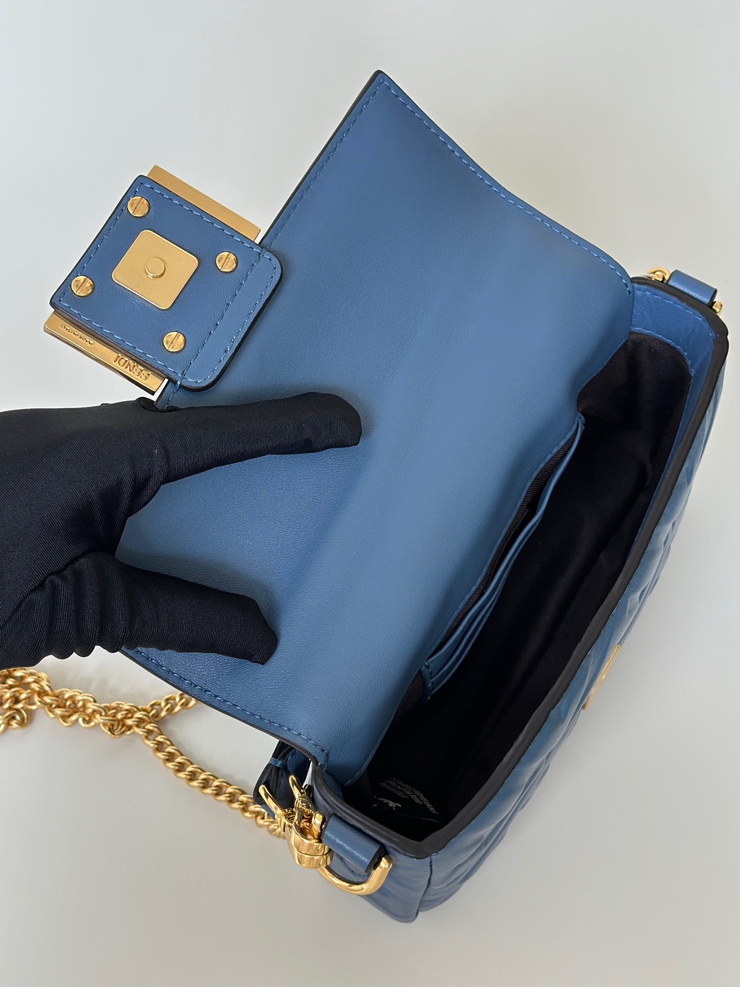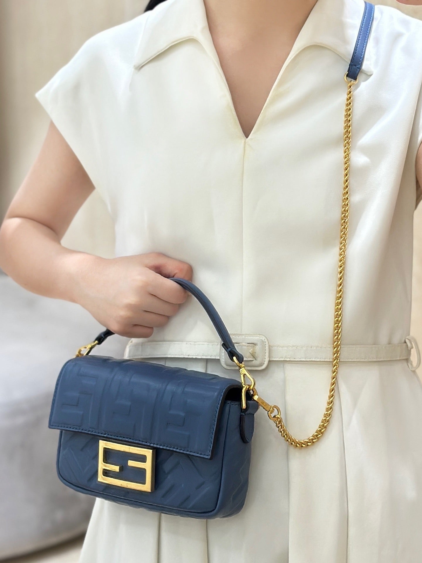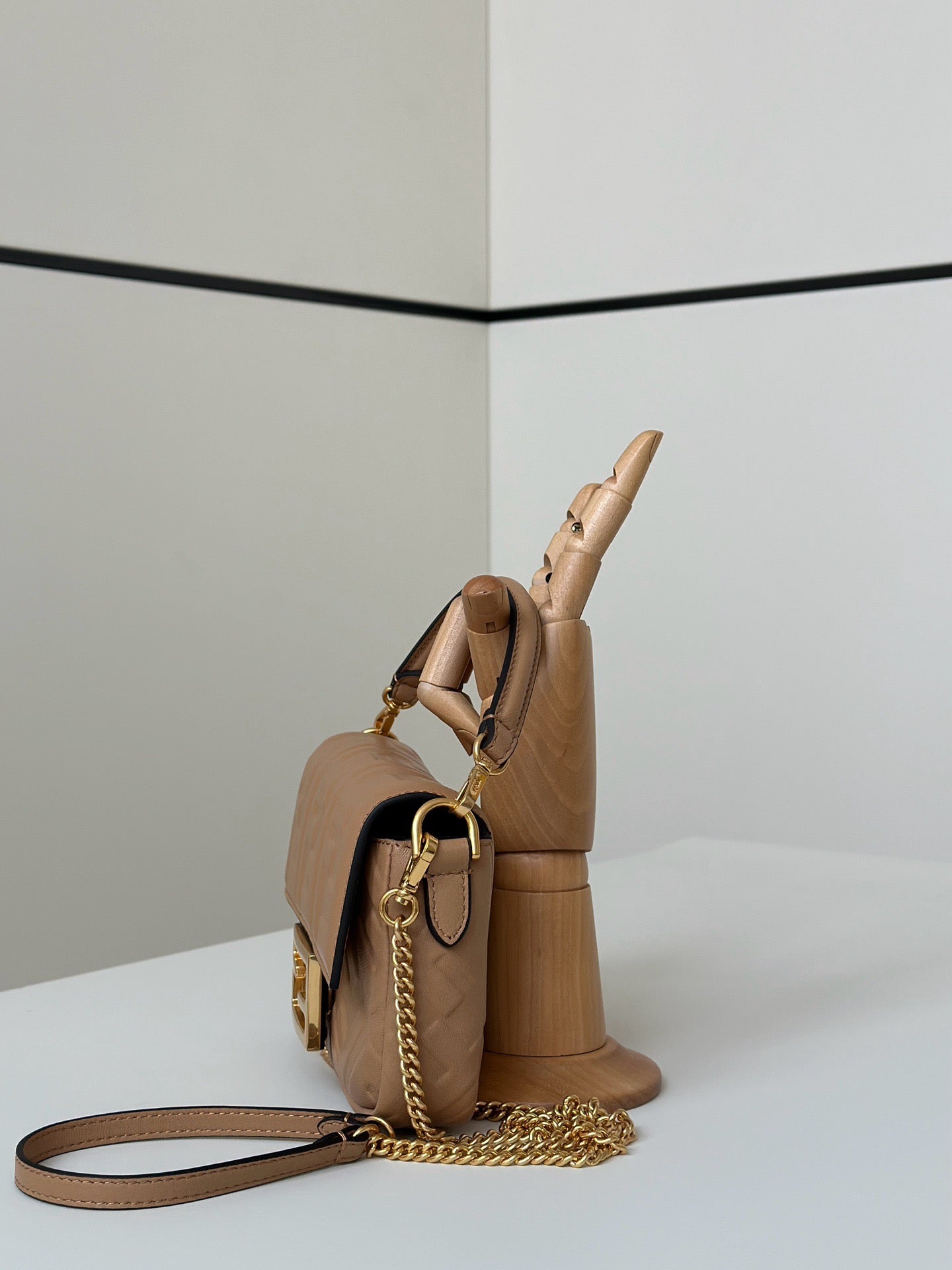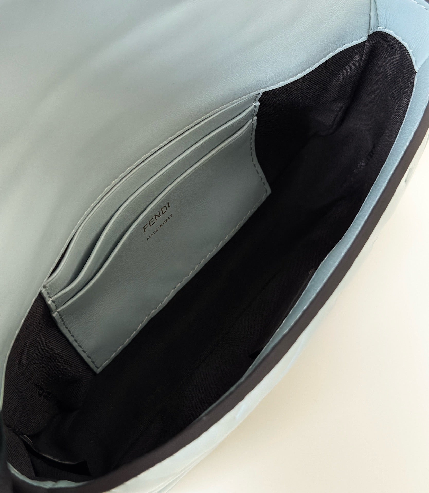 나파 미니 버전은 아담한 사이즈로 제작되어 가볍게 들고 다닐 수 있으며, 가죽 특유의 부드러움과 유연함이 특징입니다. 펜디 FF 로고 메탈 버클과 정교한 퀼팅 디테일이 고급스러운 이미지를 더하며, 간단한 외출이나 특별한 자리에도 부담 없이 활용할 수 있습니다.
