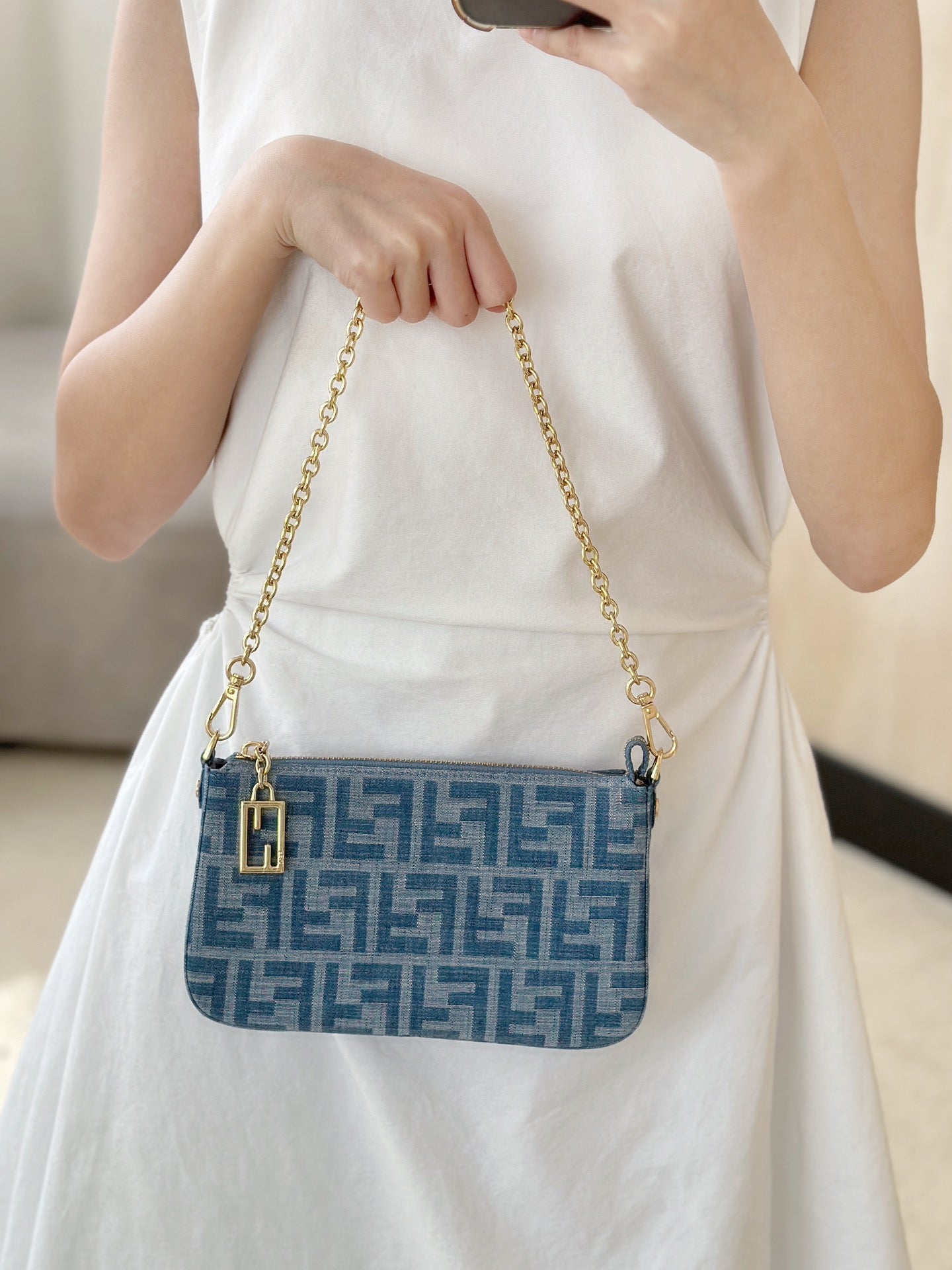 펜디 바게트 체인 클러치 FF 자카드(Fendi Baguette Chain Clutch FF Jacquard) - 다양한 착용 스타일