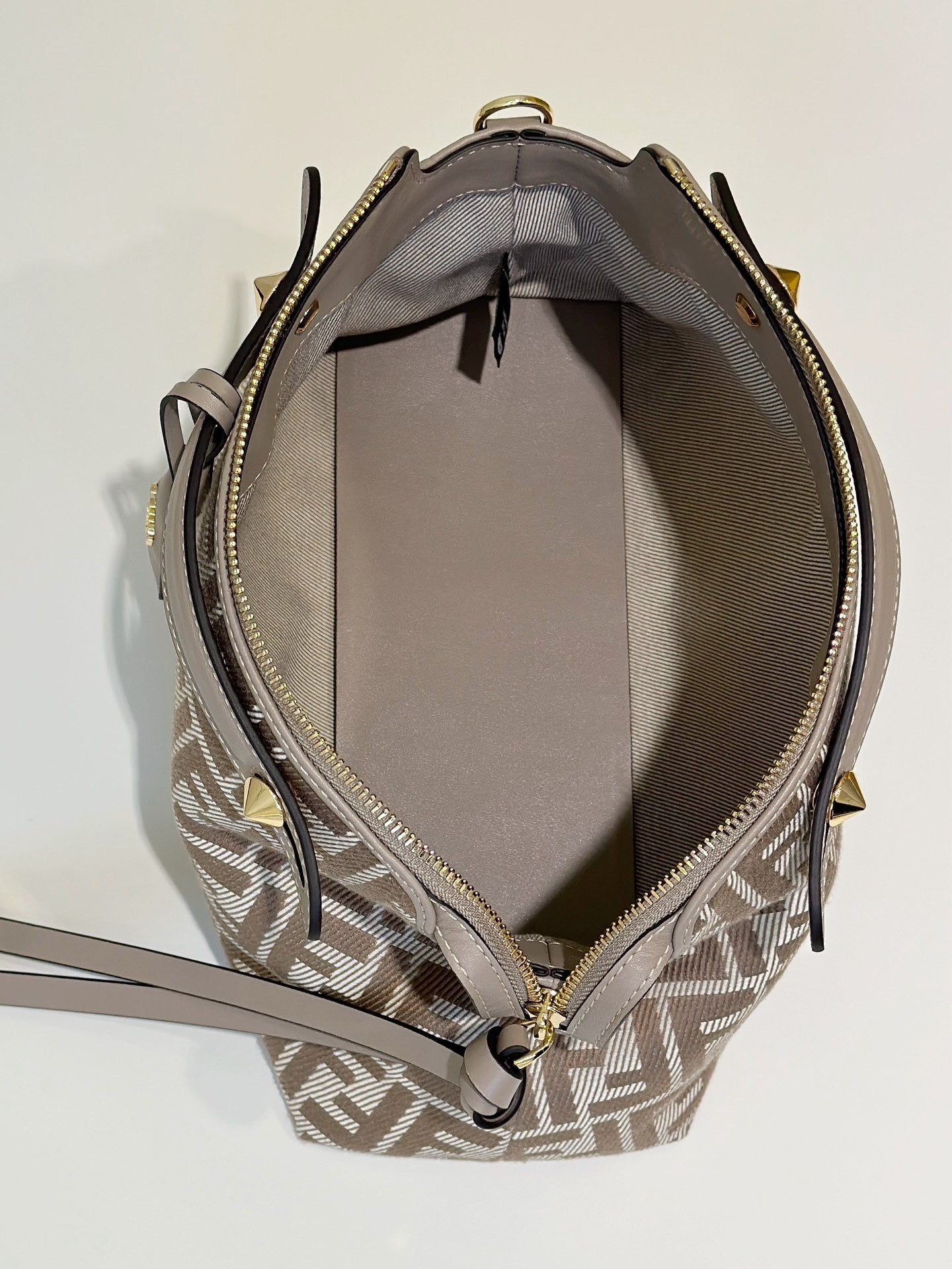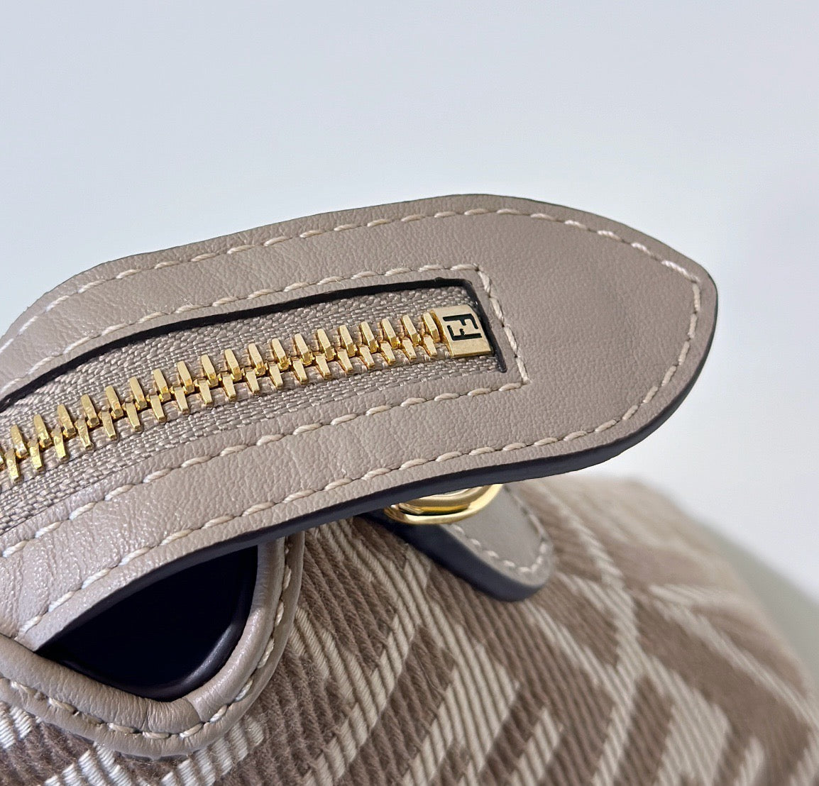 이 가방은 자카드 텍스타일 소재에 송아지 가죽 디테일을 더해 부드러움과 견고함을 동시에 제공합니다. 전면의 음각 로고 탭과 토널 컬러 배색이 고급스럽고 절제된 분위기를 연출하며, 펜디만의 아이코닉한 감성이 담겨 있습니다.