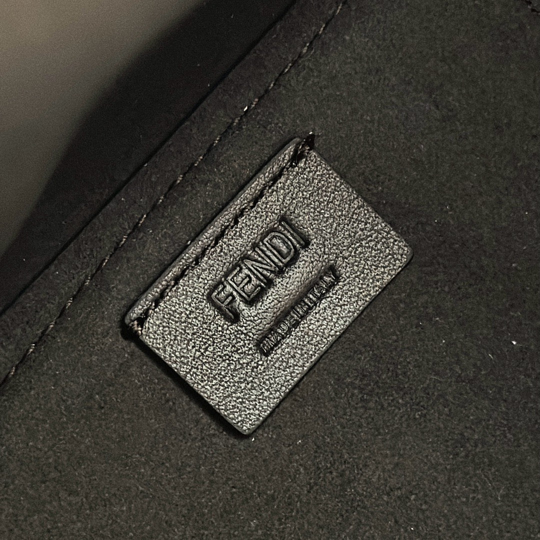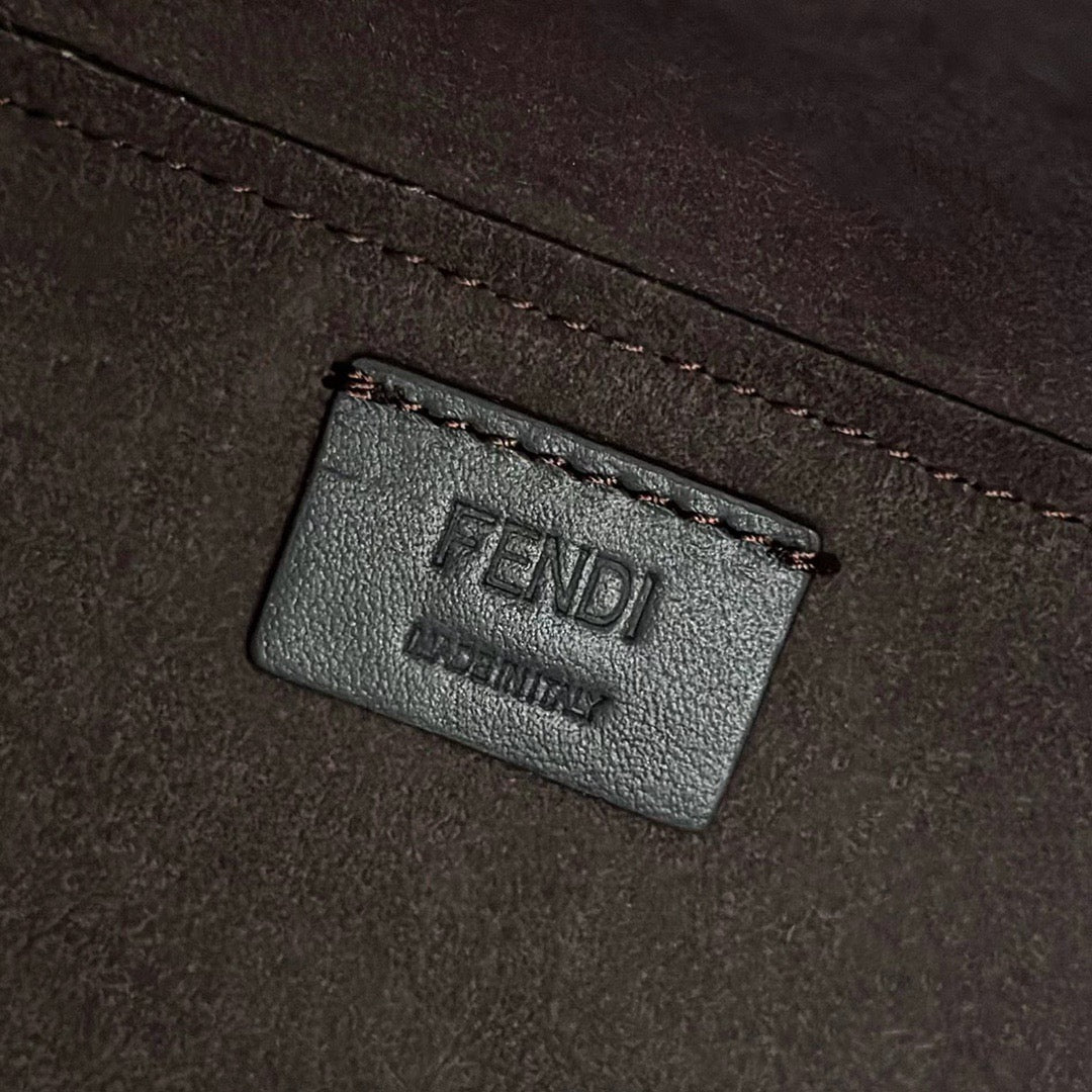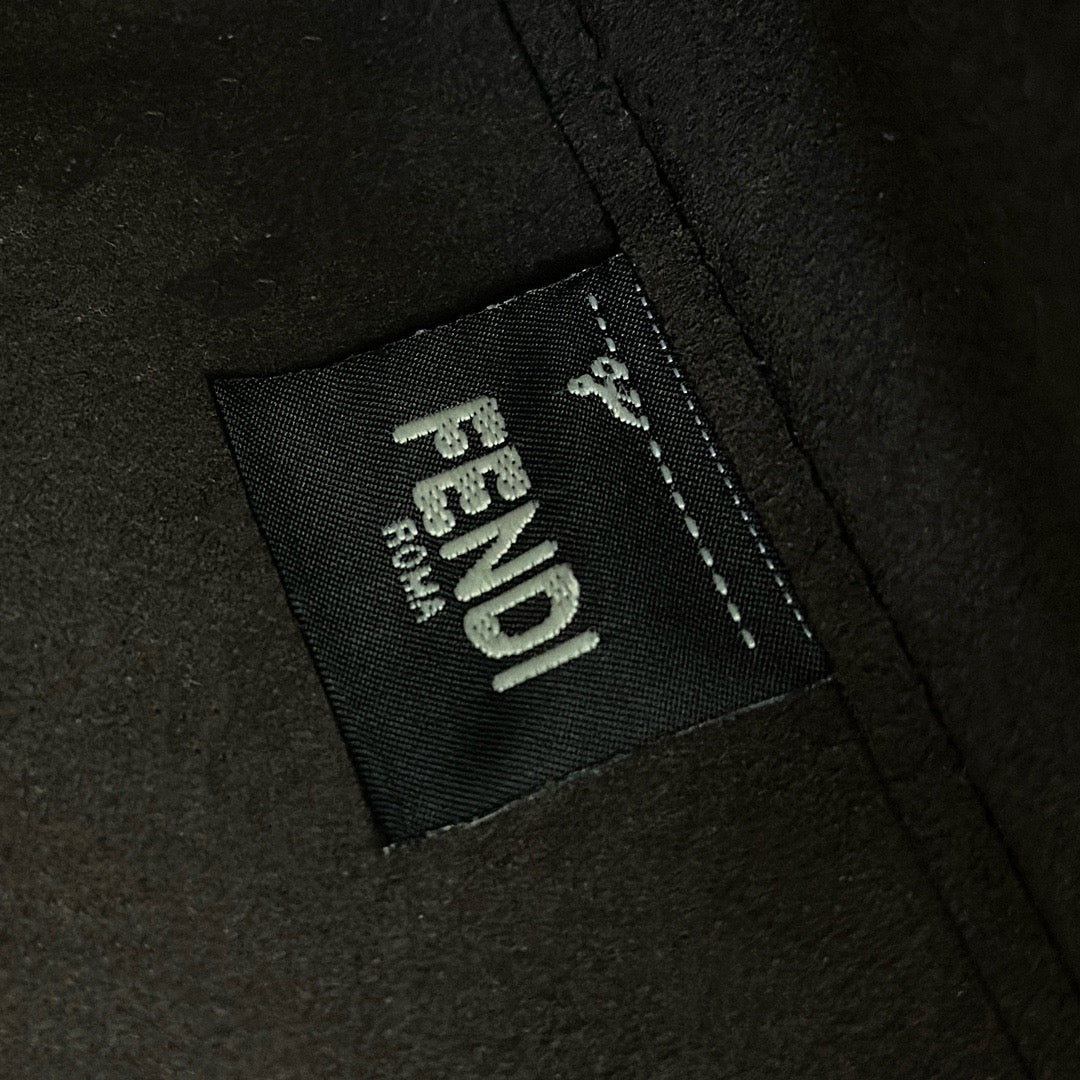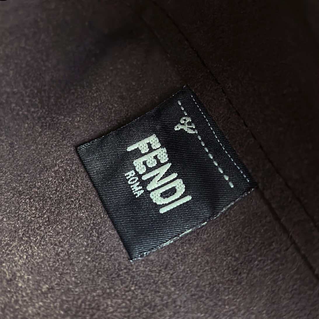 FF 자카드 패브릭은 견고하면서도 가벼운 것이 특징이며, 소가죽 트리밍이 전체적인 고급감을 더합니다. 내부는 스웨이드 또는 마이크로파이버 소재로 마감되며, 자석 클로저와 펜디 로고 각인이 있는 하드웨어가 세련된 느낌을 줍니다.