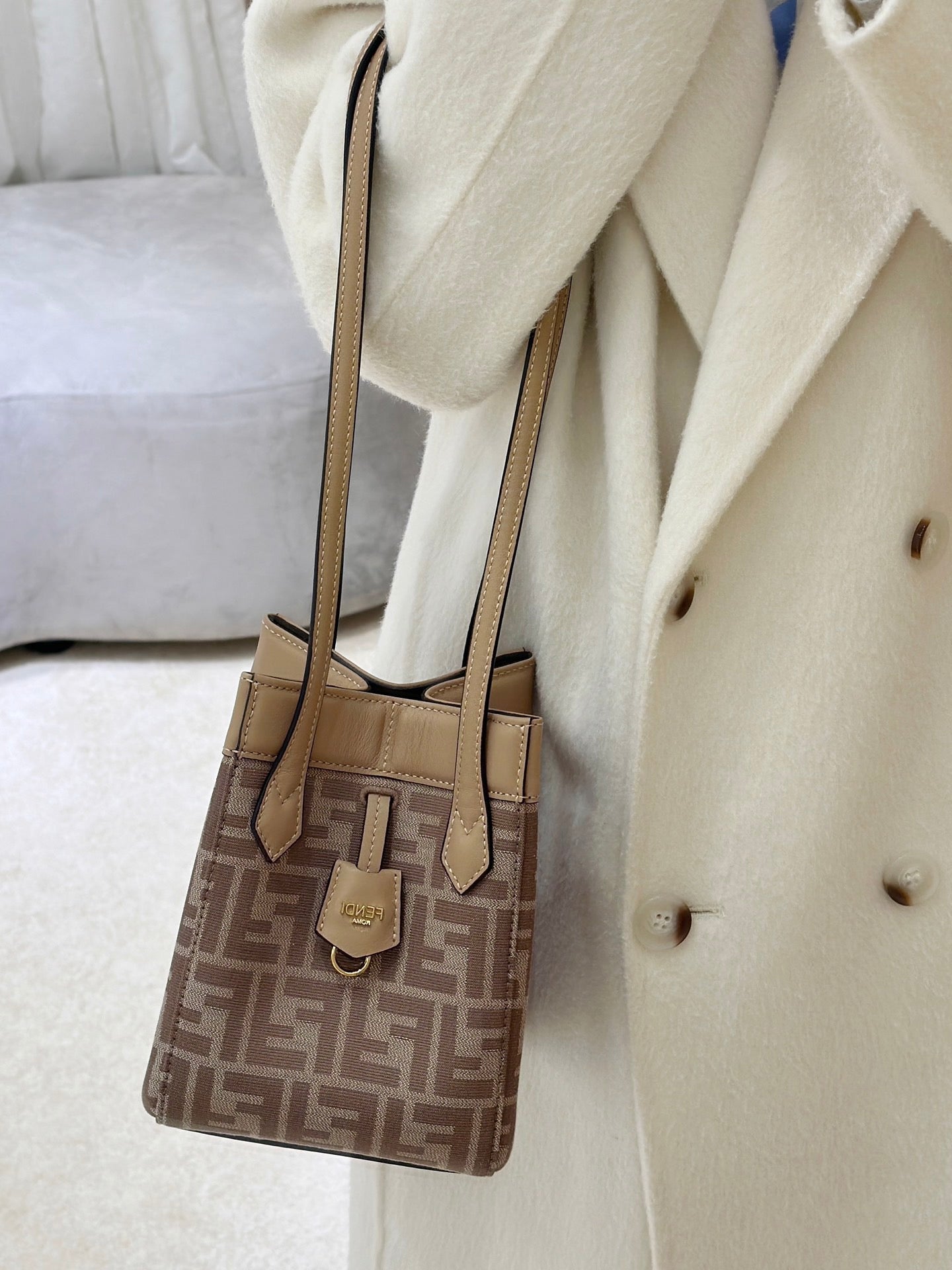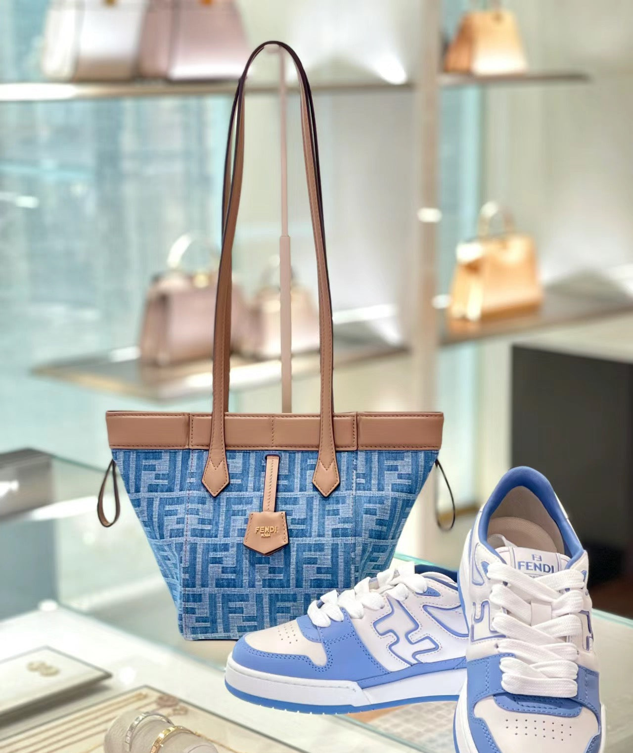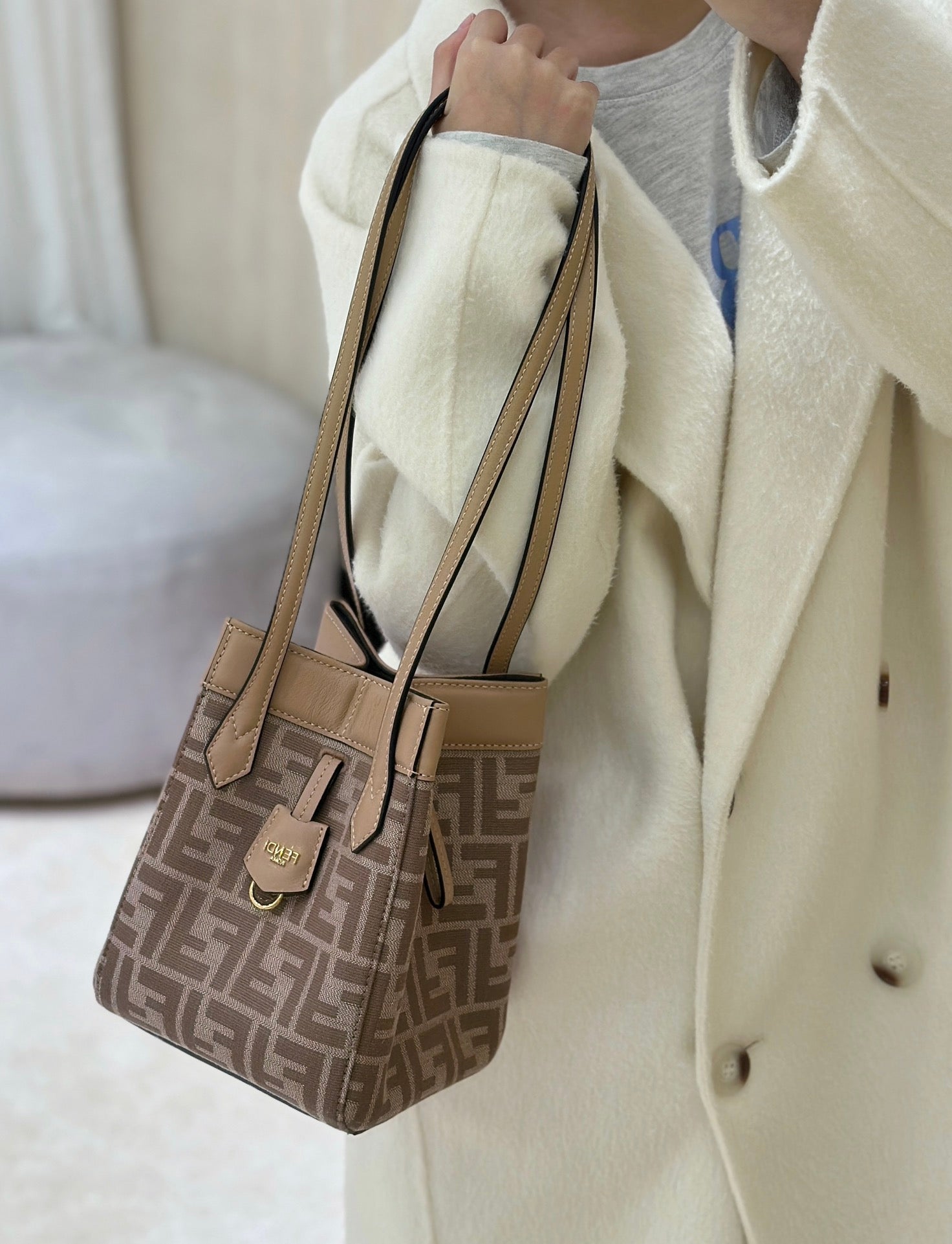 이 제품은 접고 펼치는 오리가미 구조를 기반으로 하며, 펜디의 FF 로고가 정교하게 직조된 자카드 패브릭이 외관을 장식합니다. 토트백으로 활용 가능하며, 실용성과 디자인을 동시에 만족시키는 아이템입니다.