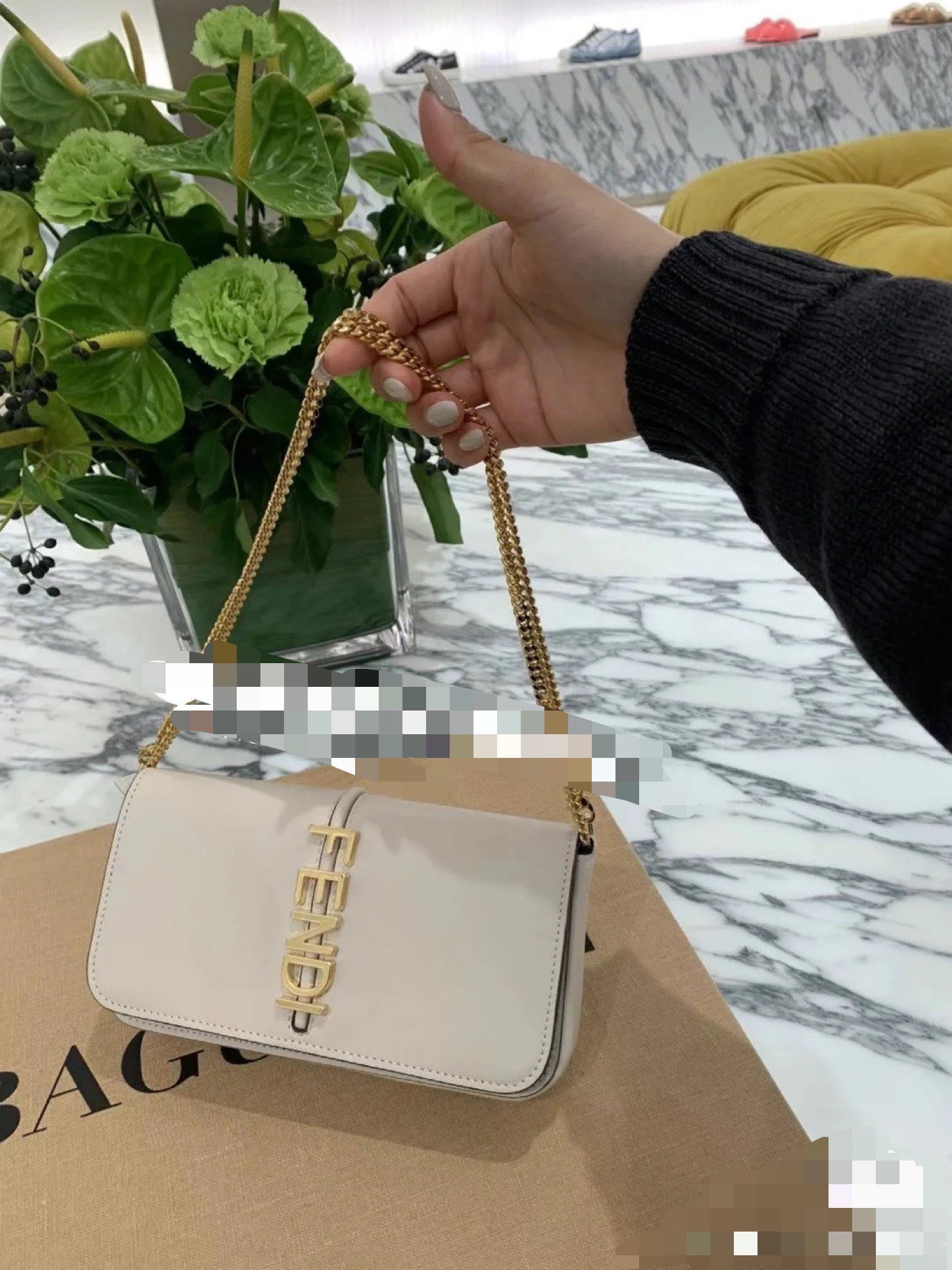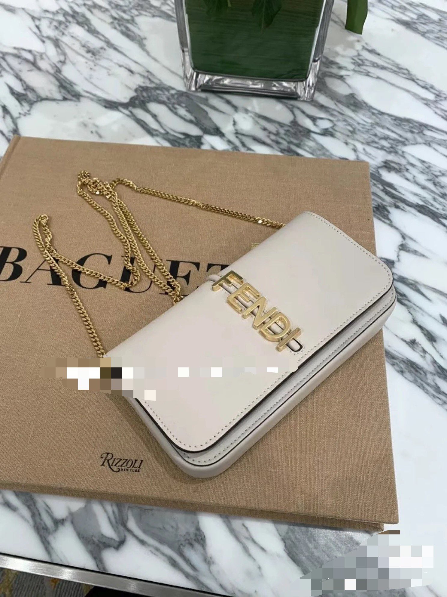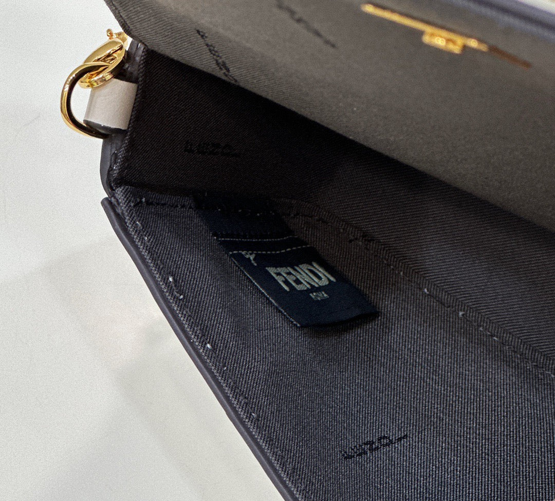 디테일: 하단 펜디 로고 메탈 디테일, 내부 카드 슬롯, 자석 플랩 클로저, 탈부착 체인 스트랩