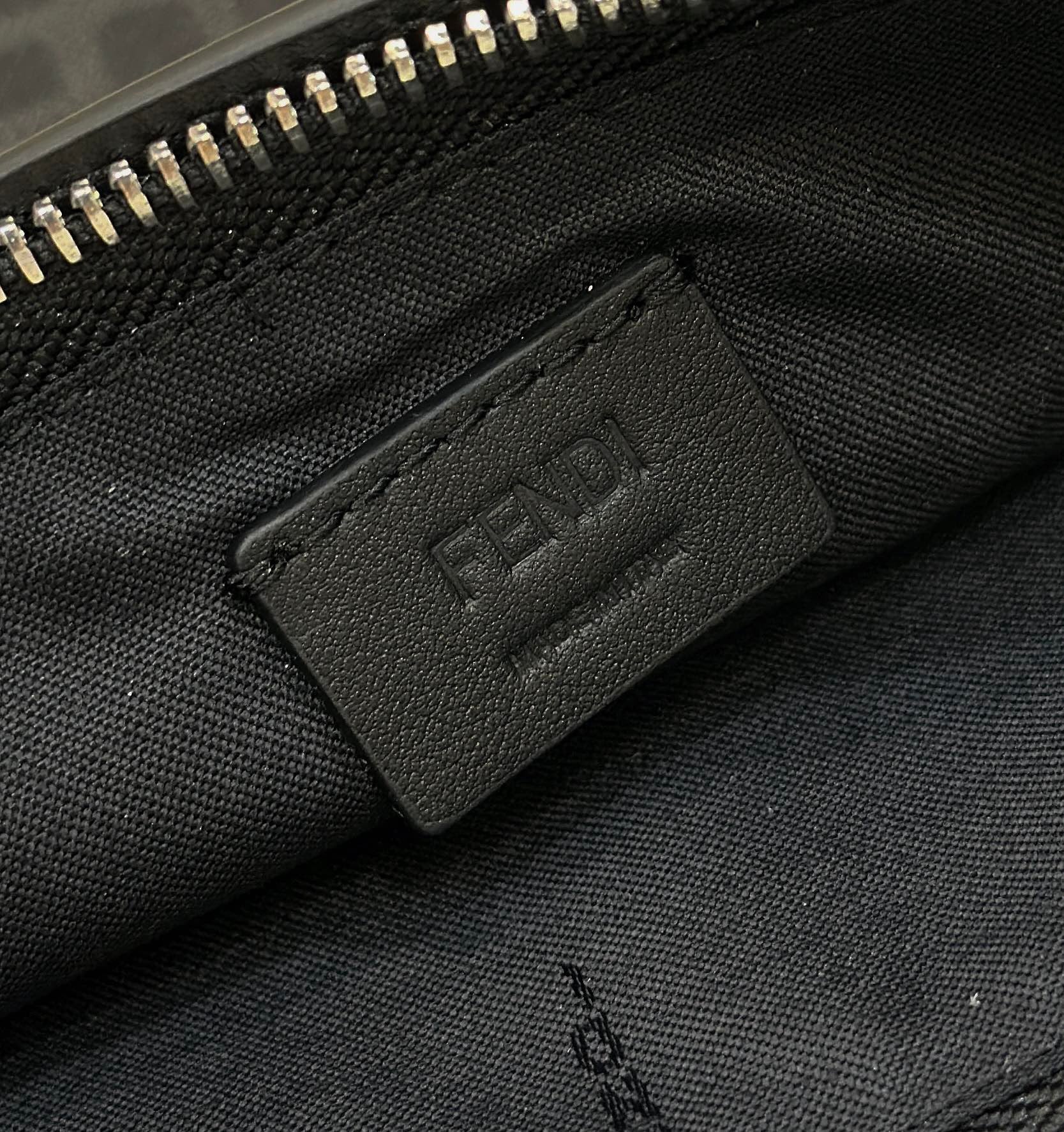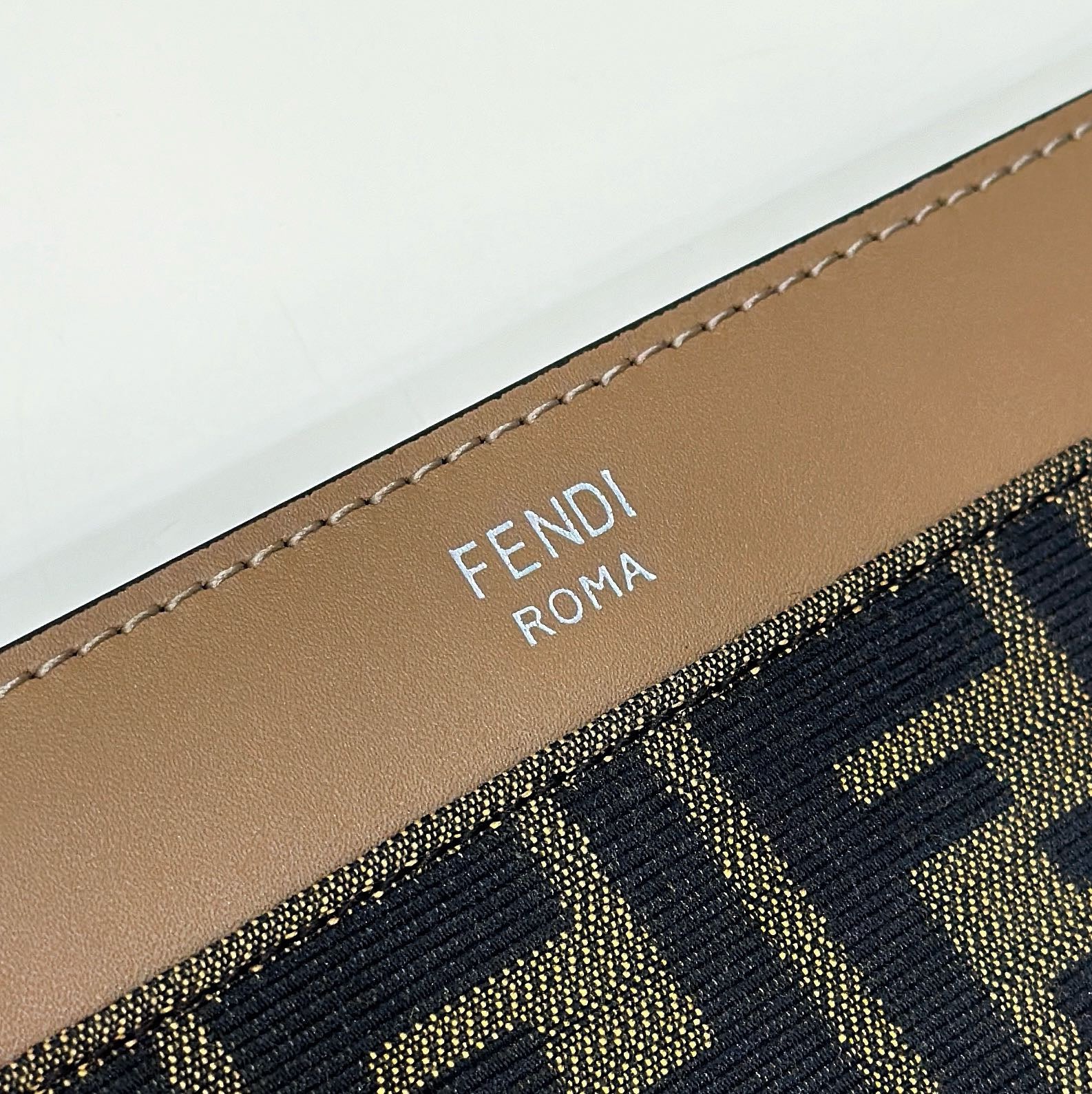 이 제품은 깔끔한 직사각형 형태의 플랫 디자인으로, 불필요한 부피 없이 간결한 스타일을 제공합니다. FF 자카드 패턴이 전체적으로 적용되어 브랜드의 아이덴티티를 강조하며, 손목 스트랩을 활용해 다양한 연출이 가능합니다.