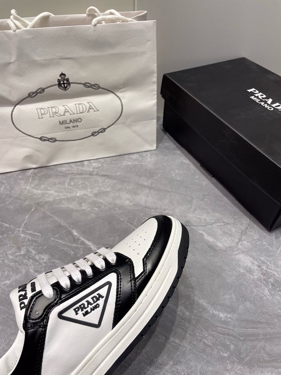 프라다 디스트릭트 스니커즈(Prada District Sneakers)는 도시적 감성과 프라다 특유의 세련된 디자인이 결합된 로우탑 스니커즈입니다. 매트한 가죽 텍스처와 유려한 실루엣이 특징이며, 심플하면서도 고급스러운 무드로 다양한 스타일에 활용할 수 있습니다.