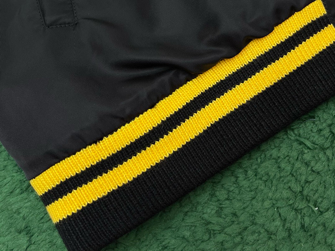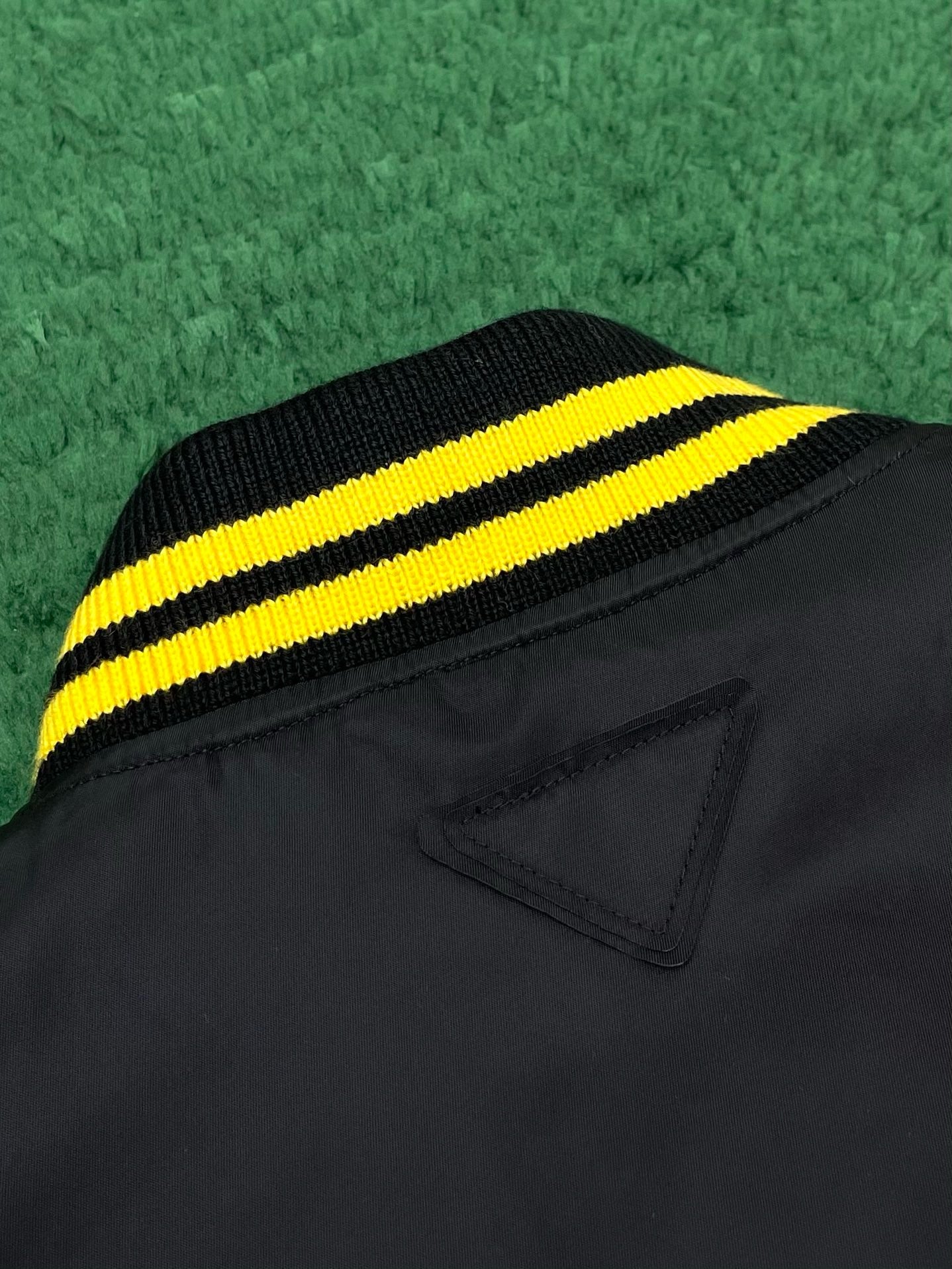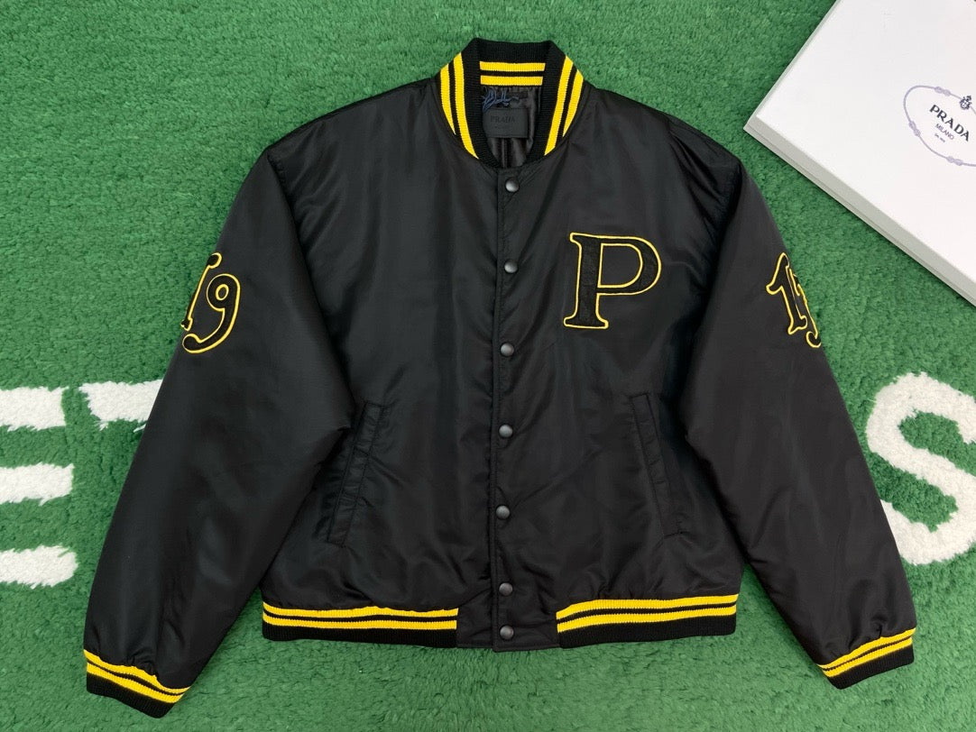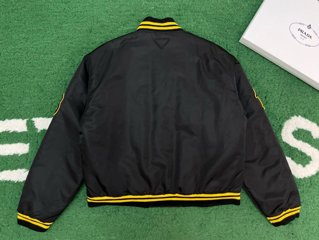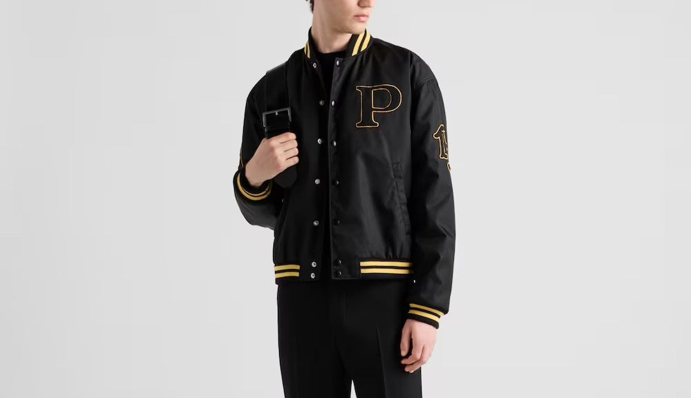 프라다 레더 봄버 자켓 패치 블랙