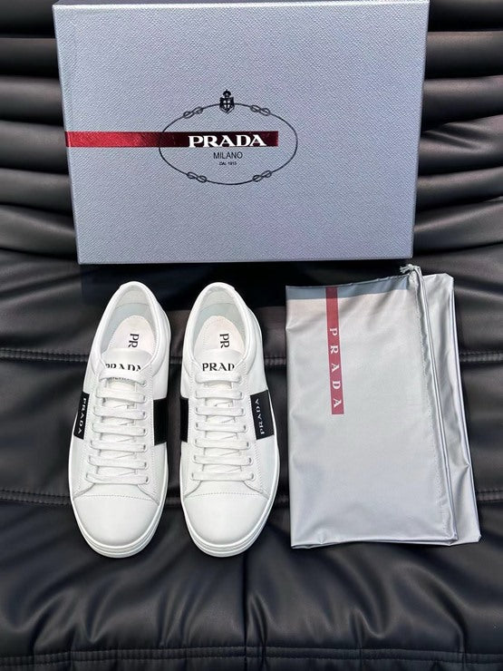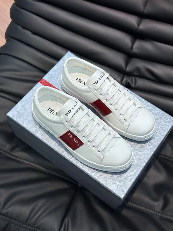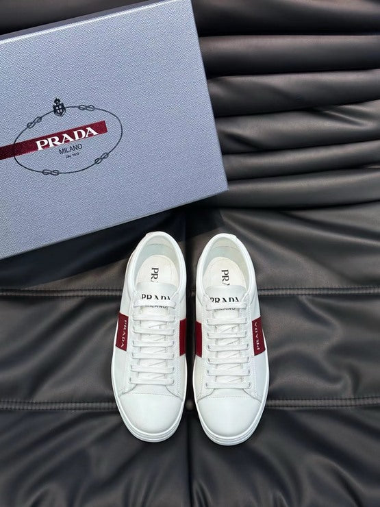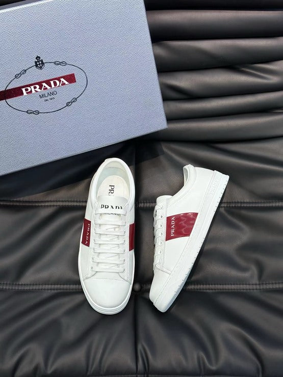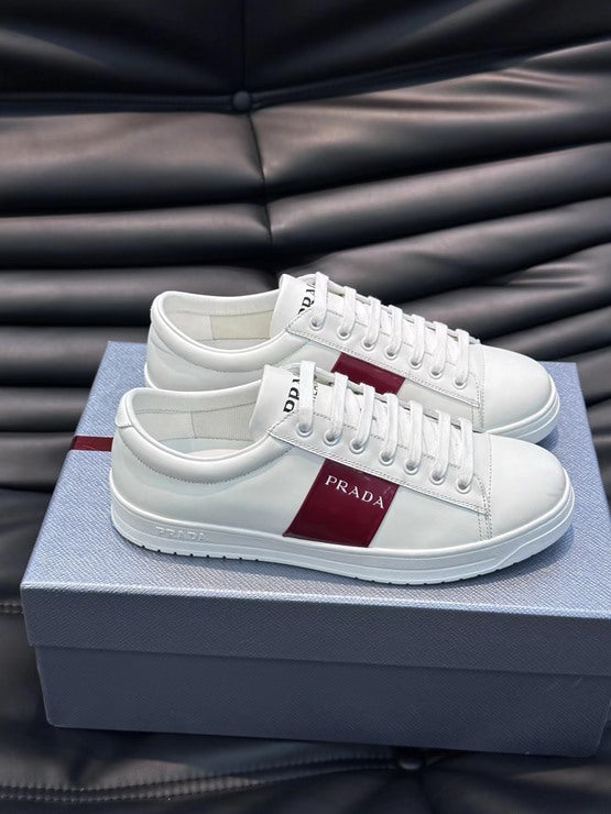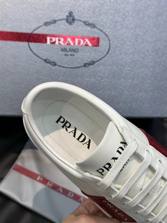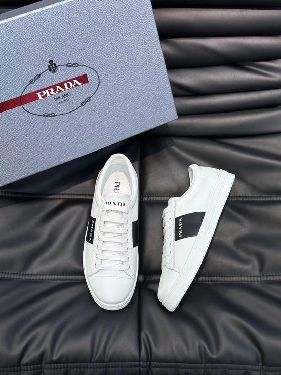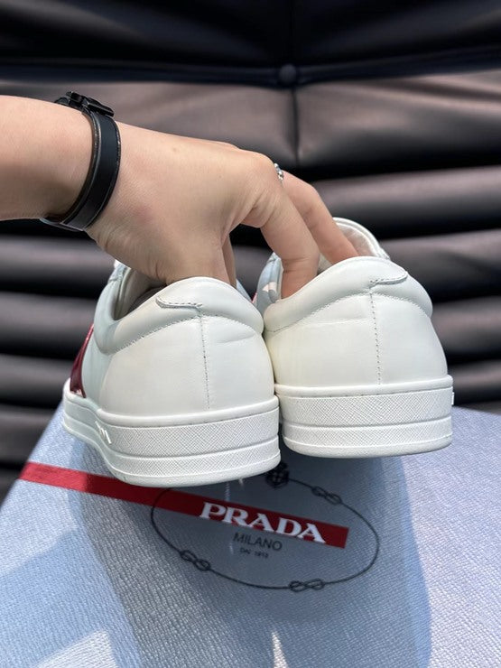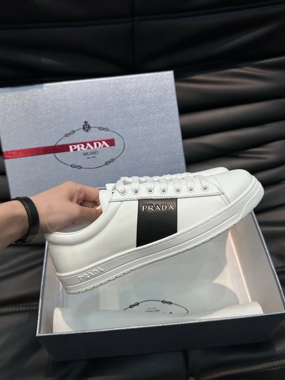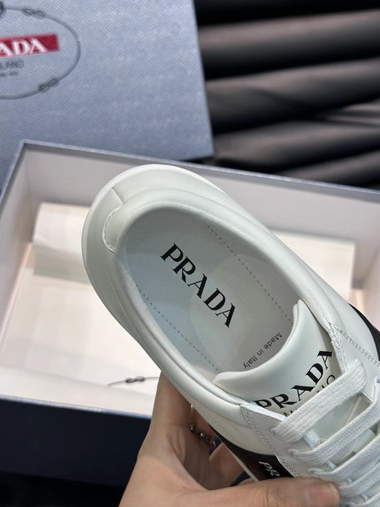 유광 또는 매트한 가죽 어퍼로 구성된 이 스니커즈는 간결한 실루엣에 슈레이스 디테일이 더해져 고급스러운 감각을 완성합니다. 측면에는 프라다 로고가 절제된 형태로 배치되어 브랜드 아이덴티티를 드러냅니다. 깔끔한 화이트, 블랙, 또는 모노톤 컬러가 대표적으로 출시되어 어떤 스타일에도 조화롭게 어우러집니다.