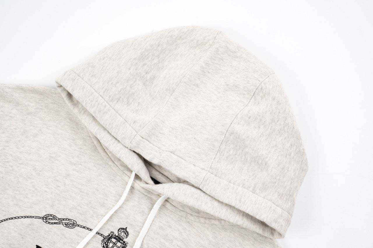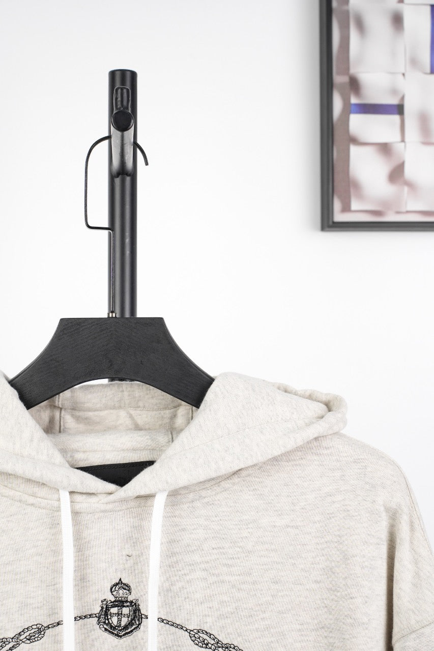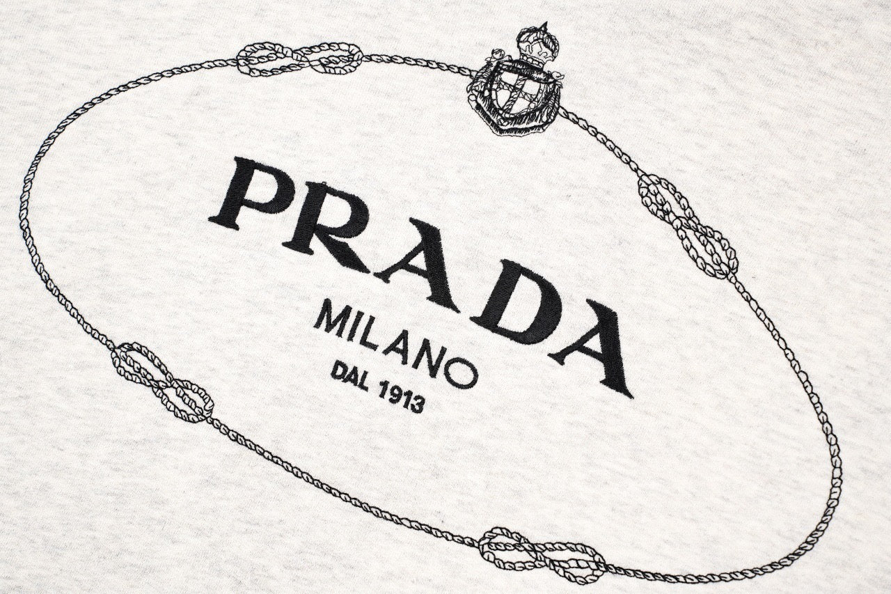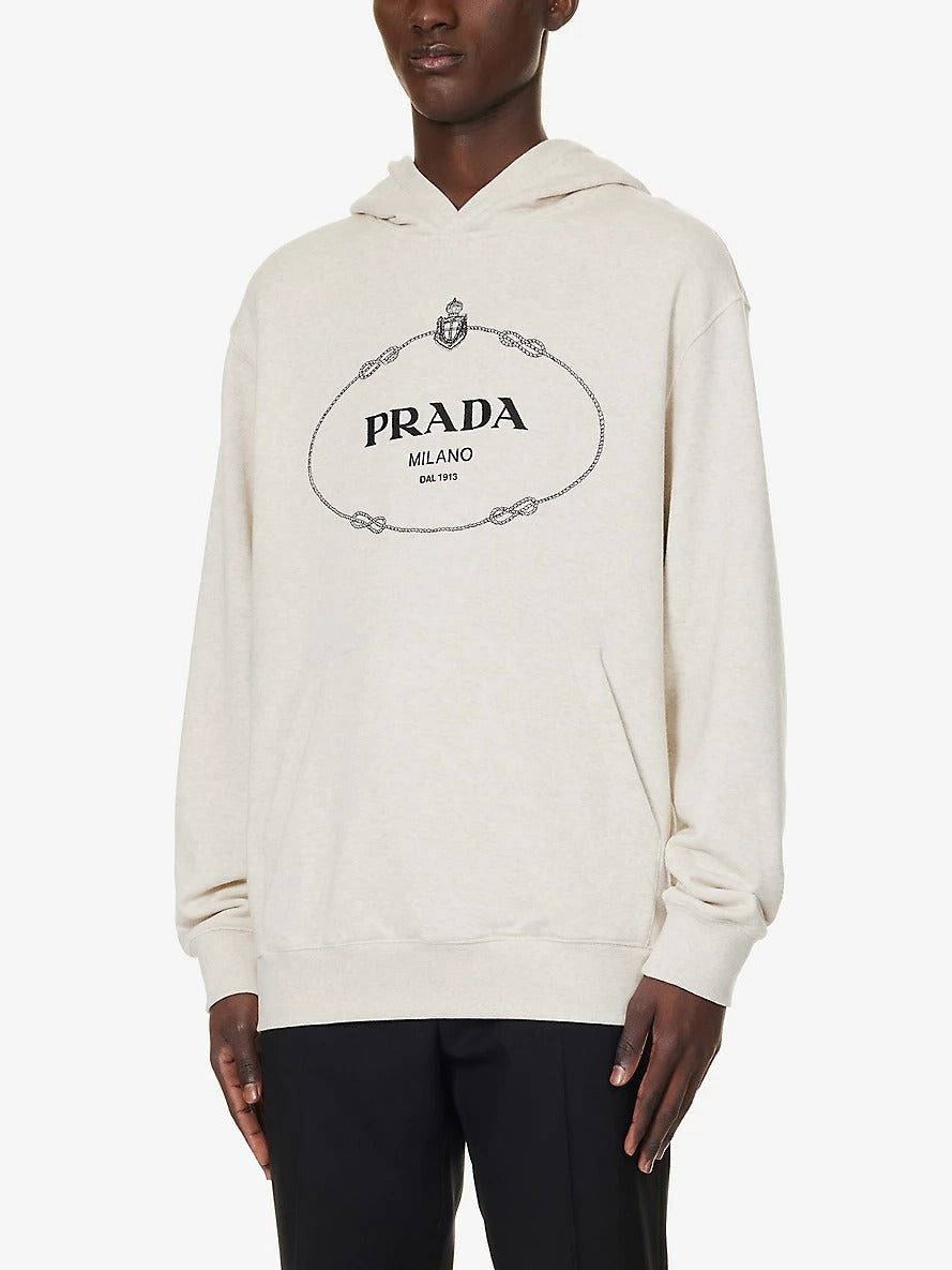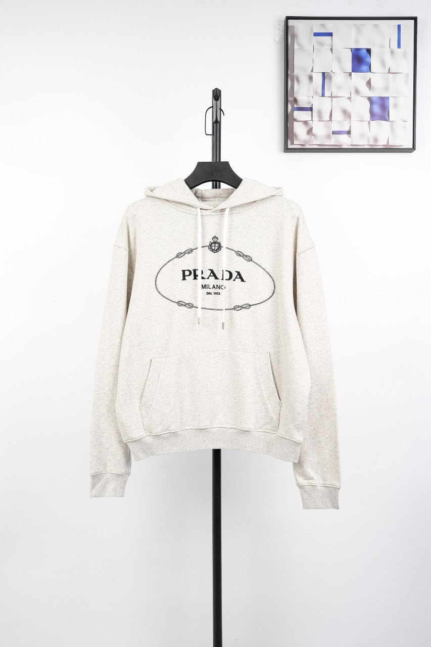 프라다 로고 자수 드로스트링 후드티
