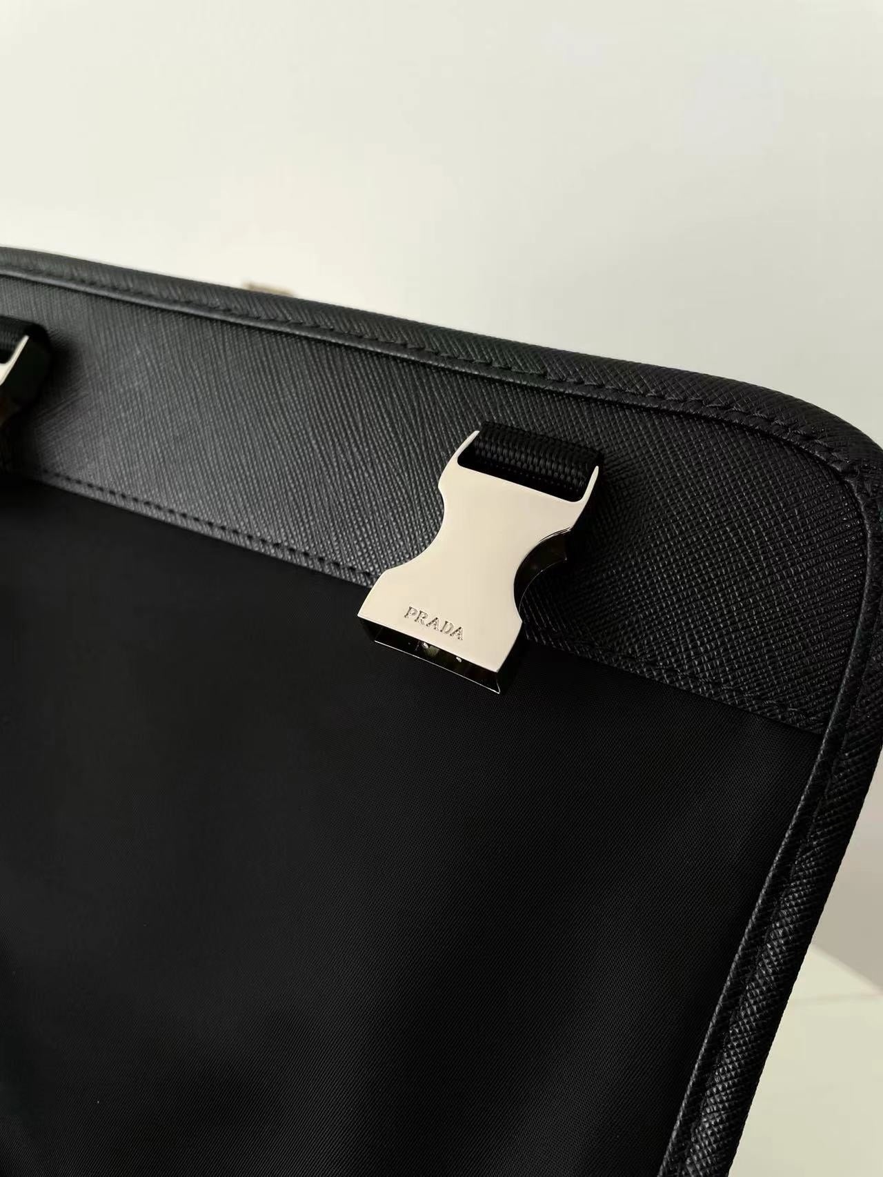 프라다의 친환경 리나일론 소재 바디에 사피아노 가죽 디테일이 더해져 내구성과 고급스러움을 모두 갖추었습니다. 전면에는 브랜드의 상징인 삼각 메탈 로고가 자리하고 있으며, 부드러운 질감과 견고한 구조로 다양한 환경에 적합합니다.