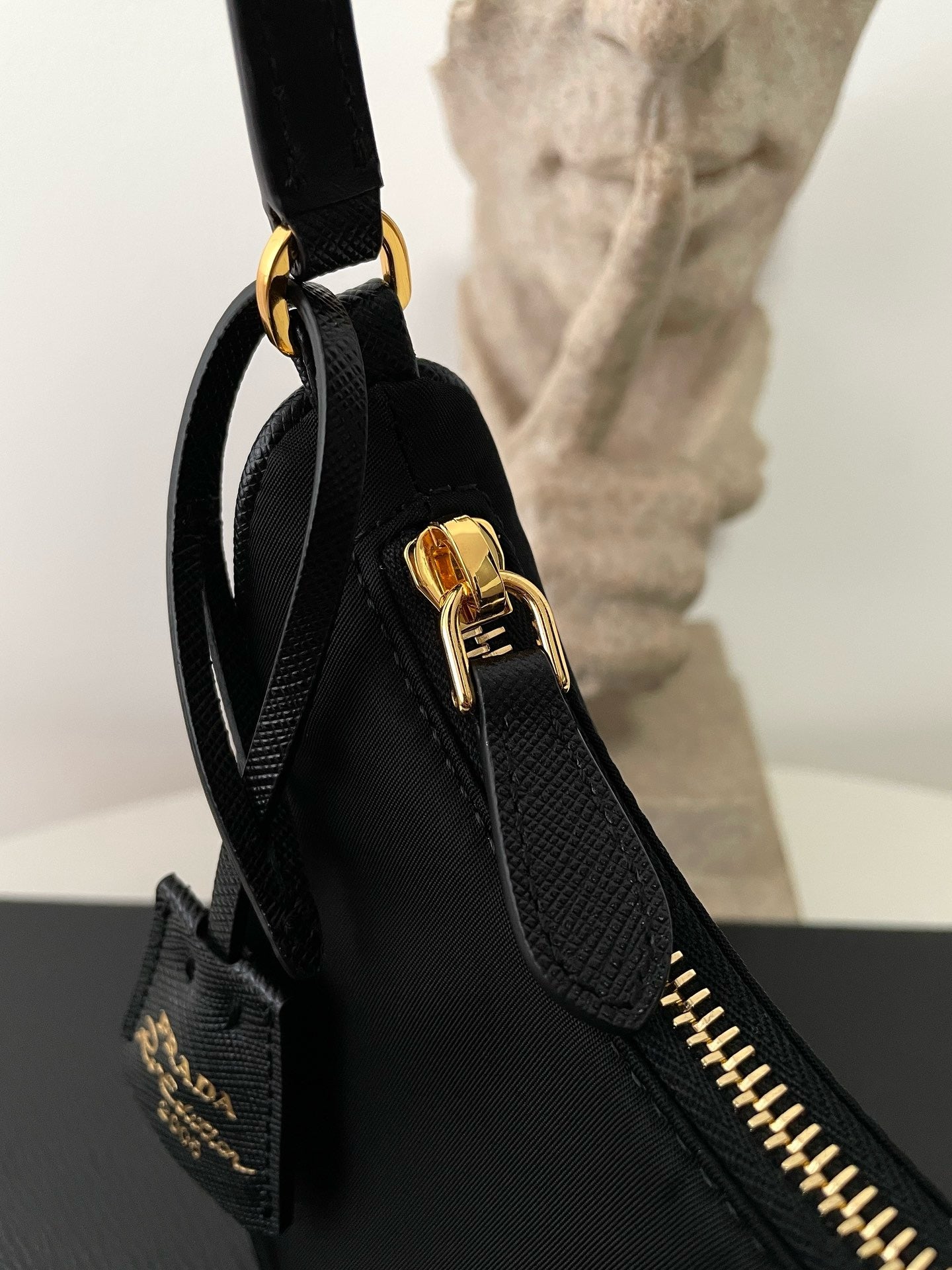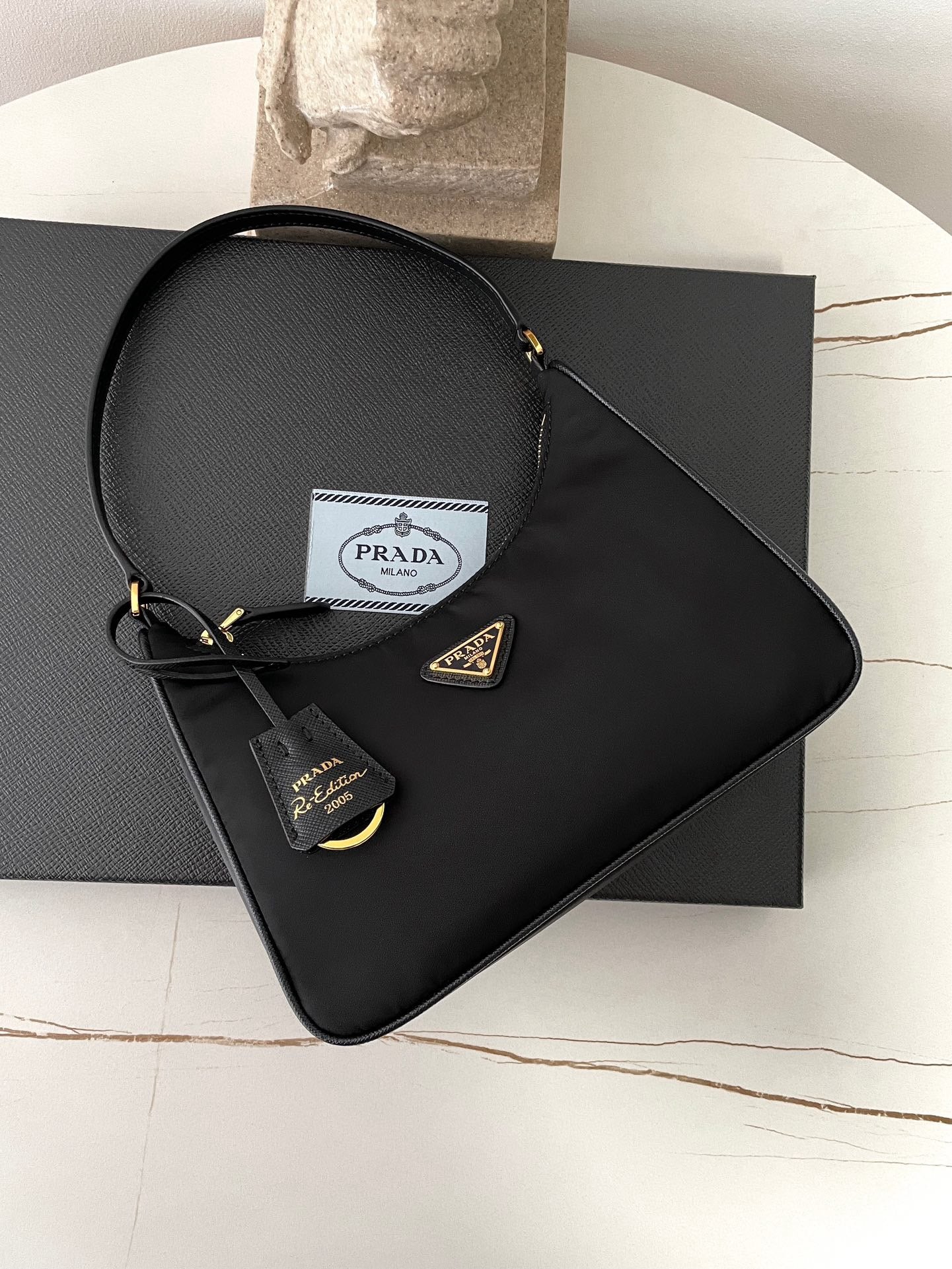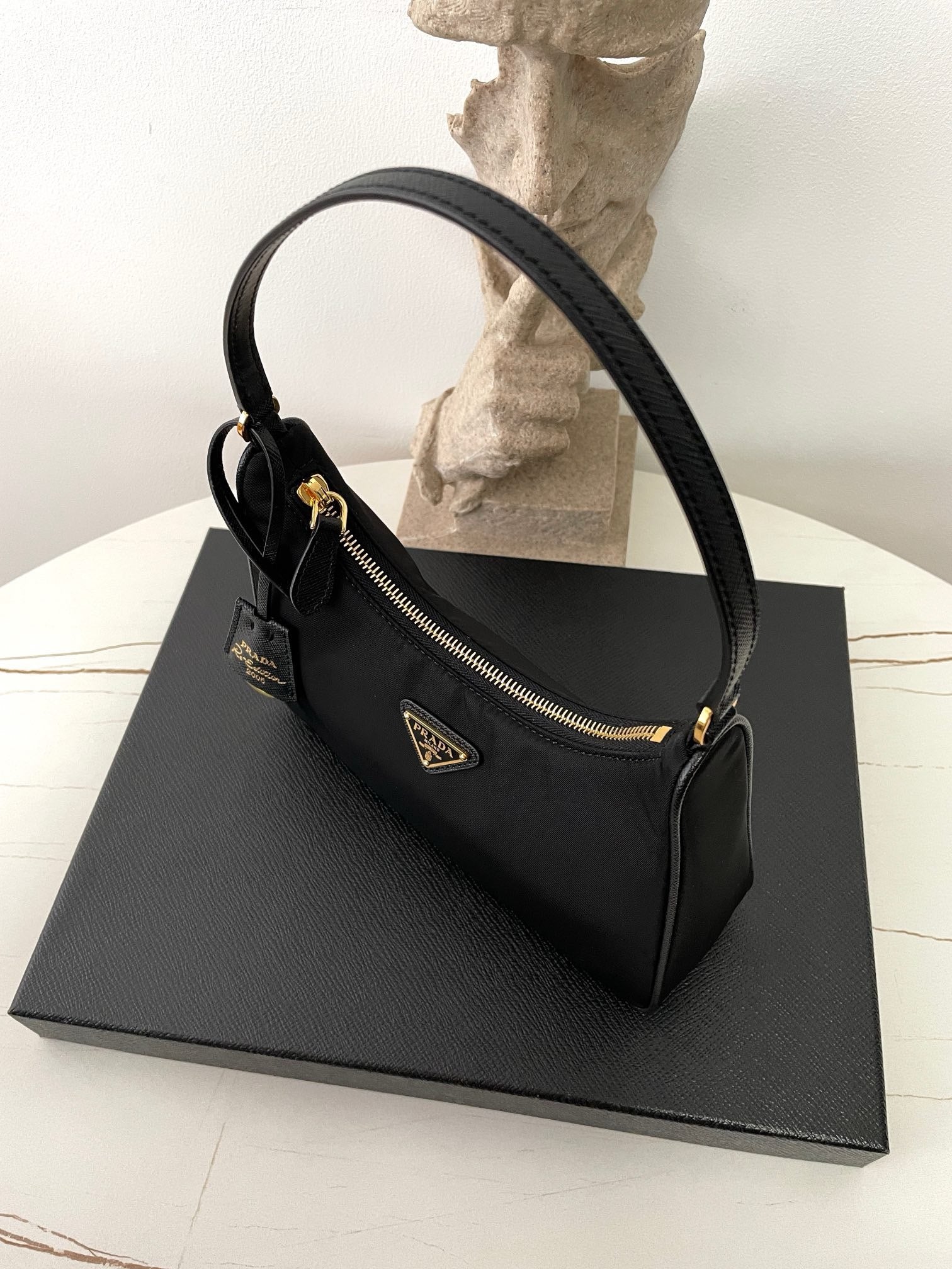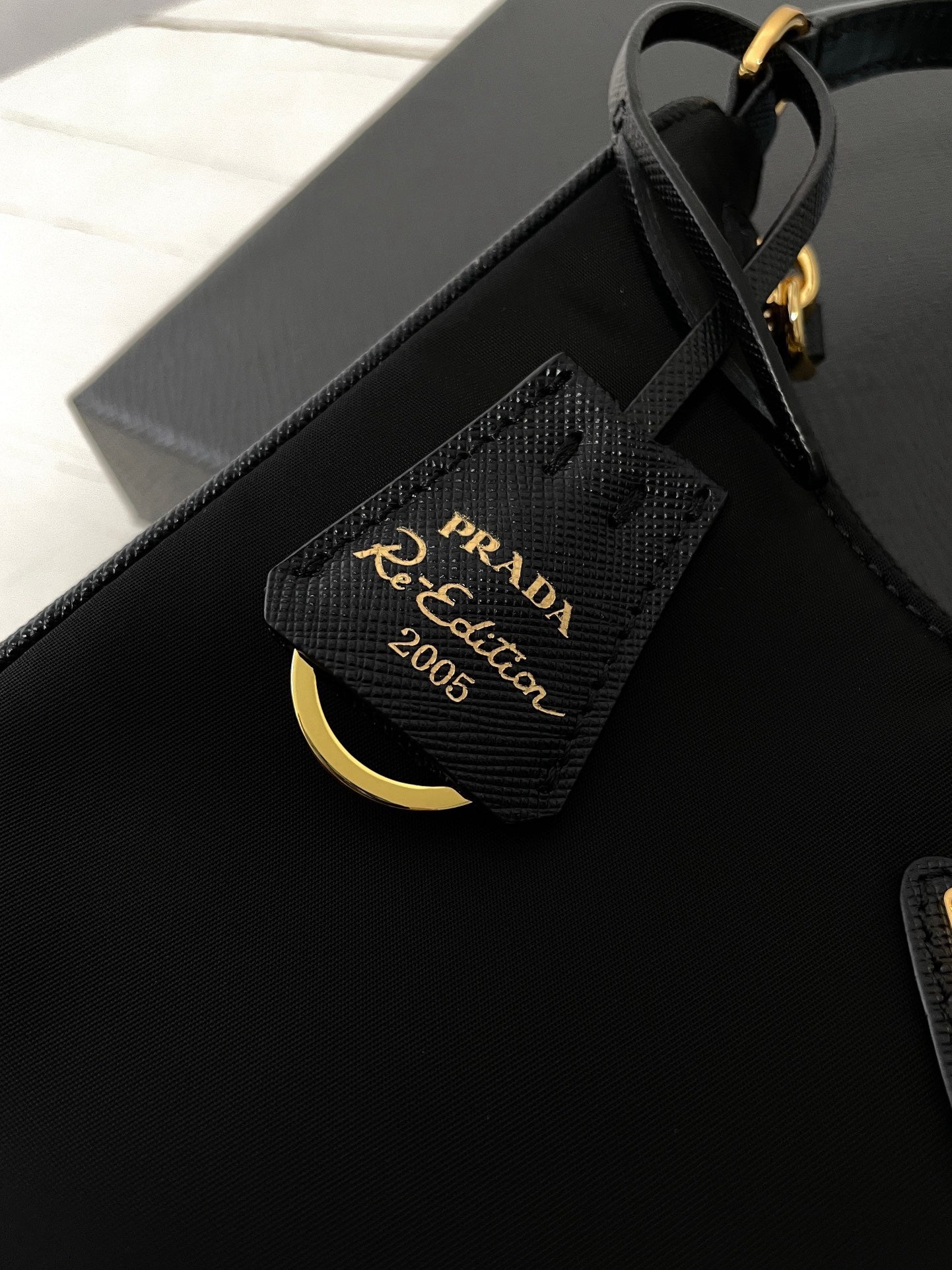 프라다 리에디션 리나일론 호보백 사피아노 핸들 금장(Prada Re-Edition Re-Nylon Hobo Bag with Saffiano Handle and Gold Hardware) - 심플하지만 확실한 존재감