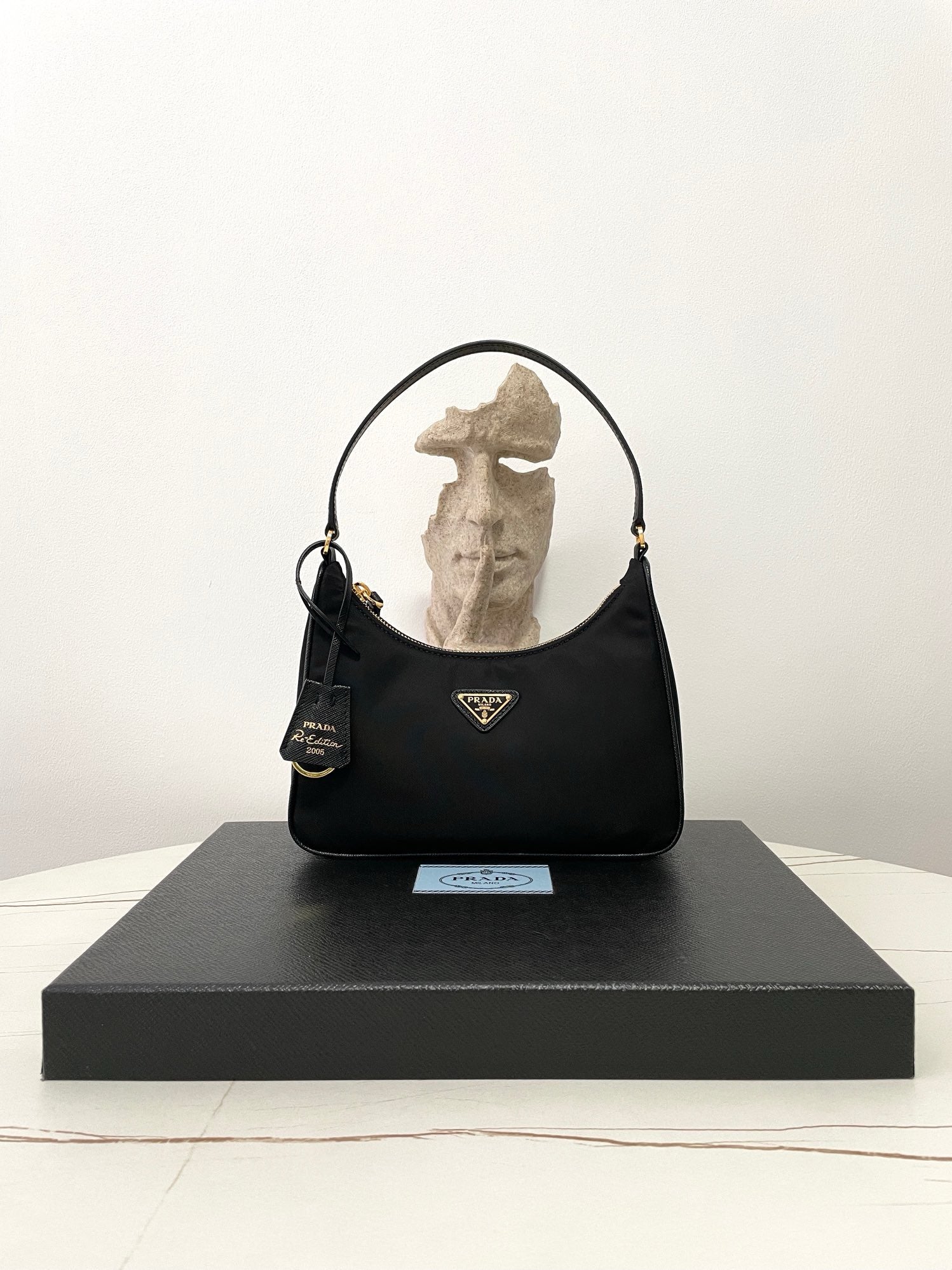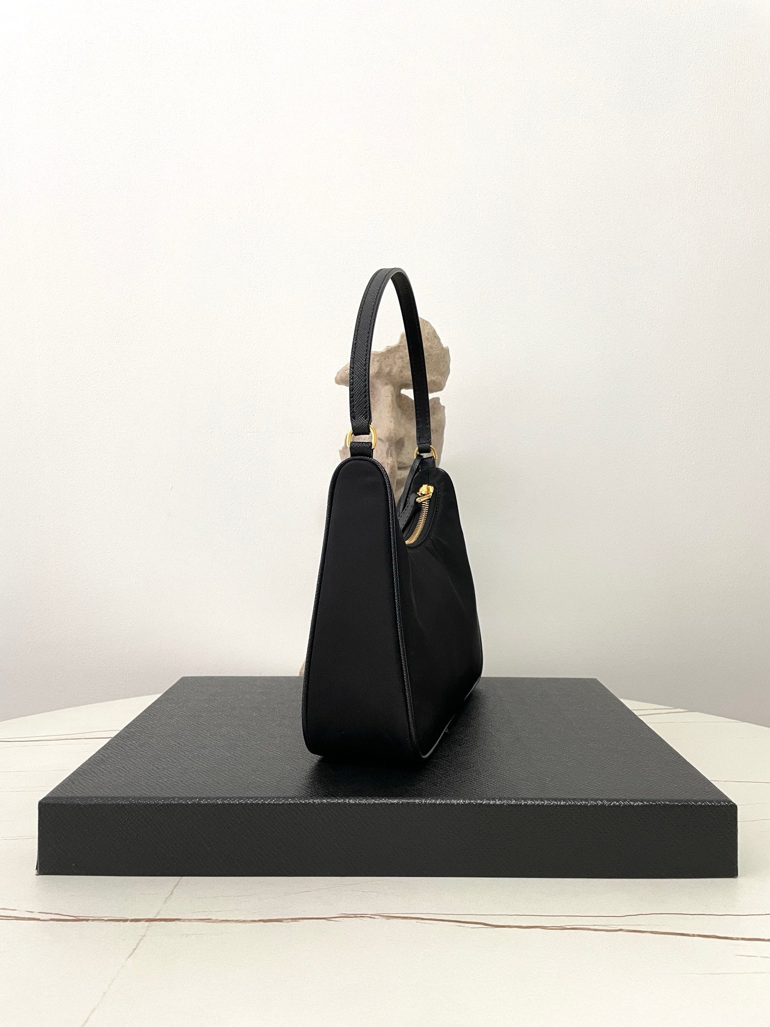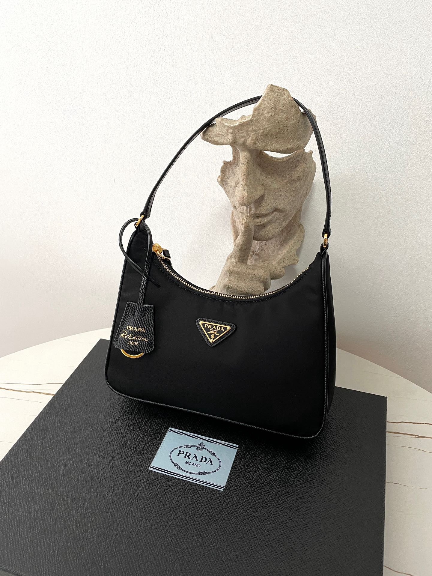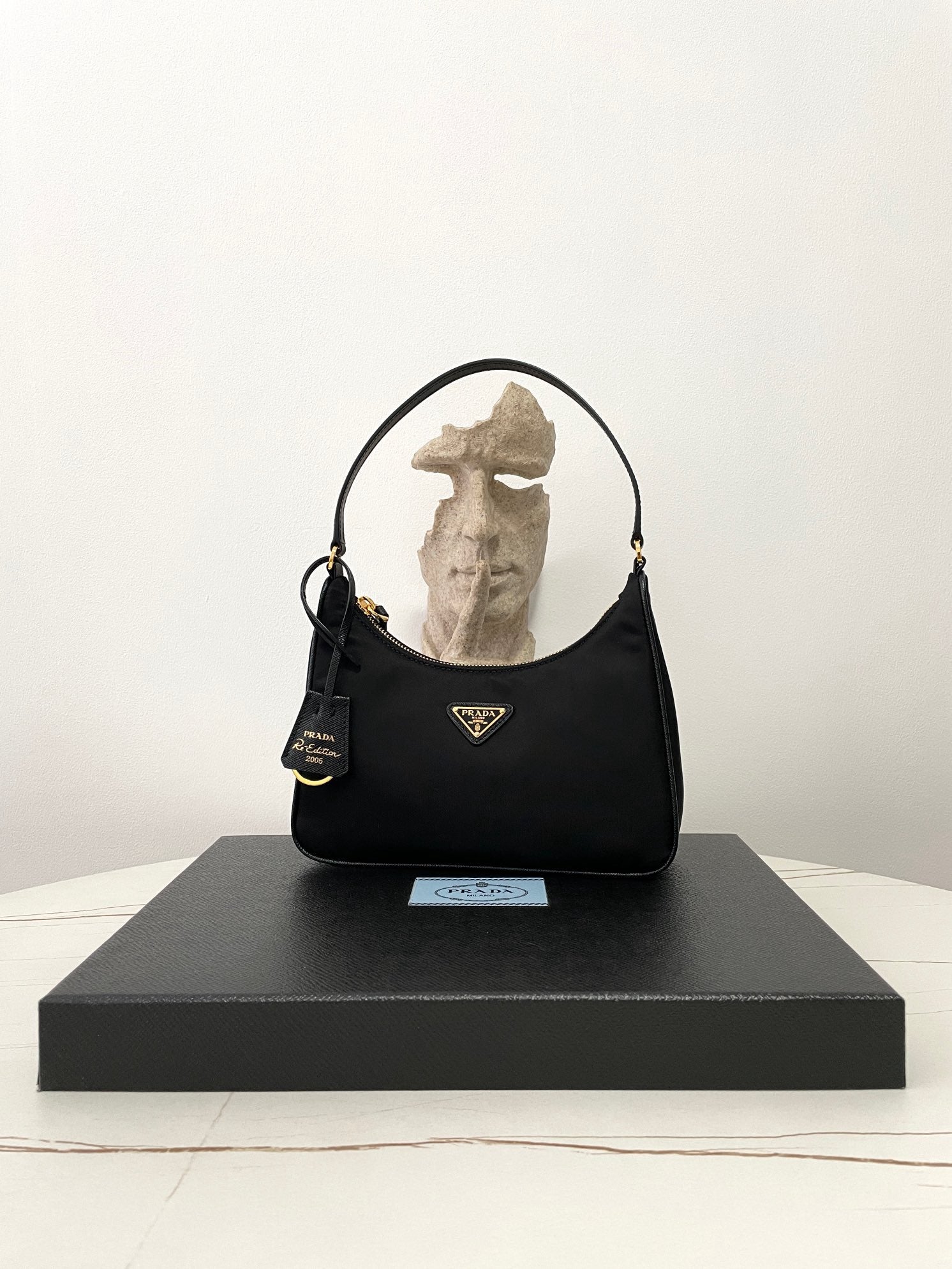 프라다 리에디션 리나일론 호보백 사피아노 핸들 금장(Prada Re-Edition Re-Nylon Hobo Bag with Saffiano Handle and Gold Hardware) - 심플하지만 확실한 존재감