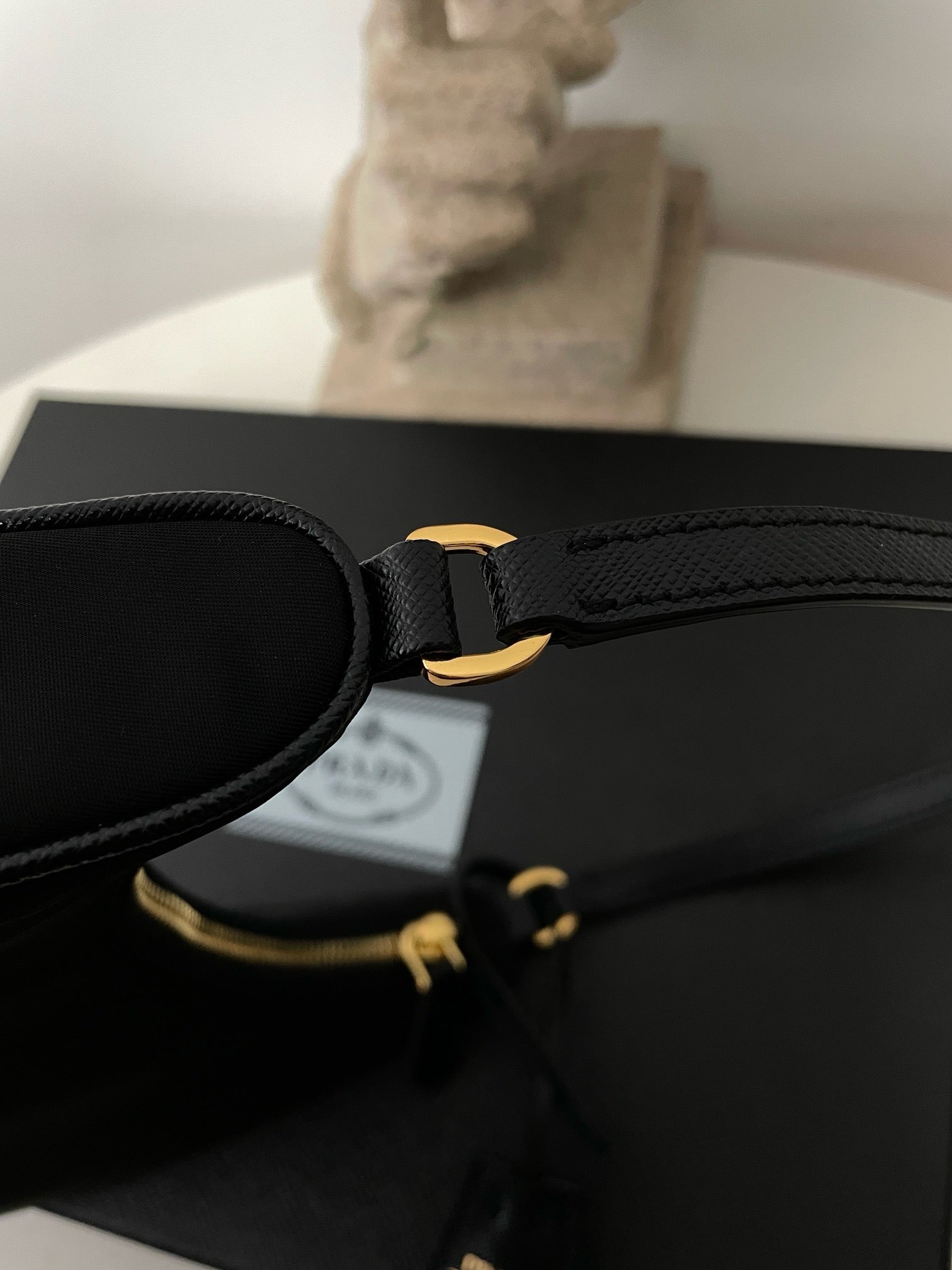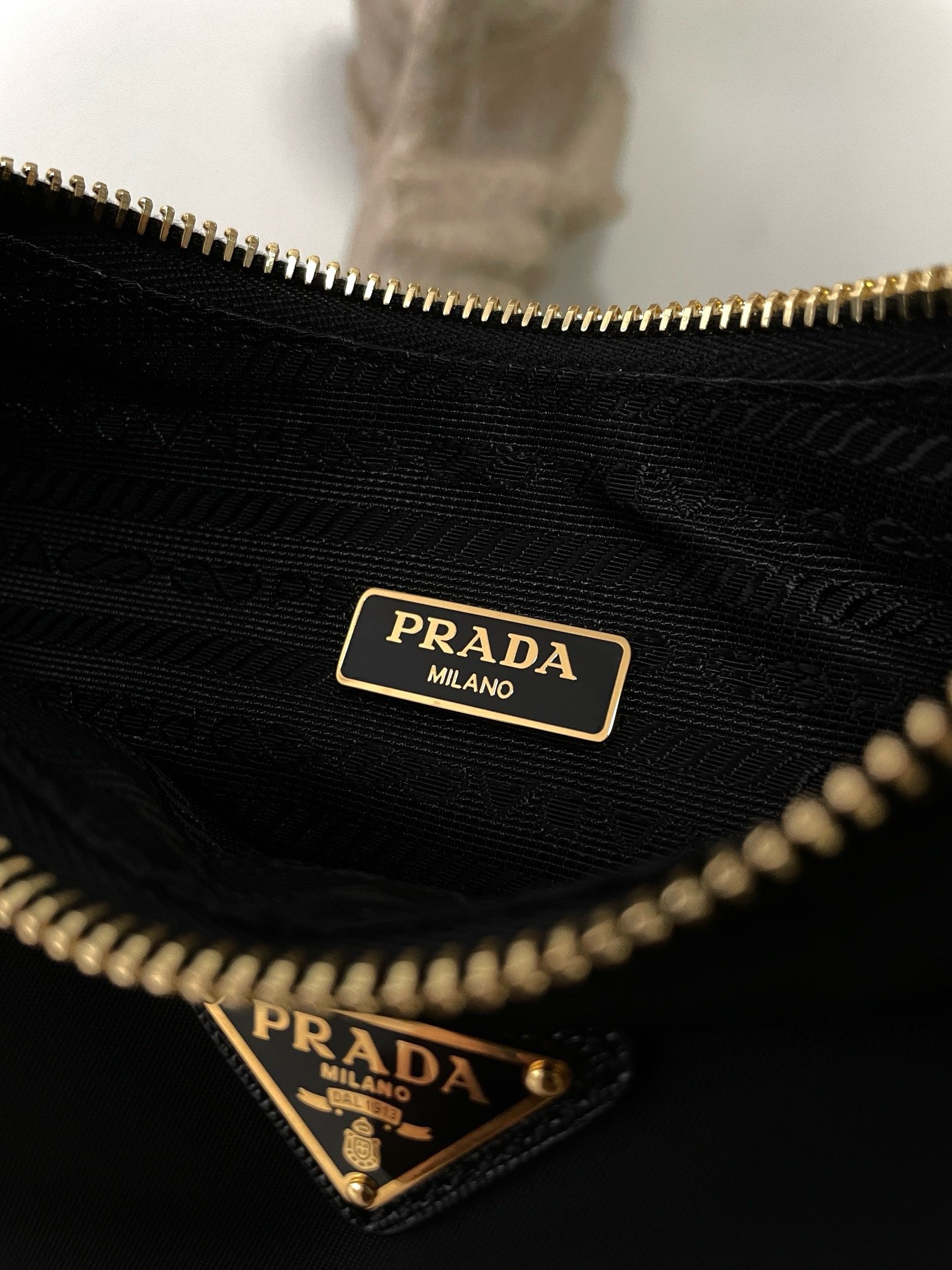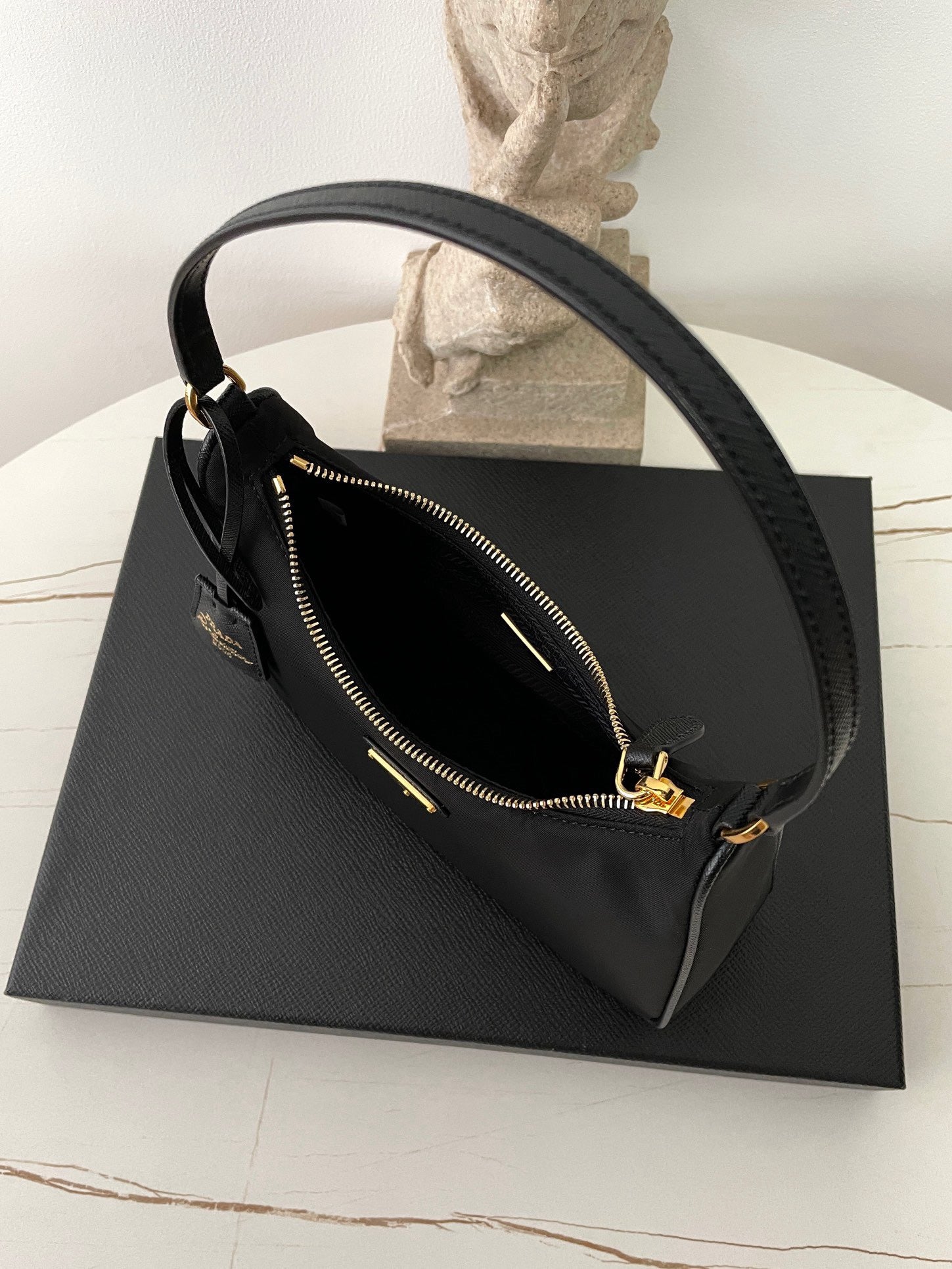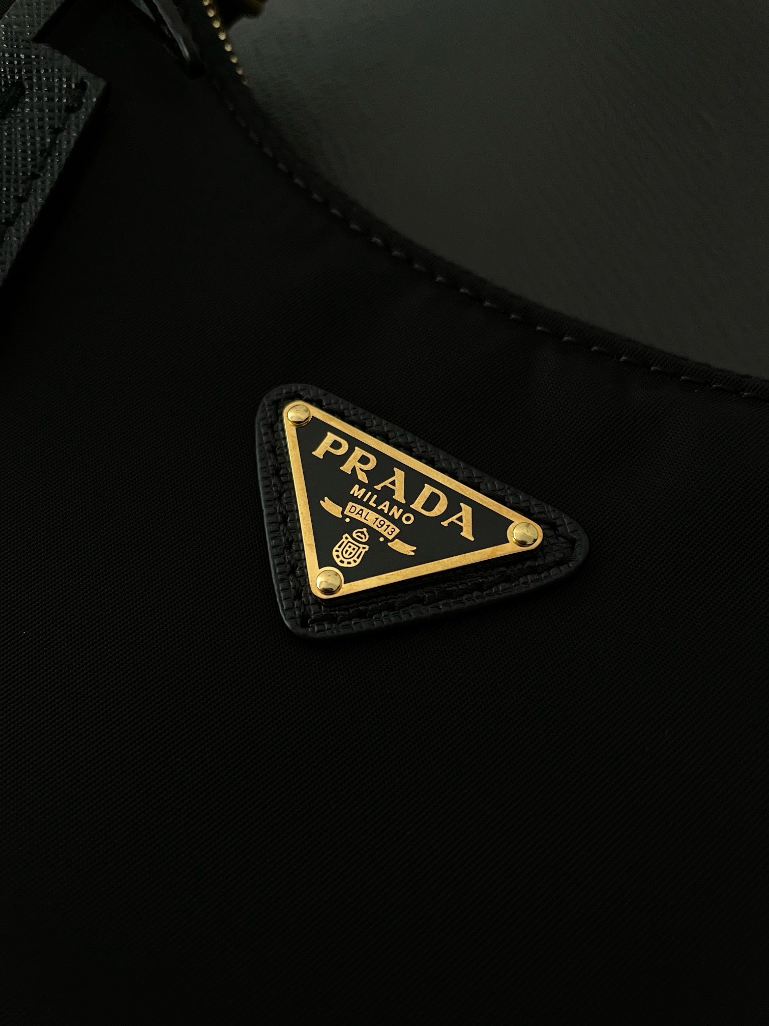 프라다 리에디션 리나일론 호보백 사피아노 핸들 금장(Prada Re-Edition Re-Nylon Hobo Bag with Saffiano Handle and Gold Hardware) - 심플하지만 확실한 존재감