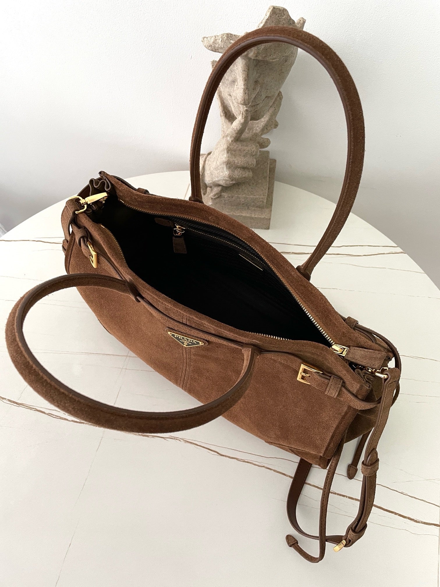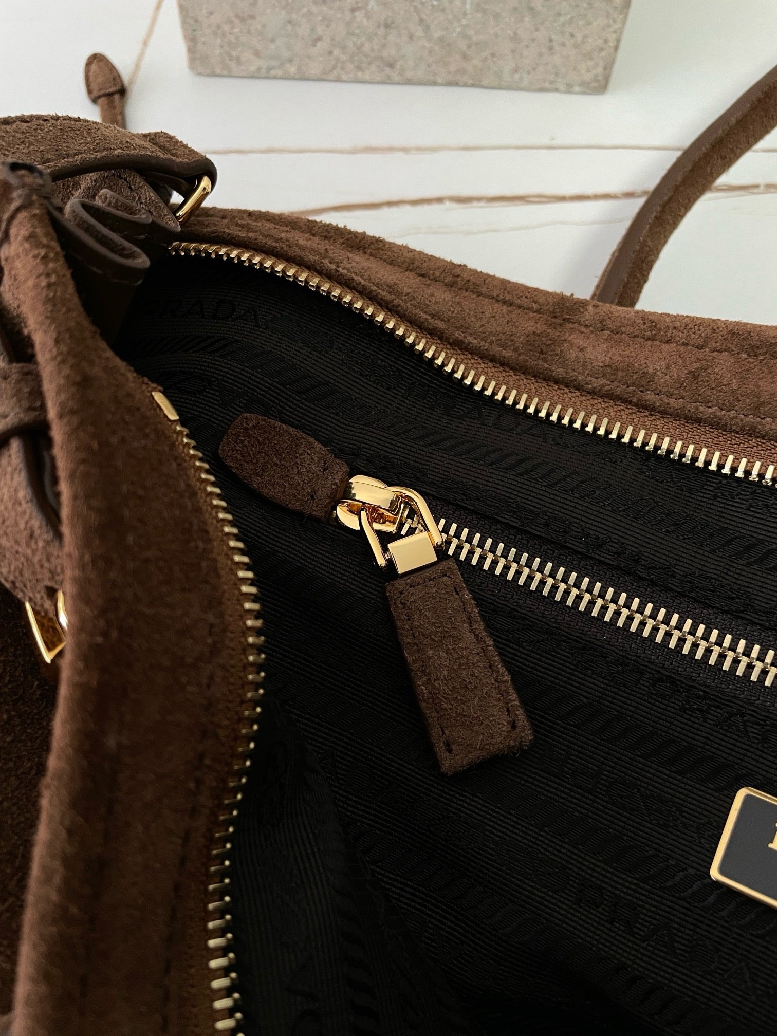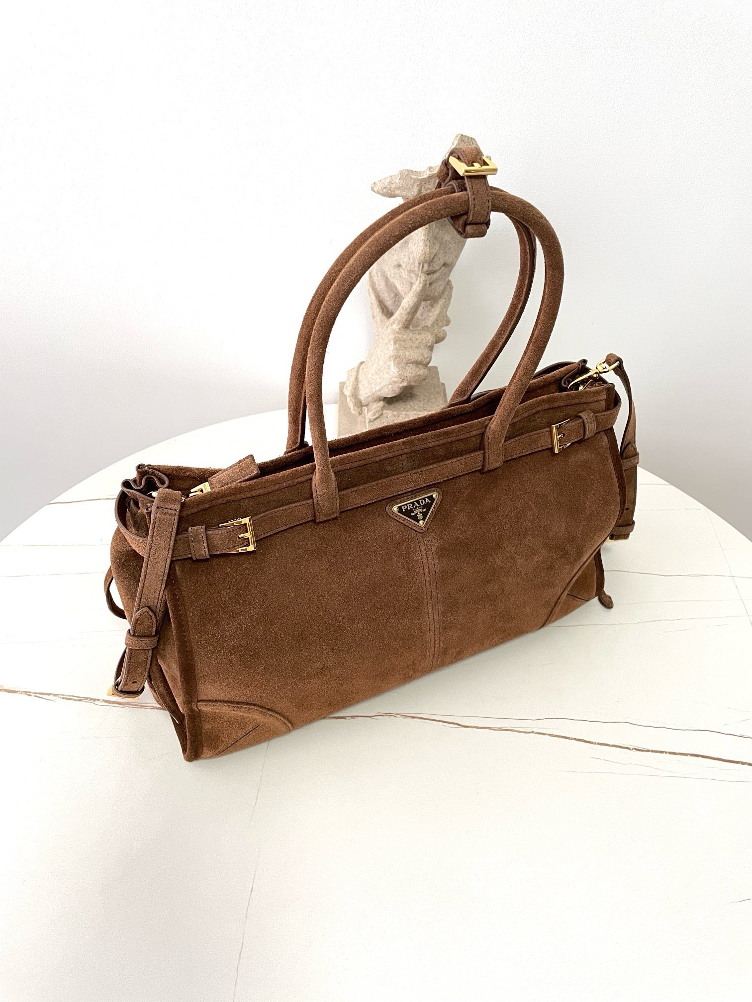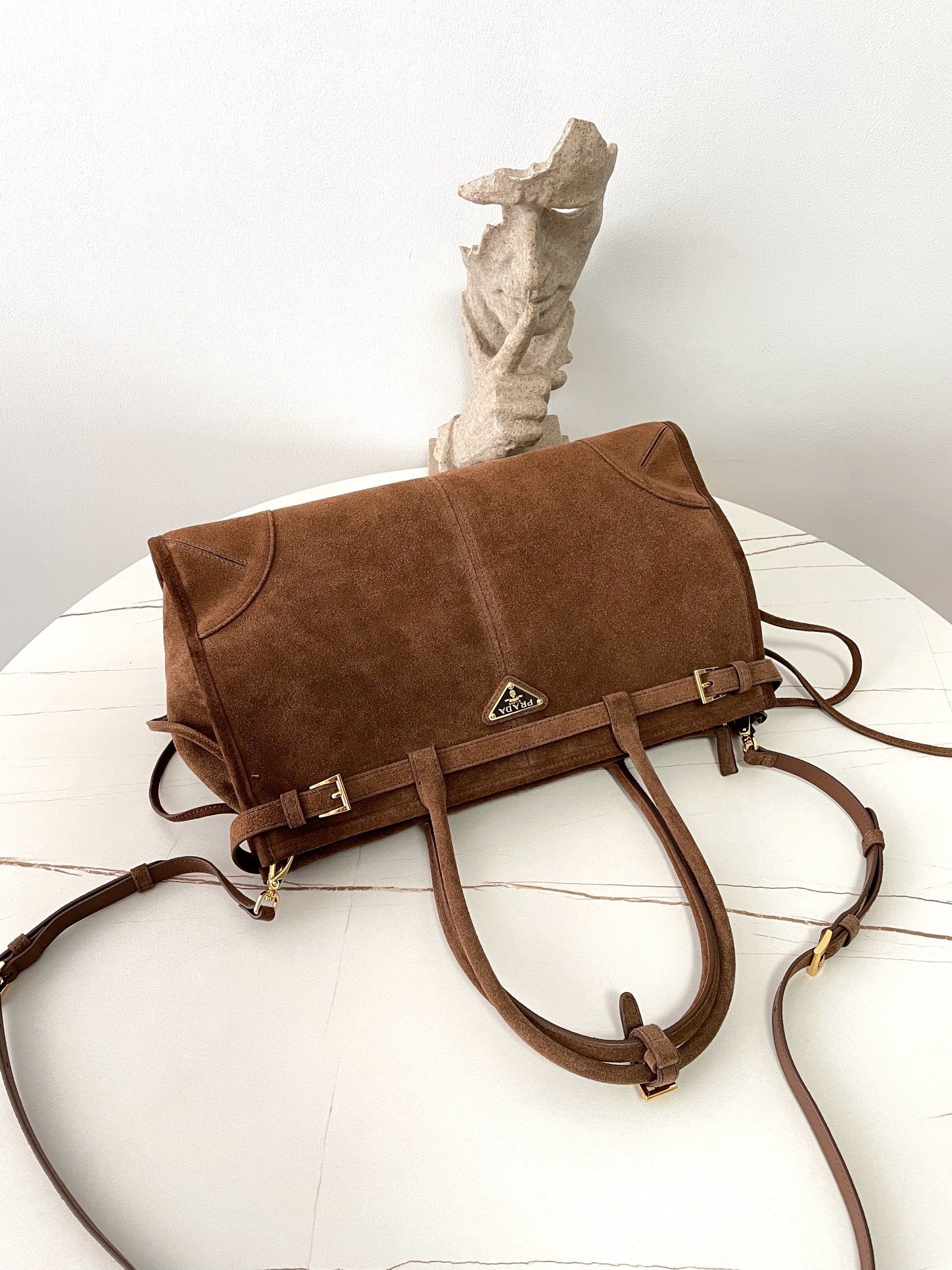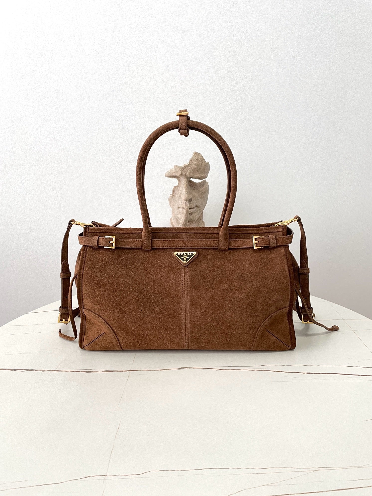 프라다 보니 라지 스웨이드 핸드백(Prada Boni Large Suede Handbag) - 따뜻하고 세련된 텍스처의 조화
