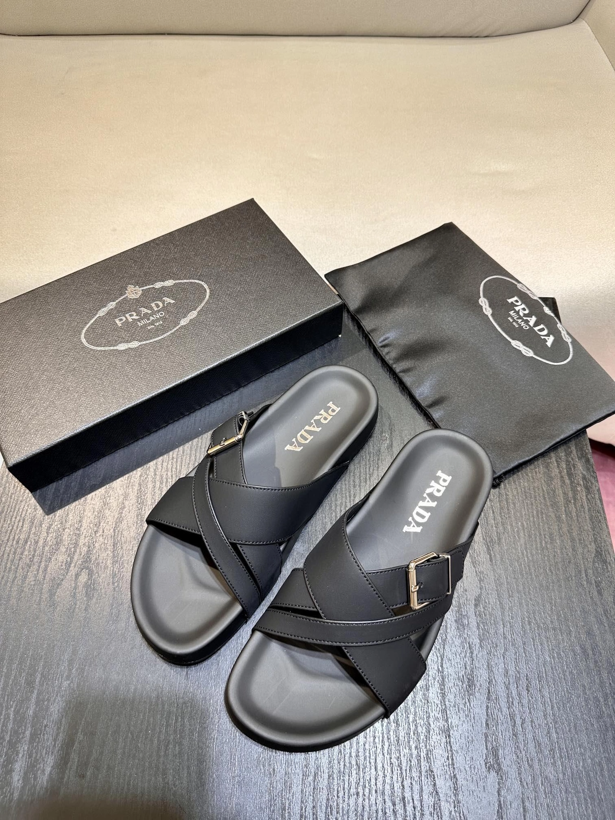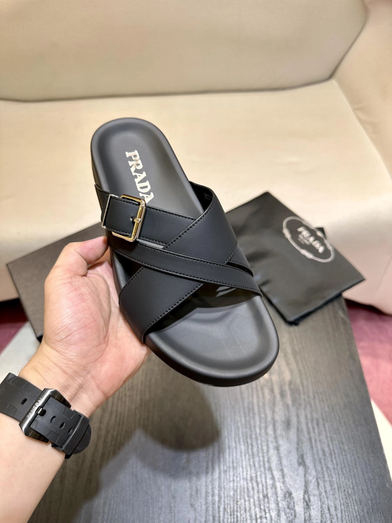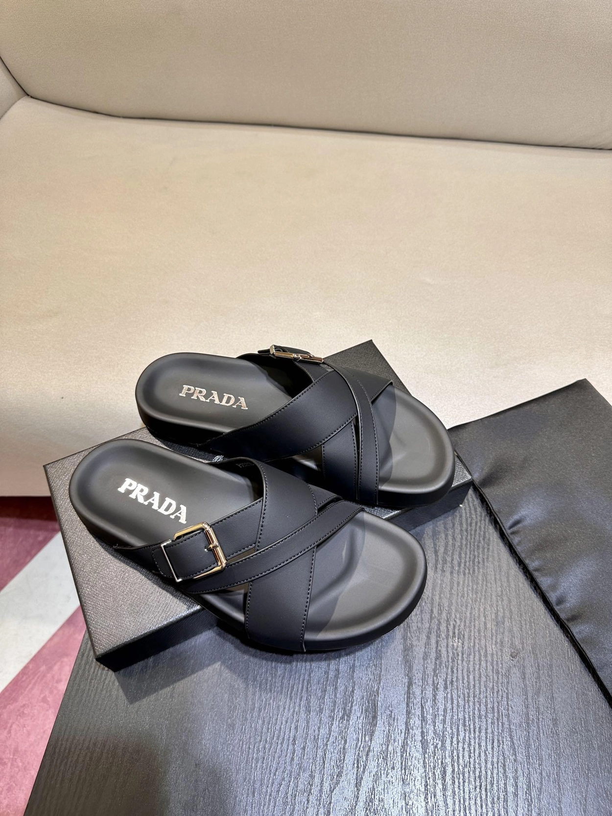 프라다 브러시드 슬라이드 슬리퍼(Prada Brushed Slide Slippers) - 여유로운 감성의 고급 슬라이드