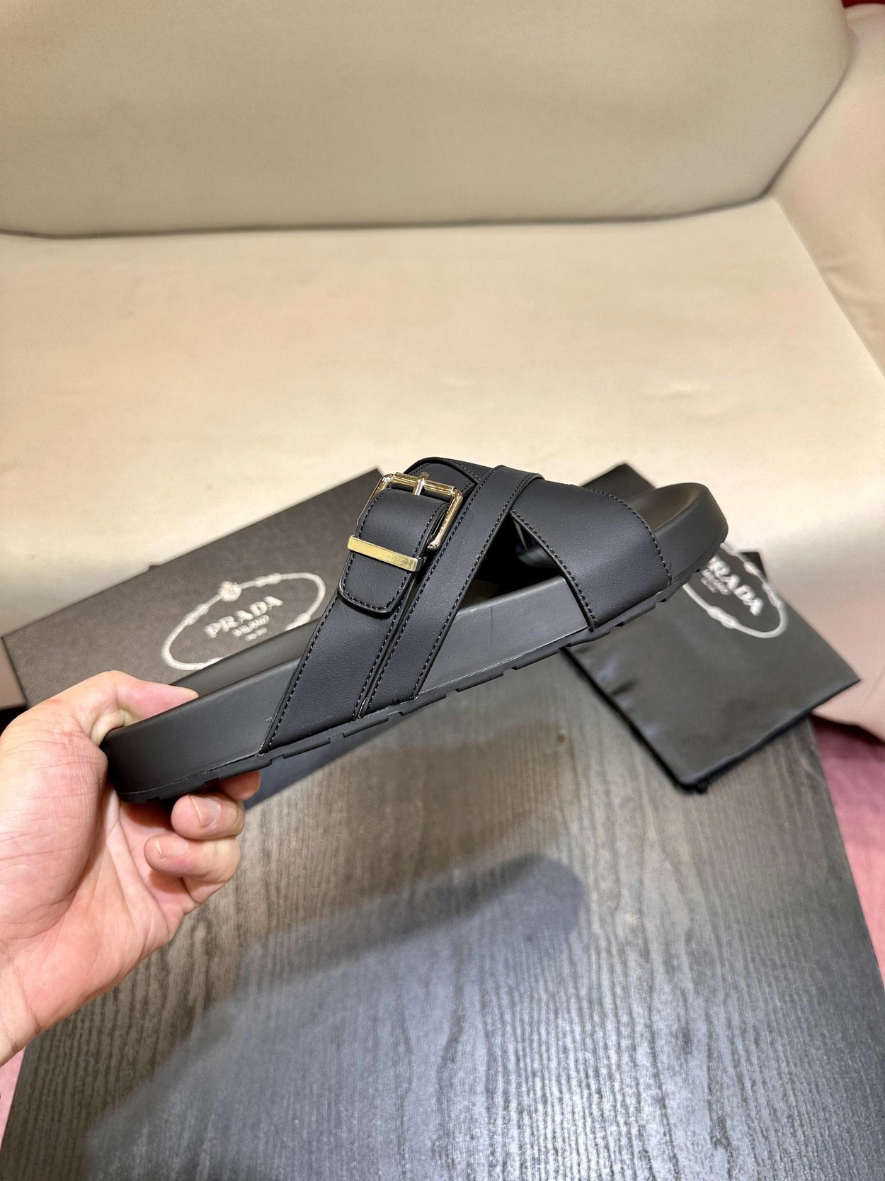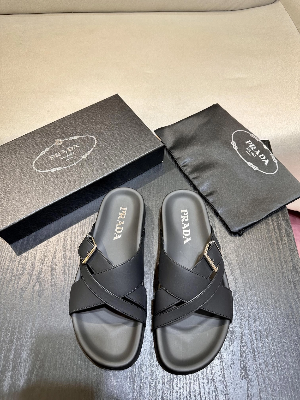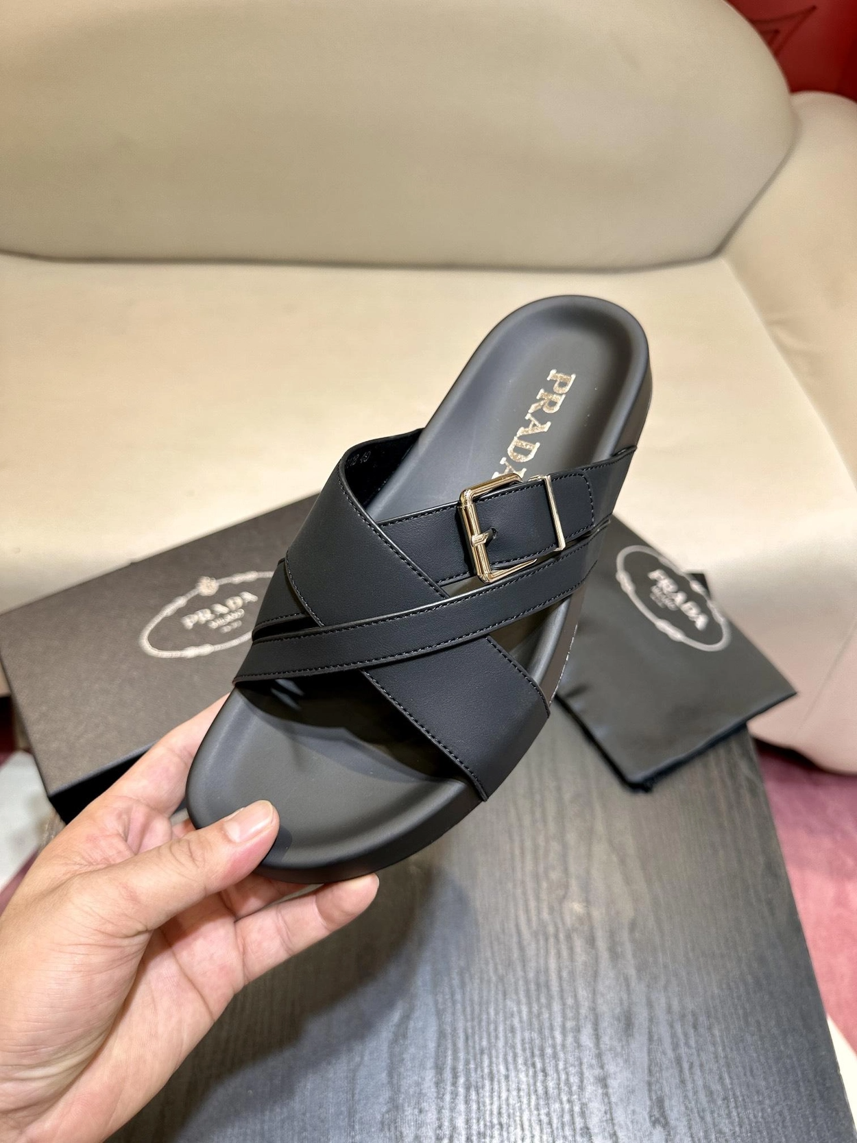 프라다 브러시드 슬라이드 슬리퍼(Prada Brushed Slide Slippers) - 여유로운 감성의 고급 슬라이드