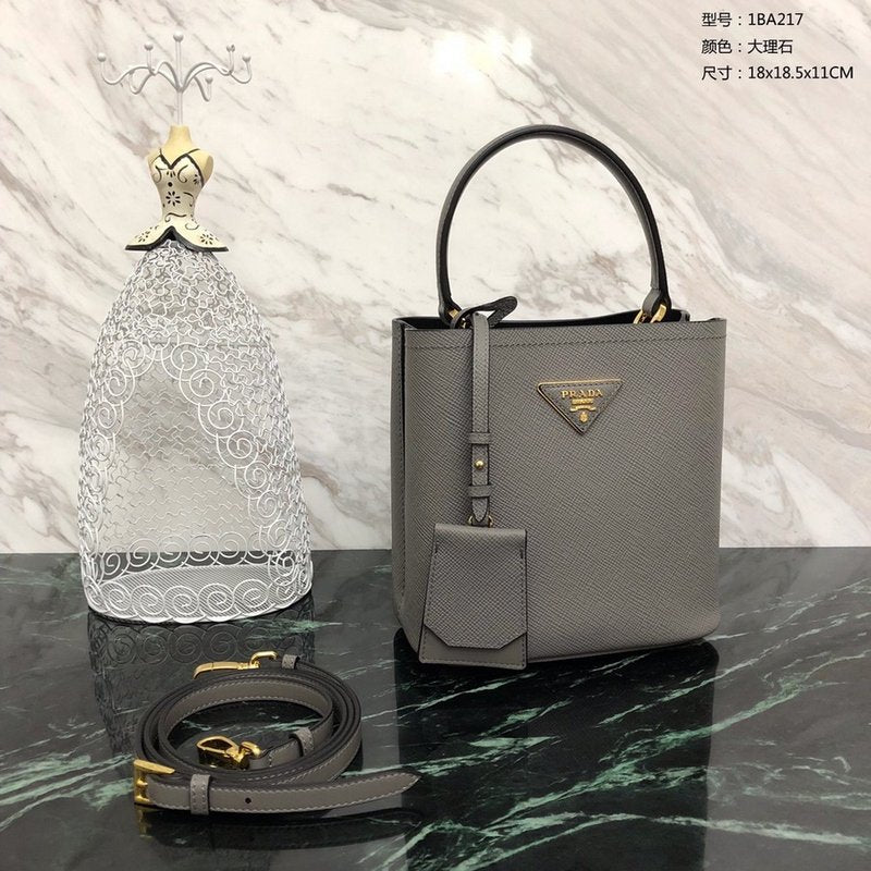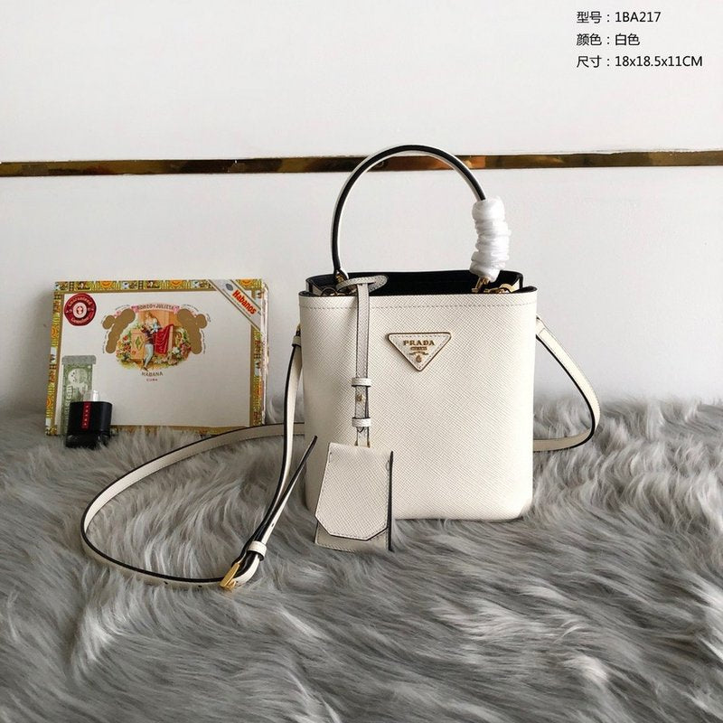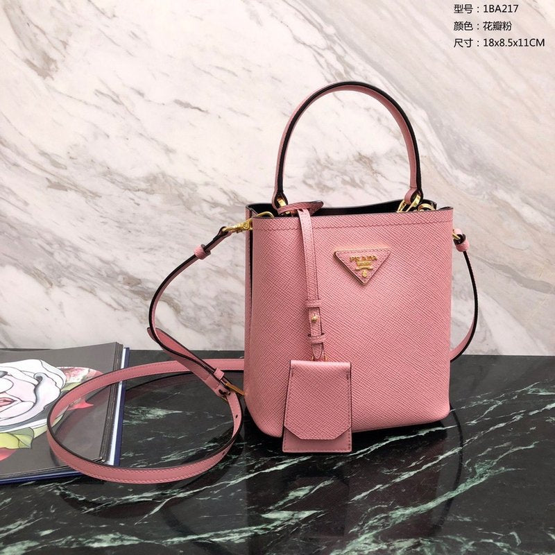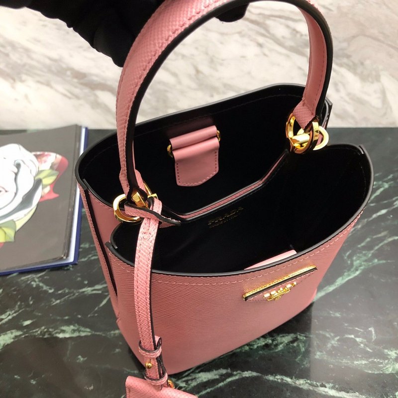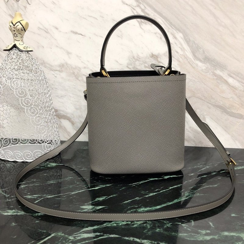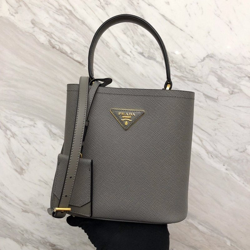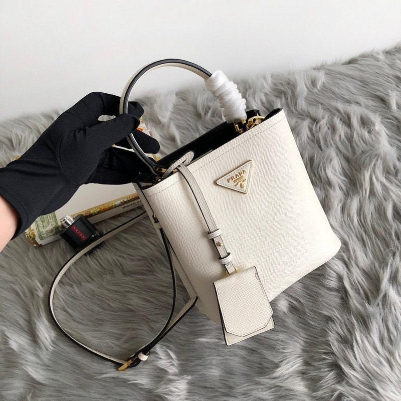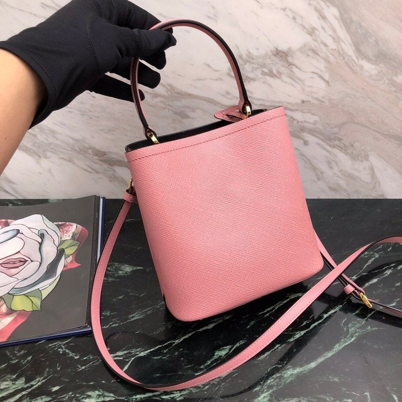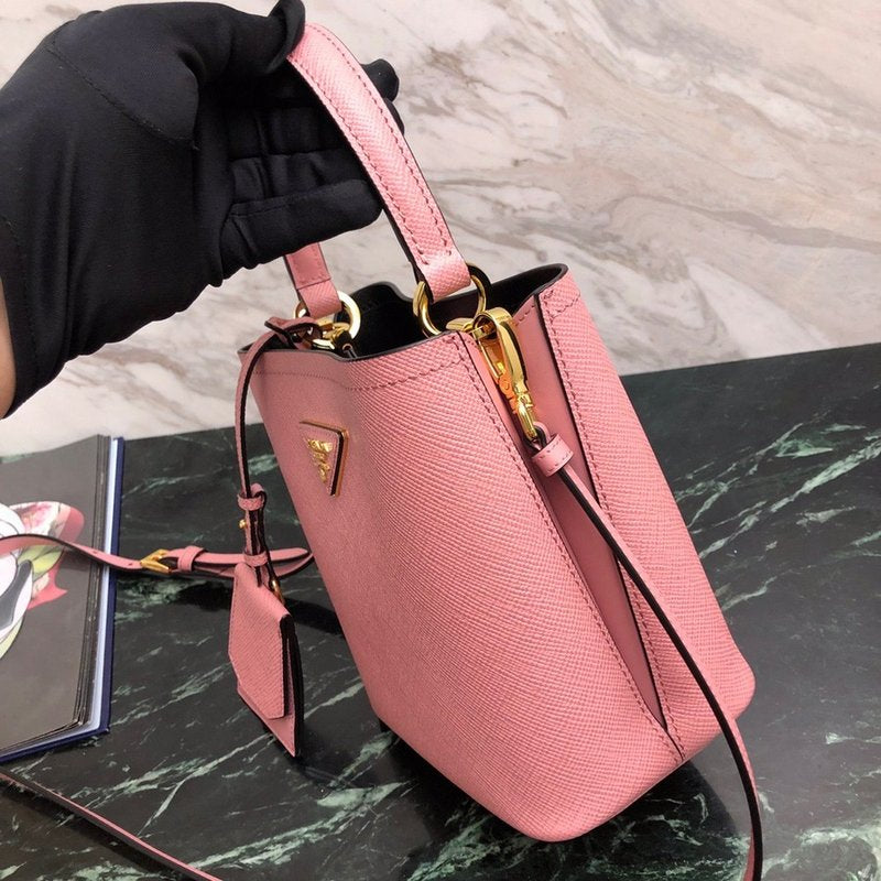 스몰 사이즈이지만 견고한 구조와 고급스러운 사피아노 레더 소재가 어우러져 정돈된 인상을 줍니다. 중앙에는 프라다의 메탈 로고 플레이트가 포인트로 배치되어 있으며, 더블 핸들과 함께 탈부착 가능한 숄더 스트랩이 구성되어 다양한 스타일링이 가능합니다.
