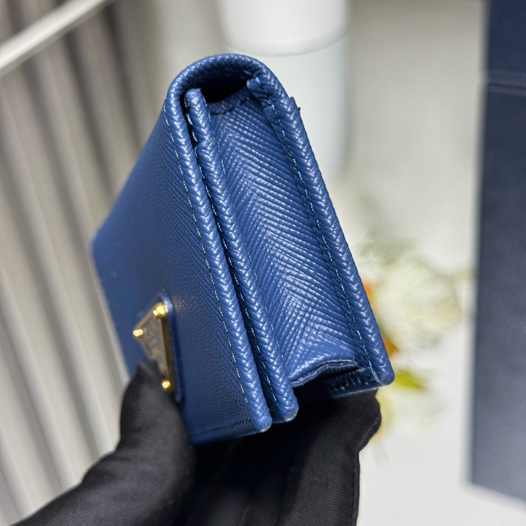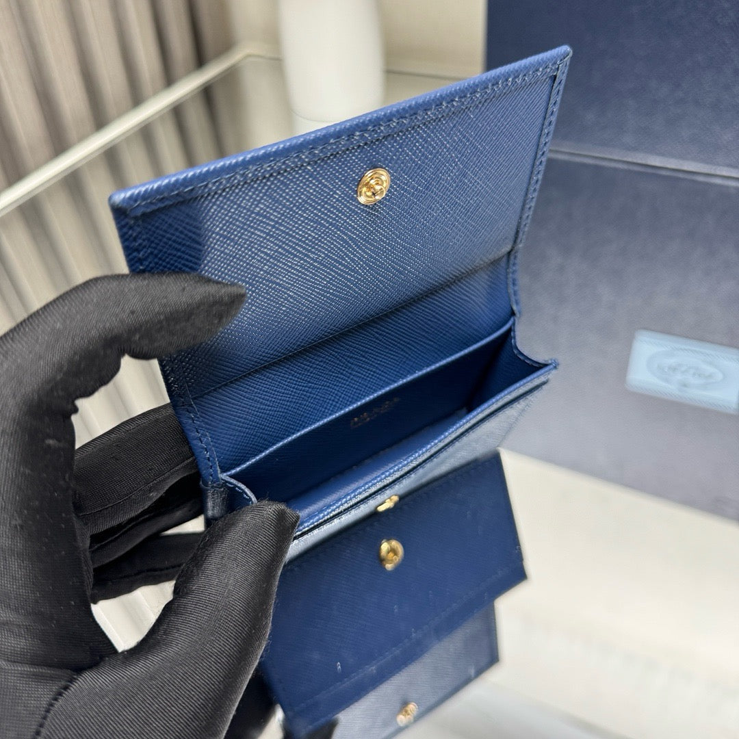 프라다 삼각로고 사피아노 카드지갑(Prada Triangle Logo Saffiano Card Wallet)은 프라다의 대표적인 사피아노 가죽 소재에 브랜드의 상징인 삼각 메탈 로고를 더한 고급스러운 카드 중심 지갑입니다. 컴팩트한 크기와 슬림한 디자인으로 현대적인 감각의 데일리 아이템으로 적합합니다.