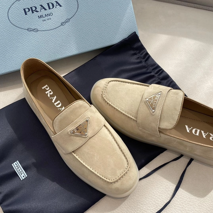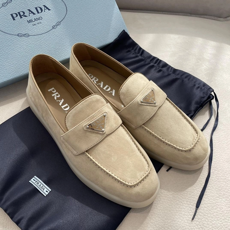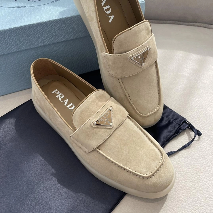 프라다 삼각 로고 스웨이드 로퍼(Prada Triangle Logo Suede Loafers) - 부드러운 감성의 프리미엄 로퍼