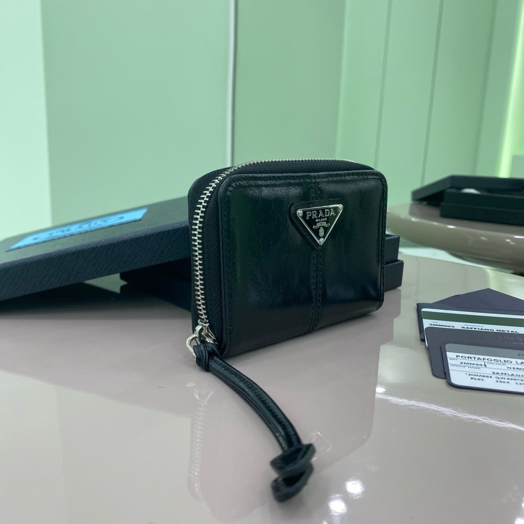소프트 럭스 코인 퍼스는 유연하면서도 촉감이 부드러운 카프스킨 소재로 제작되어 고급스러운 질감을 자랑합니다. 전면에는 프라다의 골드 또는 실버 톤 메탈 로고가 포인트로 장식되어 브랜드의 품격을 높여줍니다.