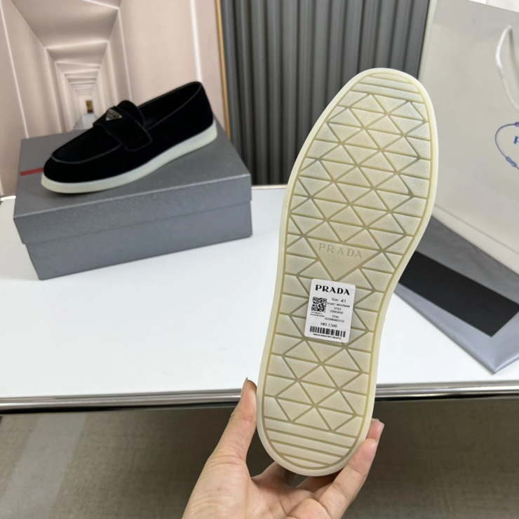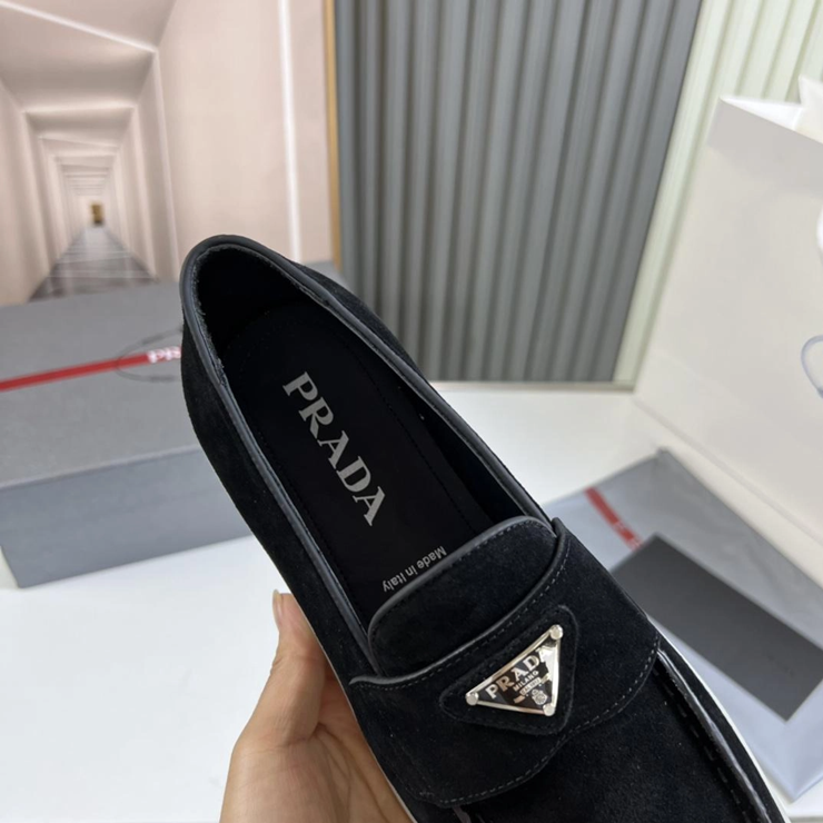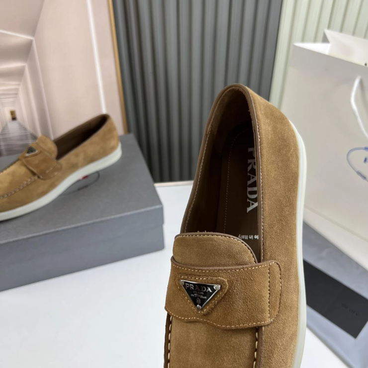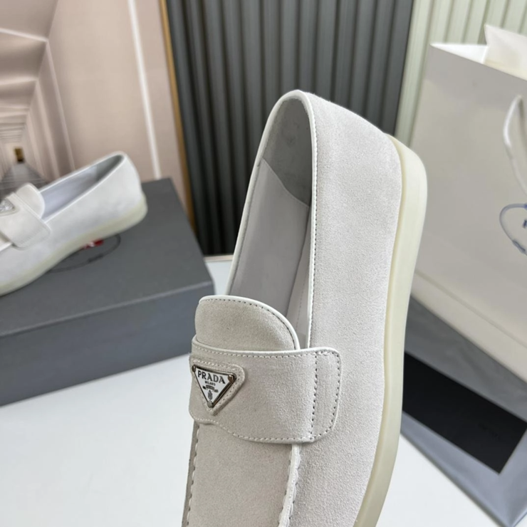 프라다 스웨이드 로퍼(Prada Suede Loafers) - 부드러운 질감과 세련된 라인의 조화