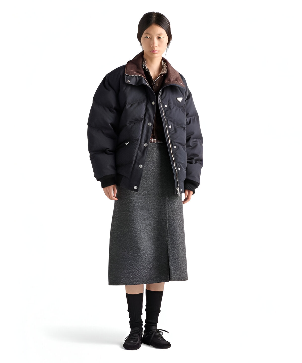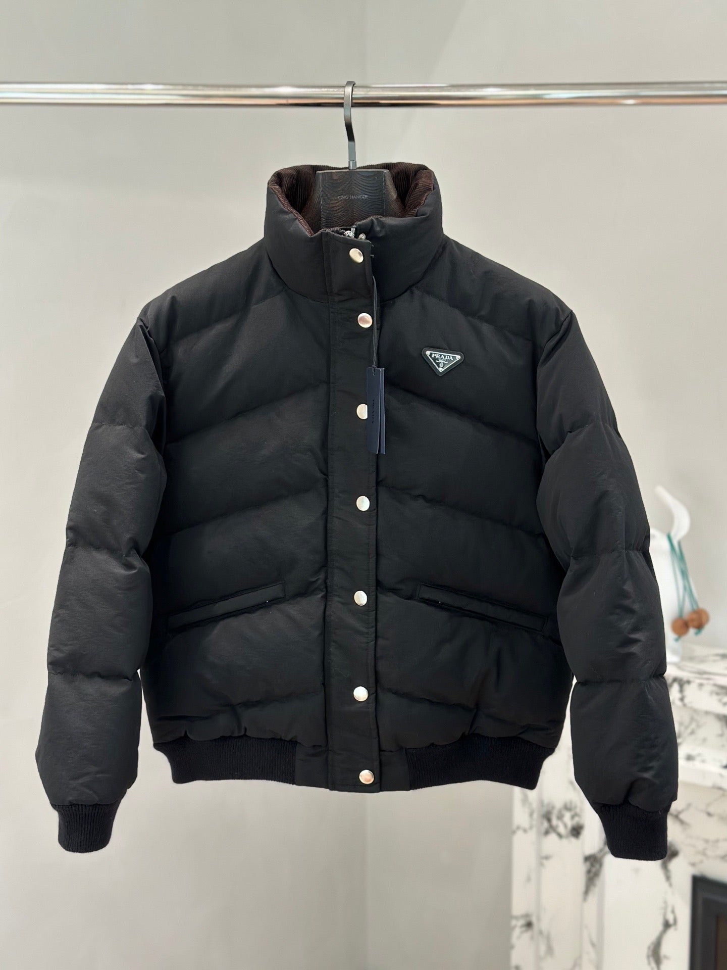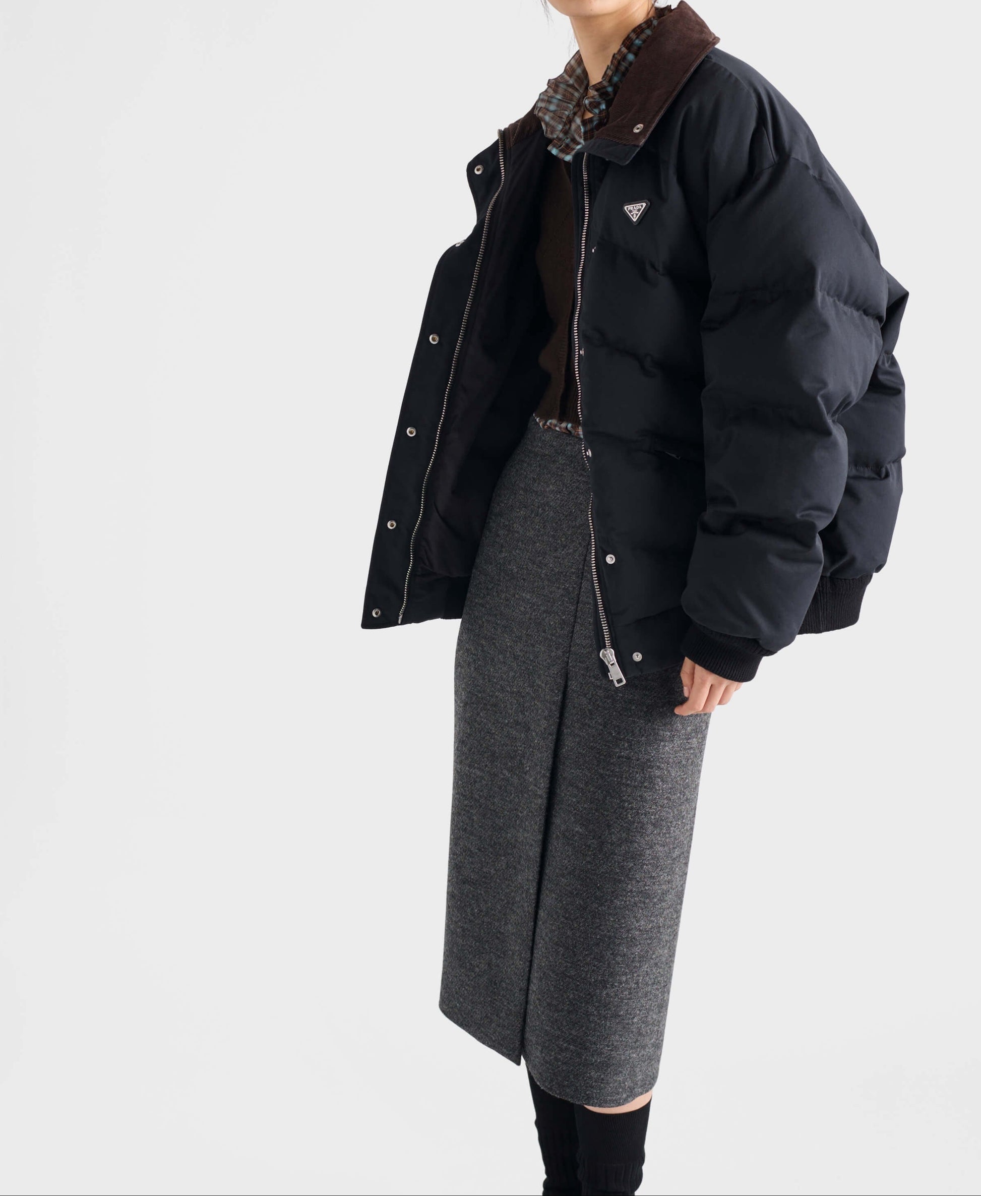 프라다 크롭 컴팩트 포플린 다운 자켓