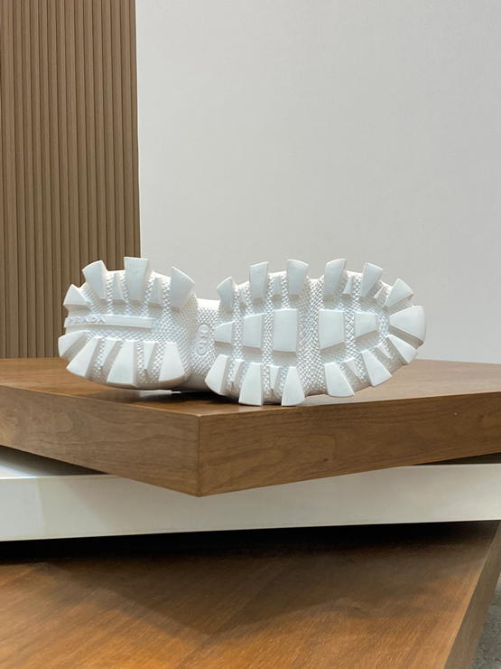 입체적인 러버 블록 솔과 하이브리드 소재 조합으로, 기능성과 시각적 임팩트를 동시에 지닌 디자인입니다.