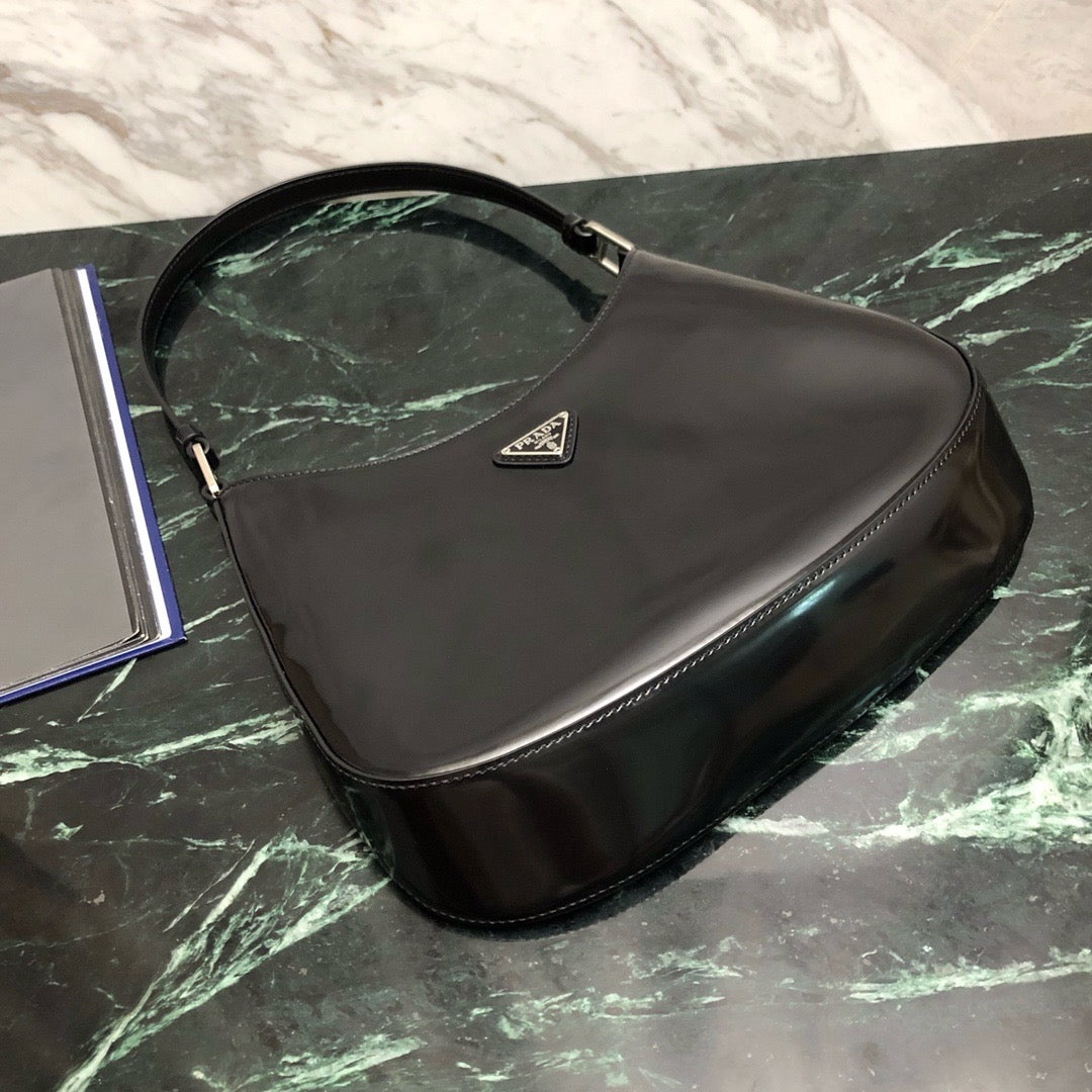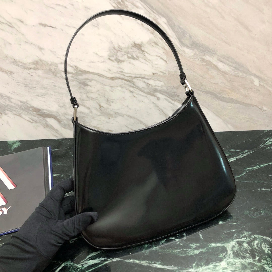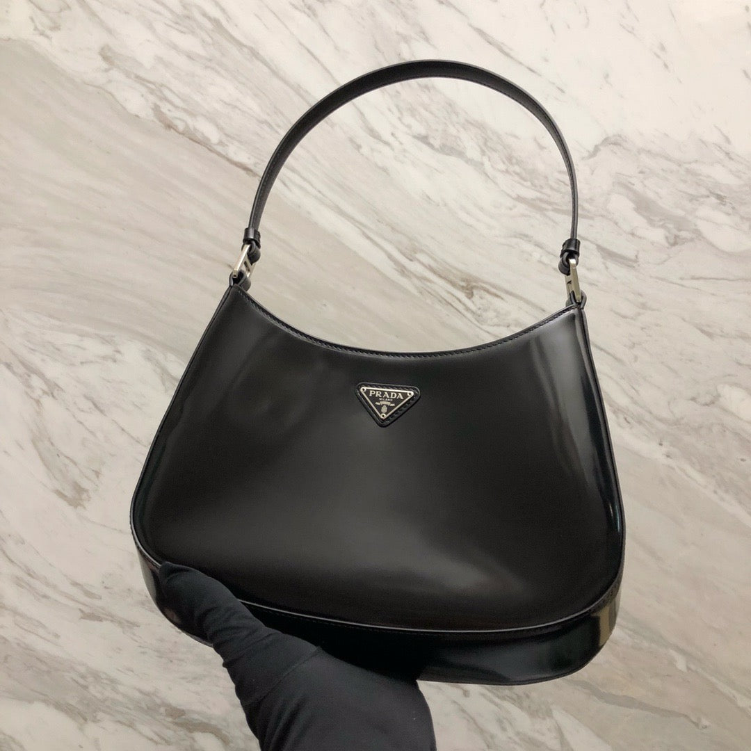프라다 클레오 브러시드 레더 숄더백(Prada Cleo Brushed Leather Shoulder Bag) - 곡선과 광택의 절제된 미학