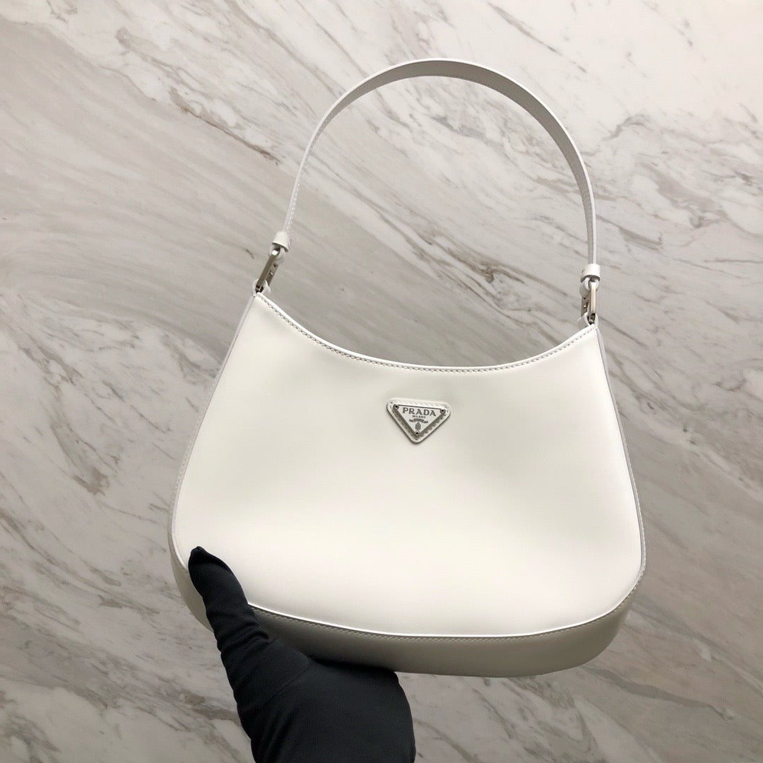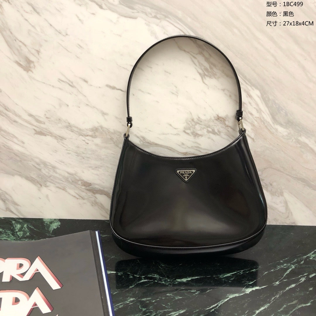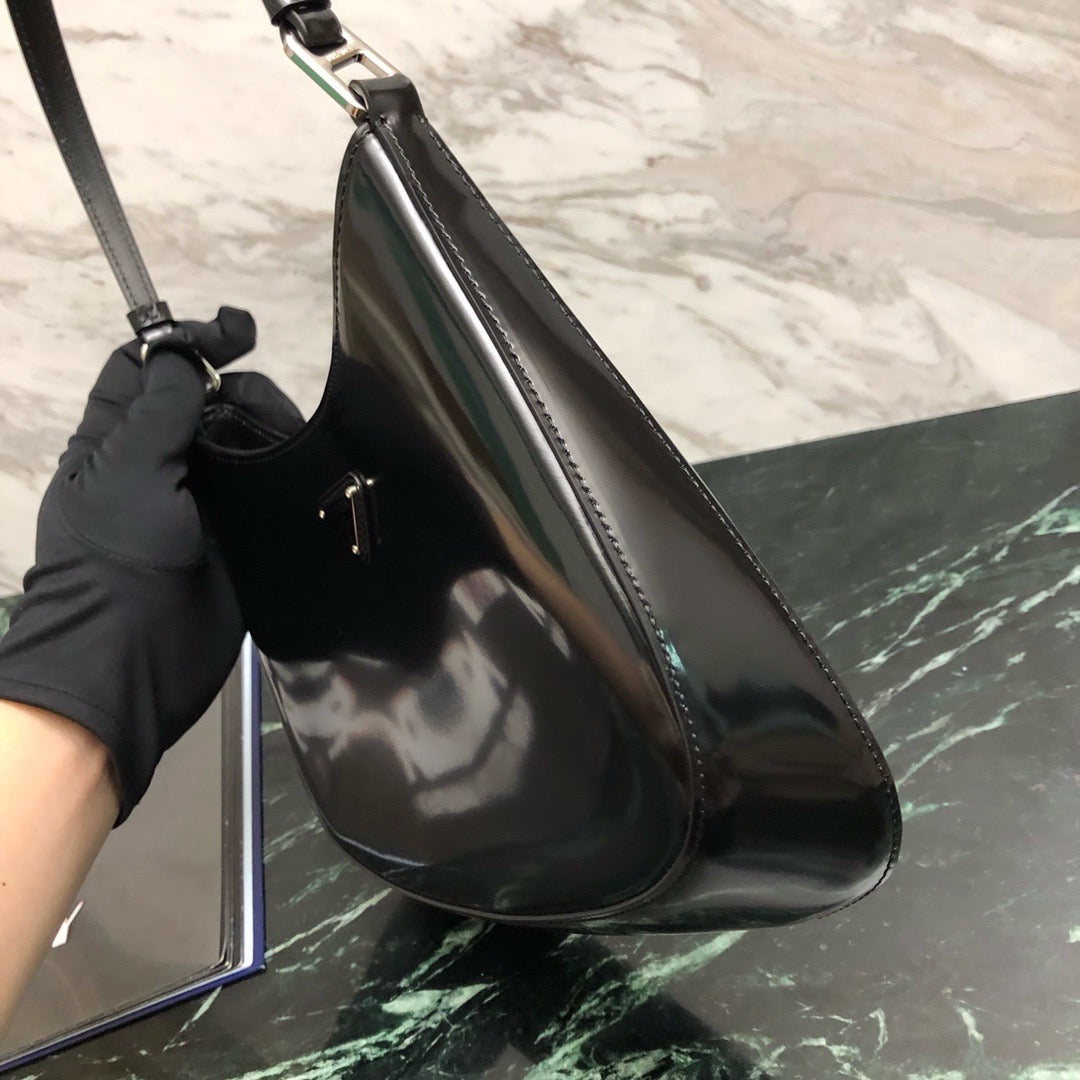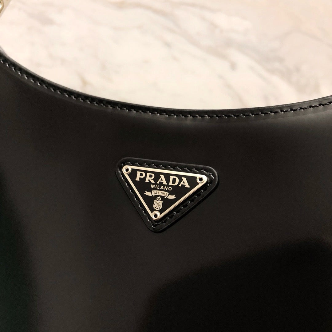 프라다 클레오 브러시드 레더 숄더백(Prada Cleo Brushed Leather Shoulder Bag) - 곡선과 광택의 절제된 미학