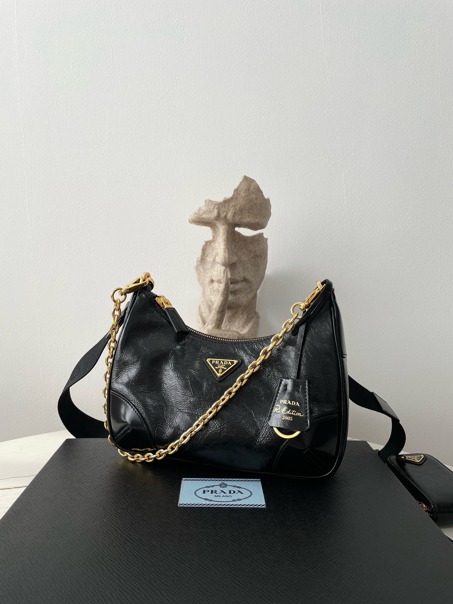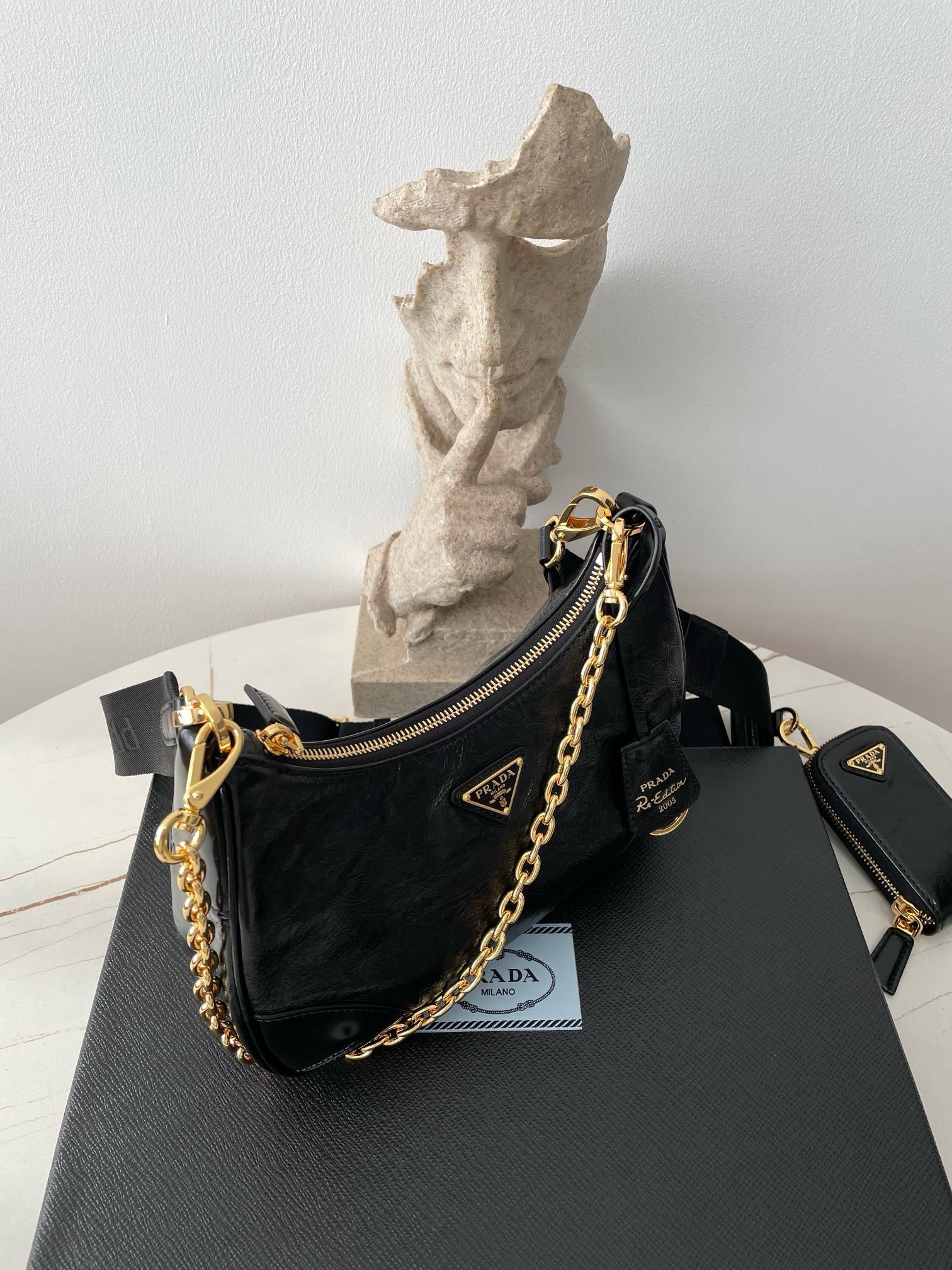 프라다 테수토 레더 체인 호보백(Prada Tessuto Leather Chain Hobo Bag) - 다양한 스타일을 위한 컴팩트한 디자인