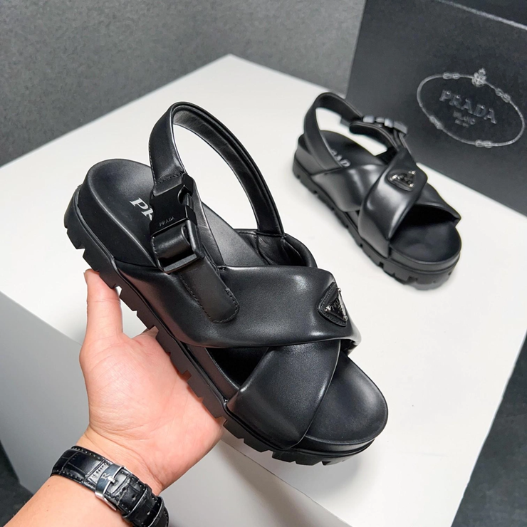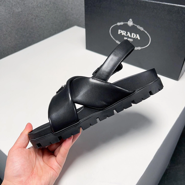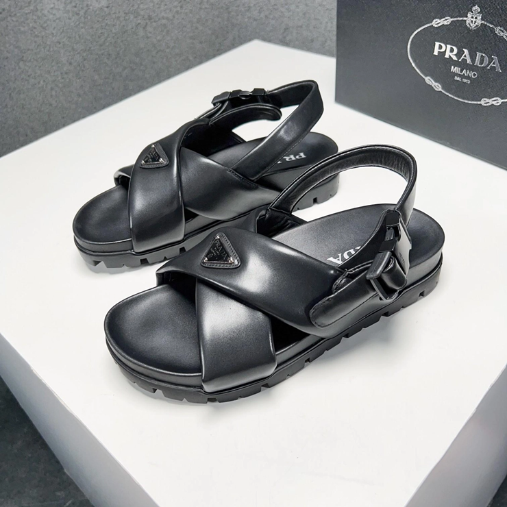 프라다 패딩 나파 크리스 크로스 샌들(Prada Padded Nappa Crisscross Sandals) - 부드러움과 안정감의 만남
