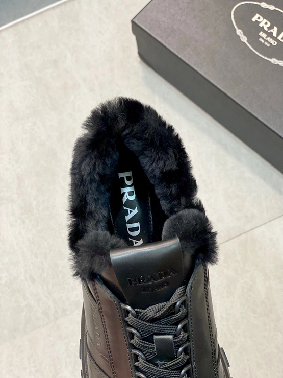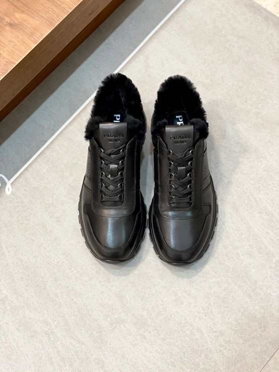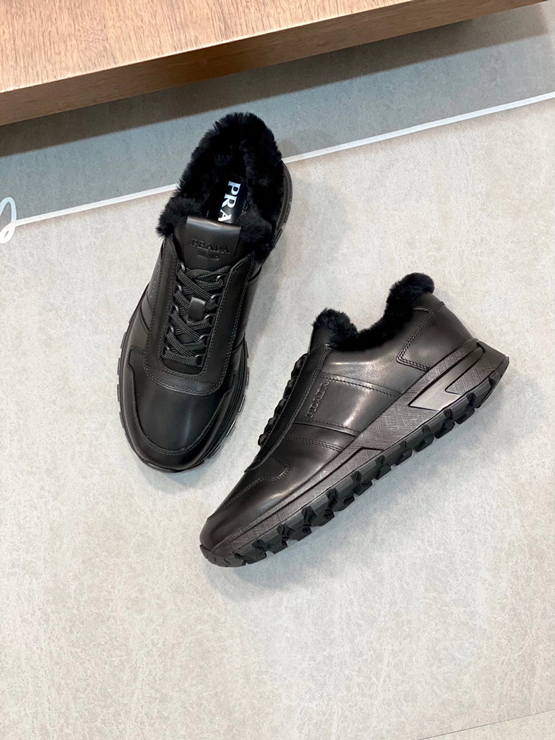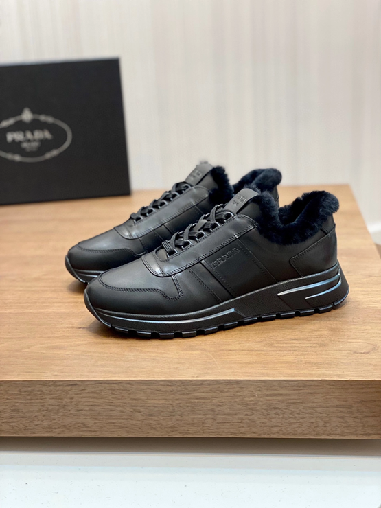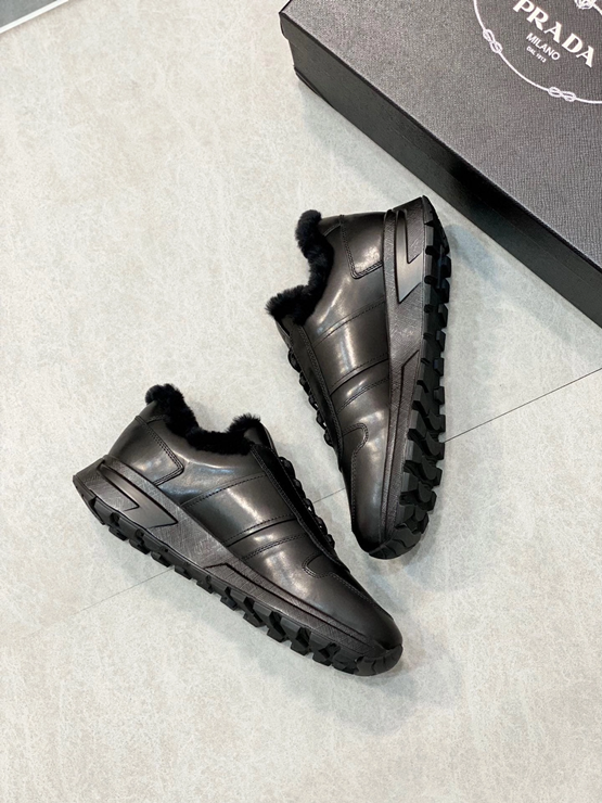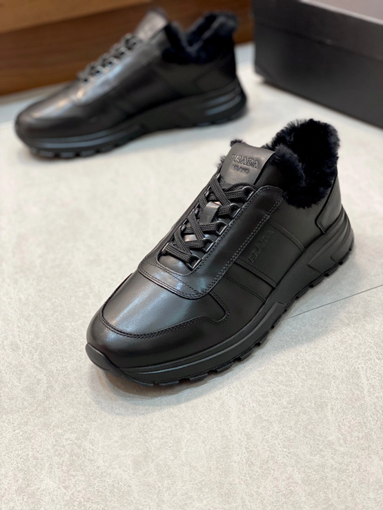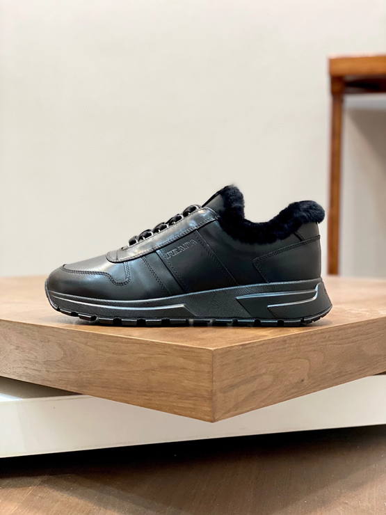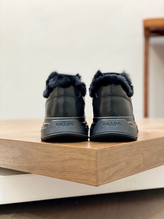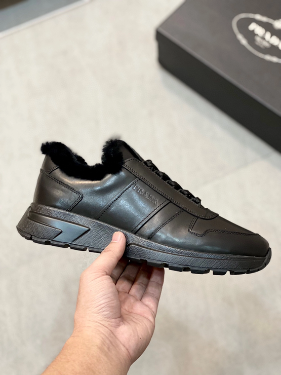 이 스니커즈는 단순한 구조 속에 정교한 디테일이 담겨 있습니다. 광택을 억제한 매트한 가죽 텍스처와 톤온톤으로 구성된 아웃솔, 슈레이스, 힐탭까지 모두 블랙으로 통일되어 세련되고 감각적인 무드를 연출합니다. 측면의 프라다 엠보싱 로고가 은은하게 브랜드의 정체성을 드러냅니다.