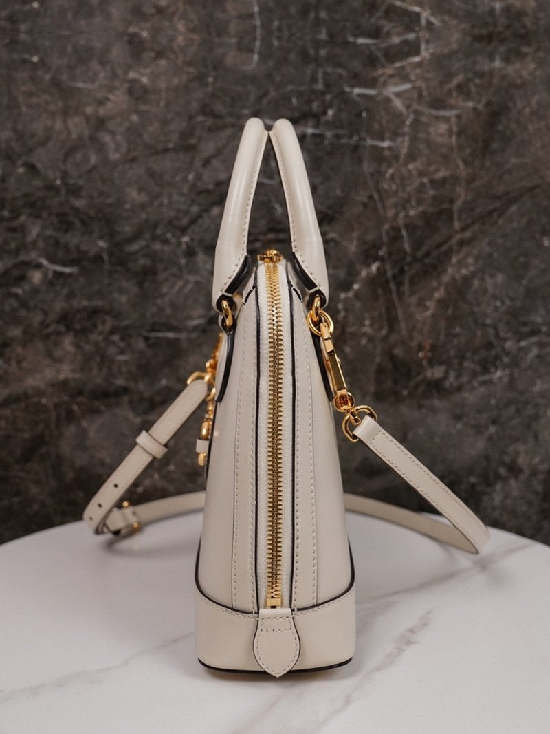 구찌 홀스빗 1955 올레더 탑핸들(Gucci Horsebit 1955 All‑Leather Top Handle Bag)은 클래식한 실루엣과 상징적인 말발굽 하드웨어가 돋보이는 럭셔리 탑핸들 백입니다. 부드러운 가죽 소재로 제작되어 우아한 느낌을 주며, 핸드백, 크로스바디 등 다양한 스타일로 연출할 수 있는 디자인으로, 시간이 지나도 변치 않는 세련됨을 자랑합니다.