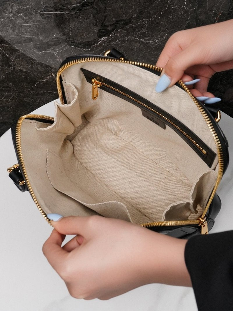 컴팩트하지만 필수품 수납이 가능해 데일리백으로 적합하며, 고급스러운 말발굽 디테일은 룩에 클래식한 포인트를 더해줍니다. 스트랩이 다양하게 구성돼 크로스바디, 숄더, 토트로 모두 활용할 수 있어 실용성과 스타일을 동시에 만족시킵니다. 데님이나 니트 같은 캐주얼 스타일부터 정장, 원피스 등 포멀룩까지도 자연스럽게 어우러집니다.